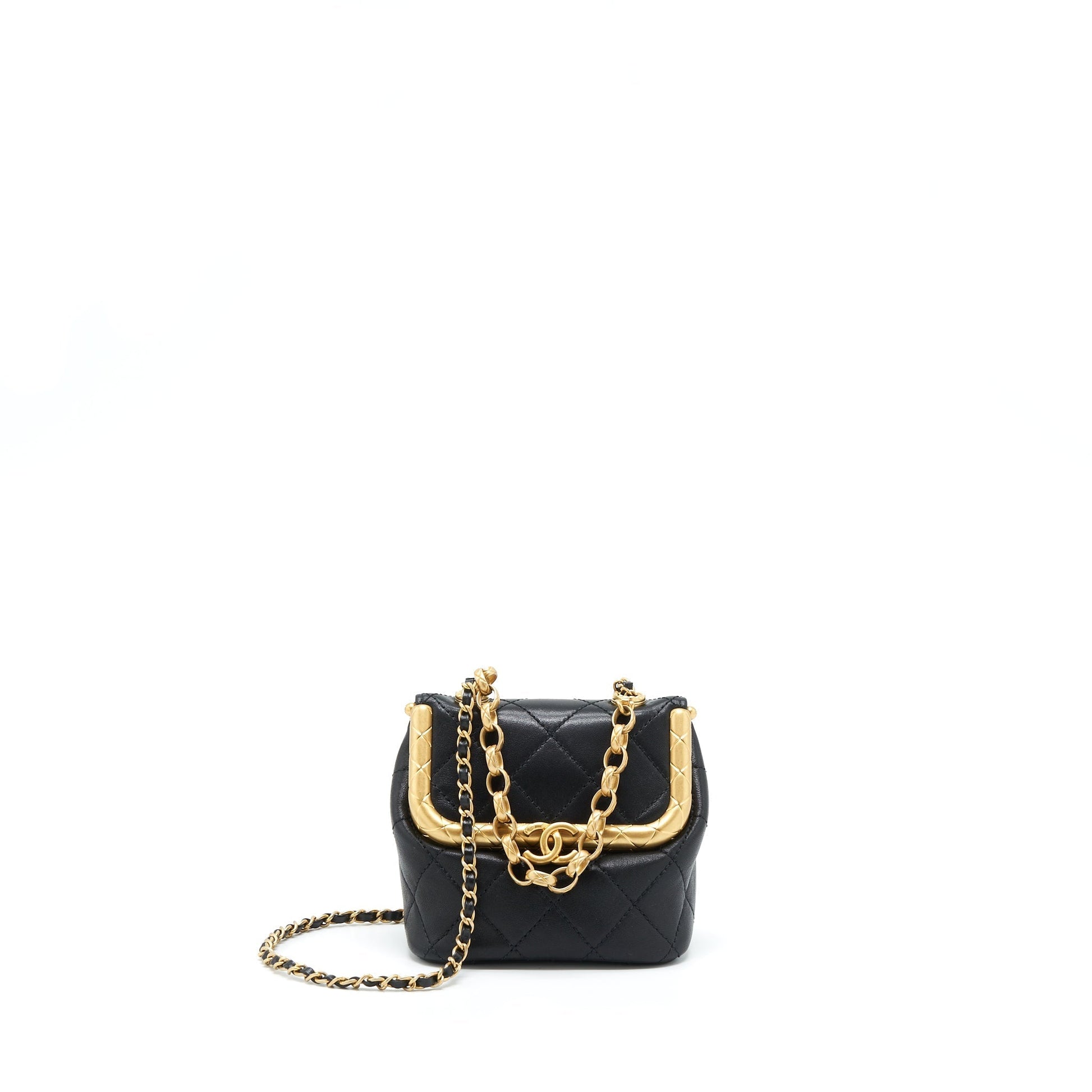 Chanel 20A Kiss-Lock Mini Vanity Flap Bag Calfskin Black GHW