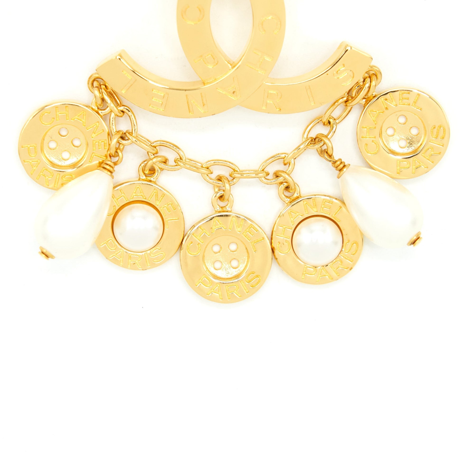 Chanel 20A Seasonal CC Logo Pearls And Button Brooch Gold
