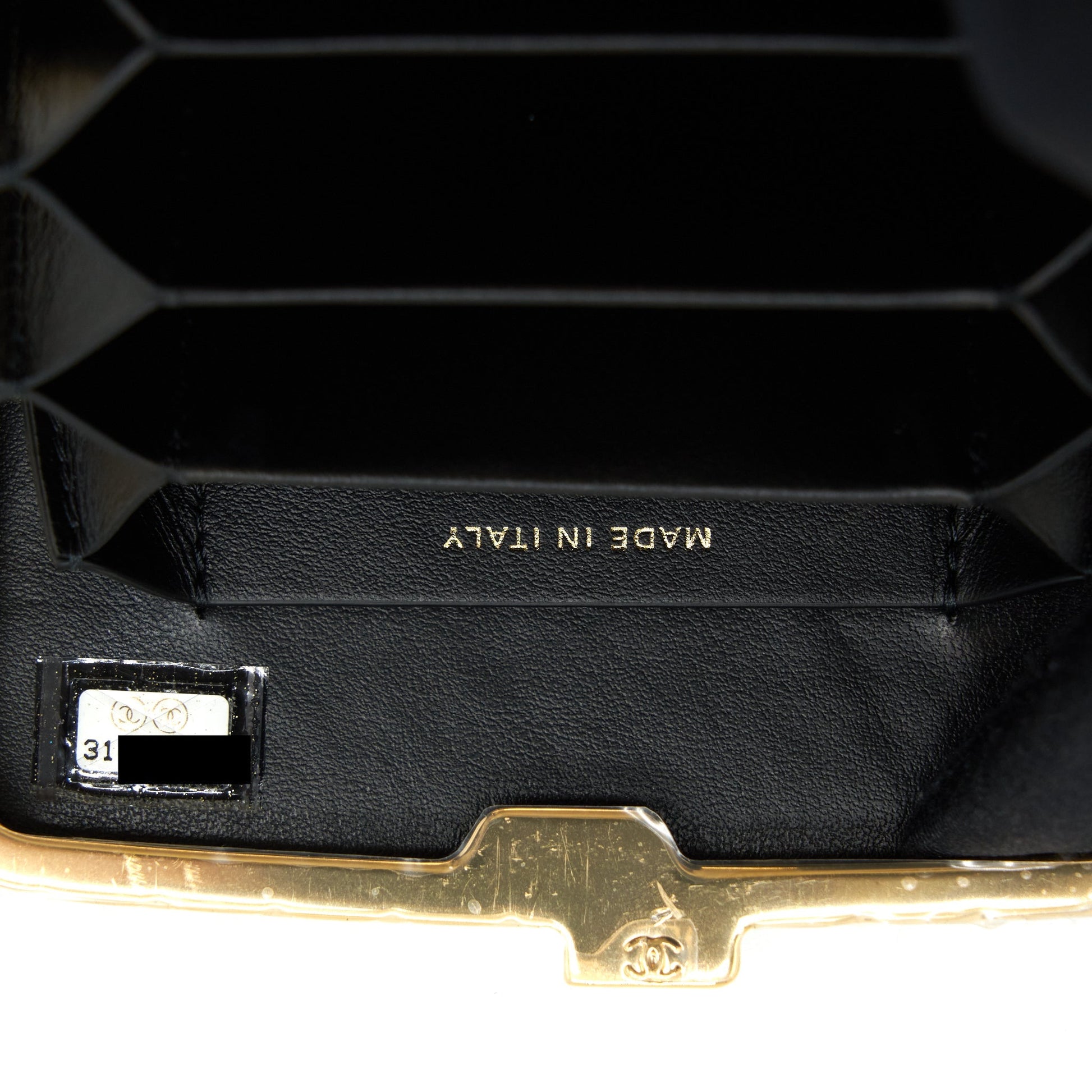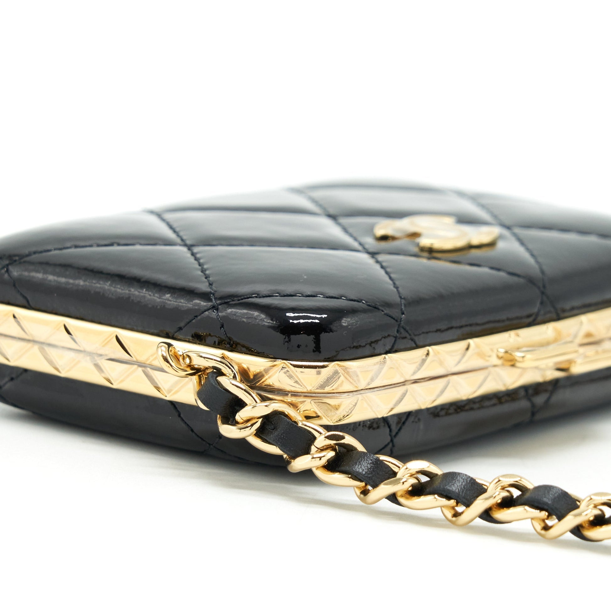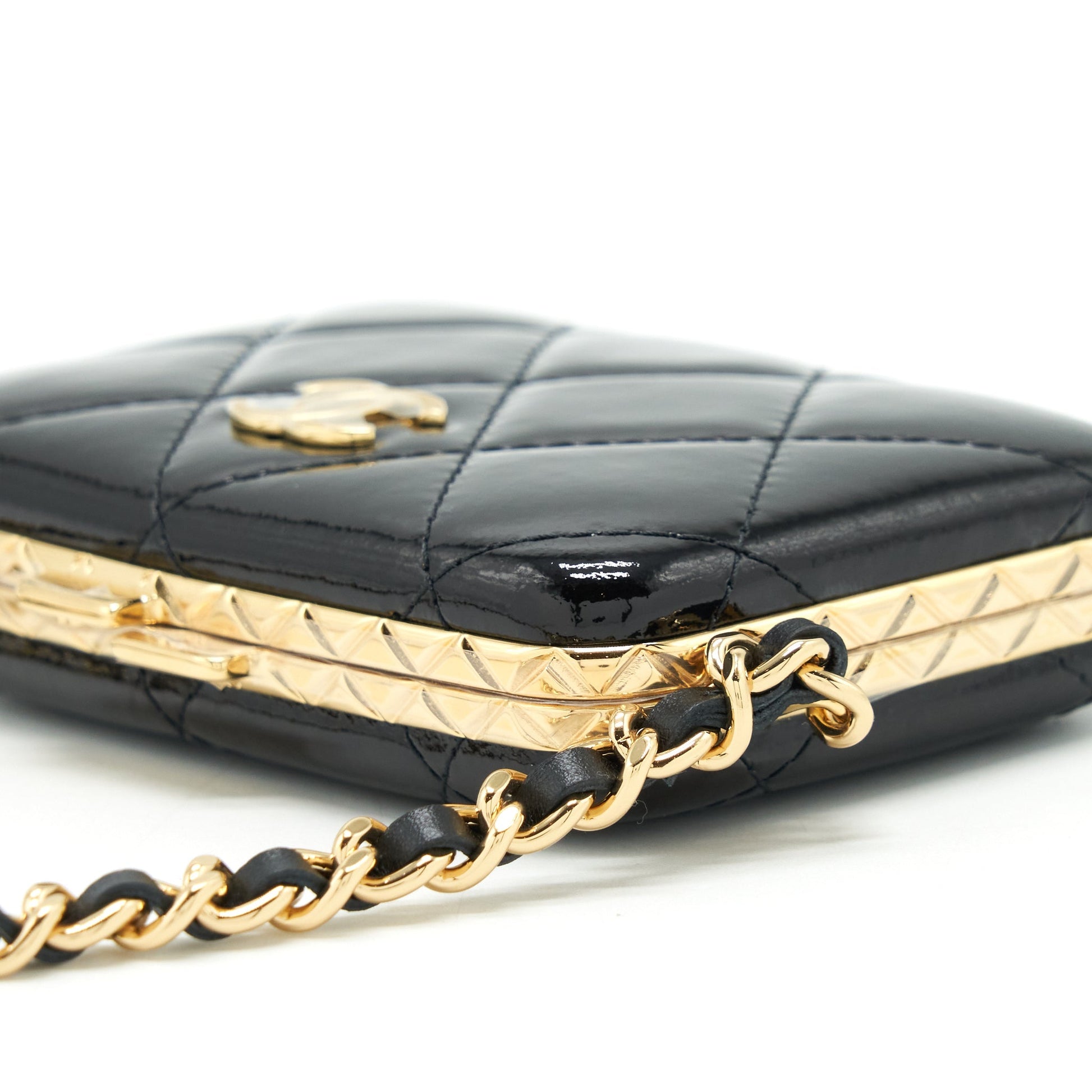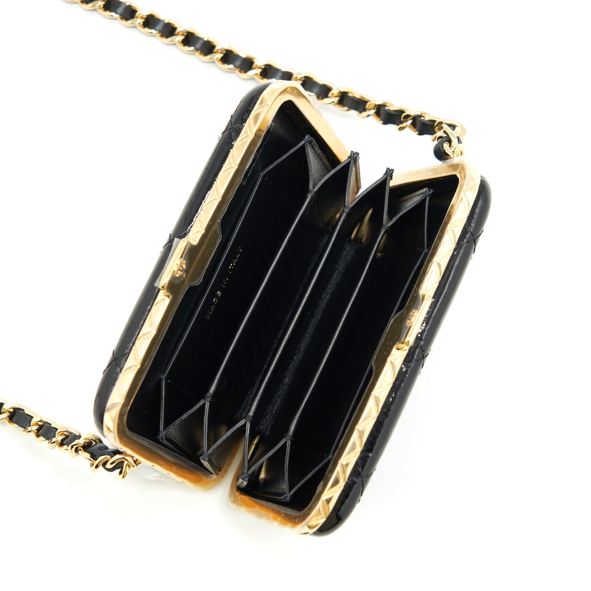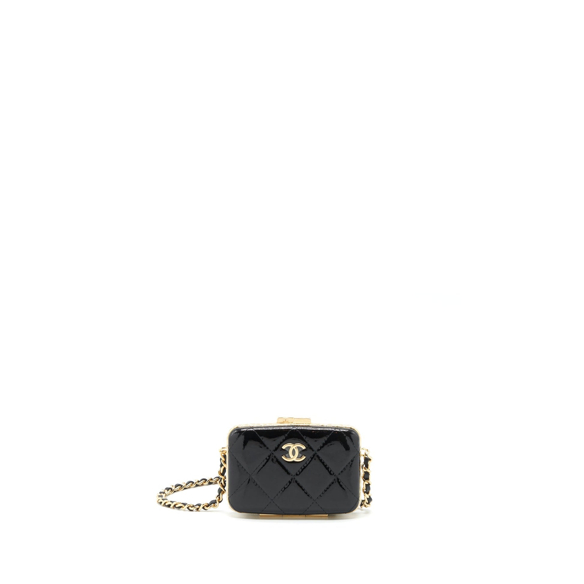 Chanel 21A Mini Clip Box With Chain Patent Black LGHW