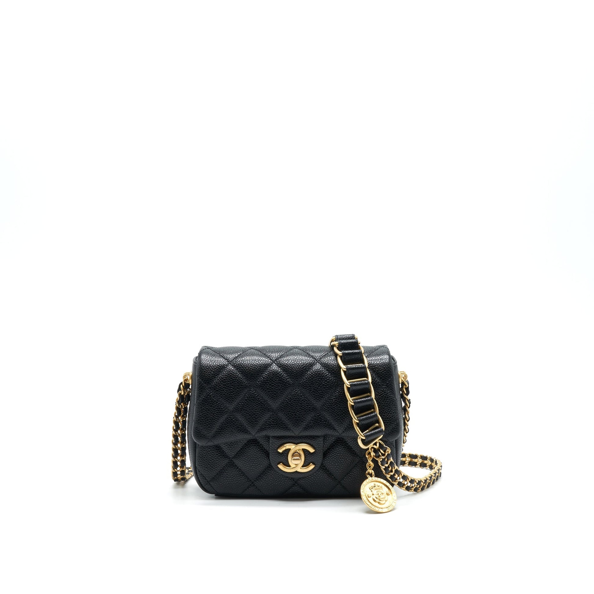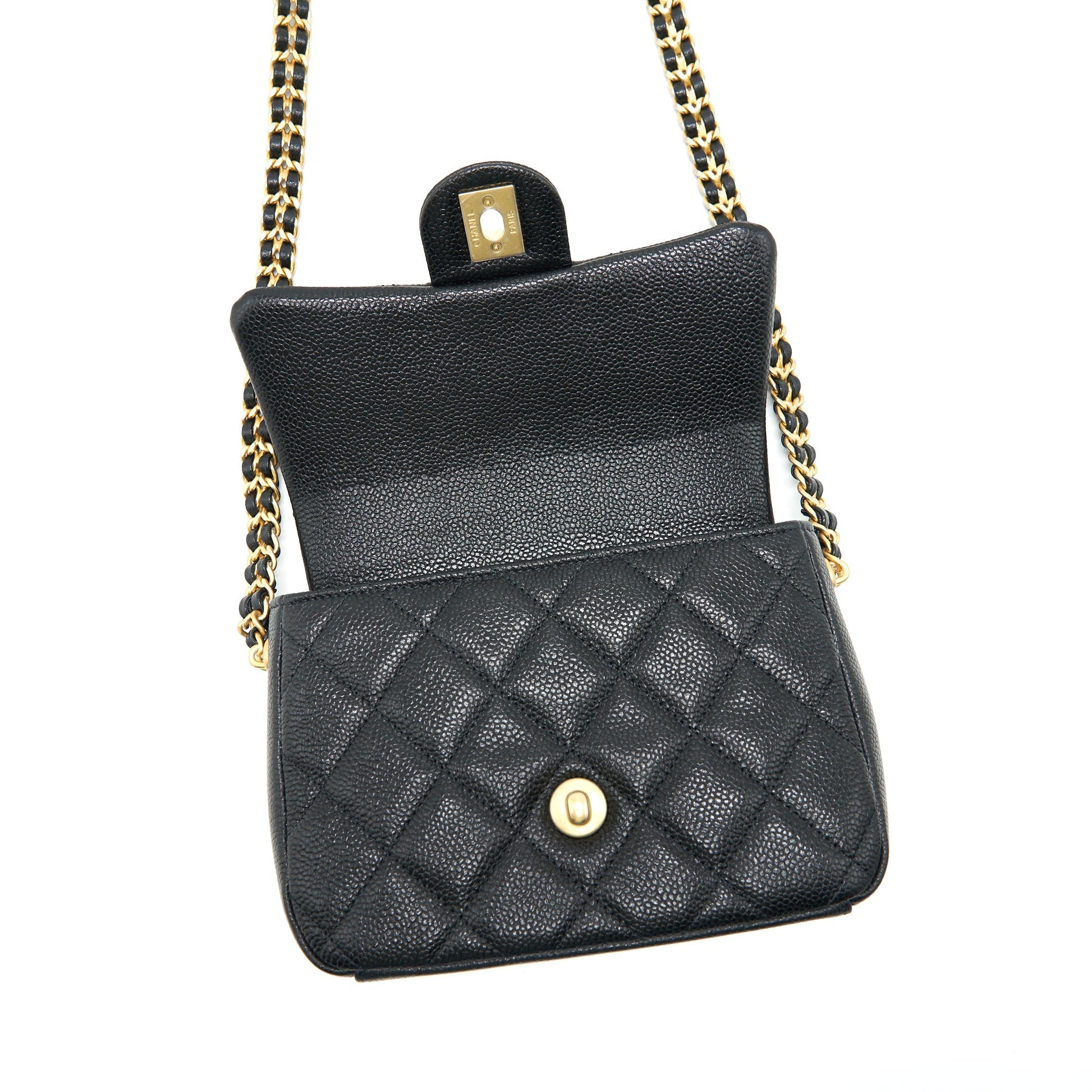 Chanel 21A Mini Square Flap Bag Caviar Black GHW
