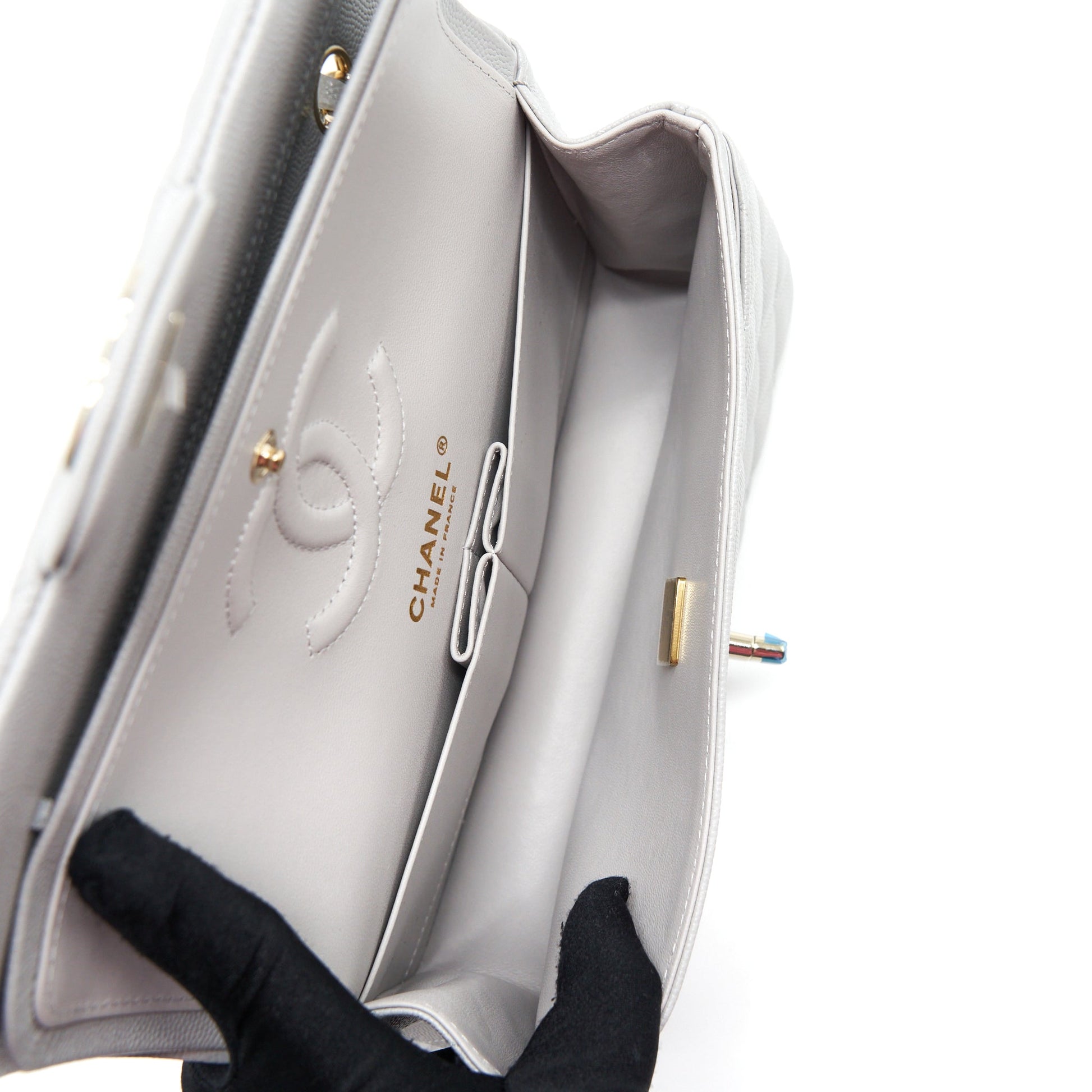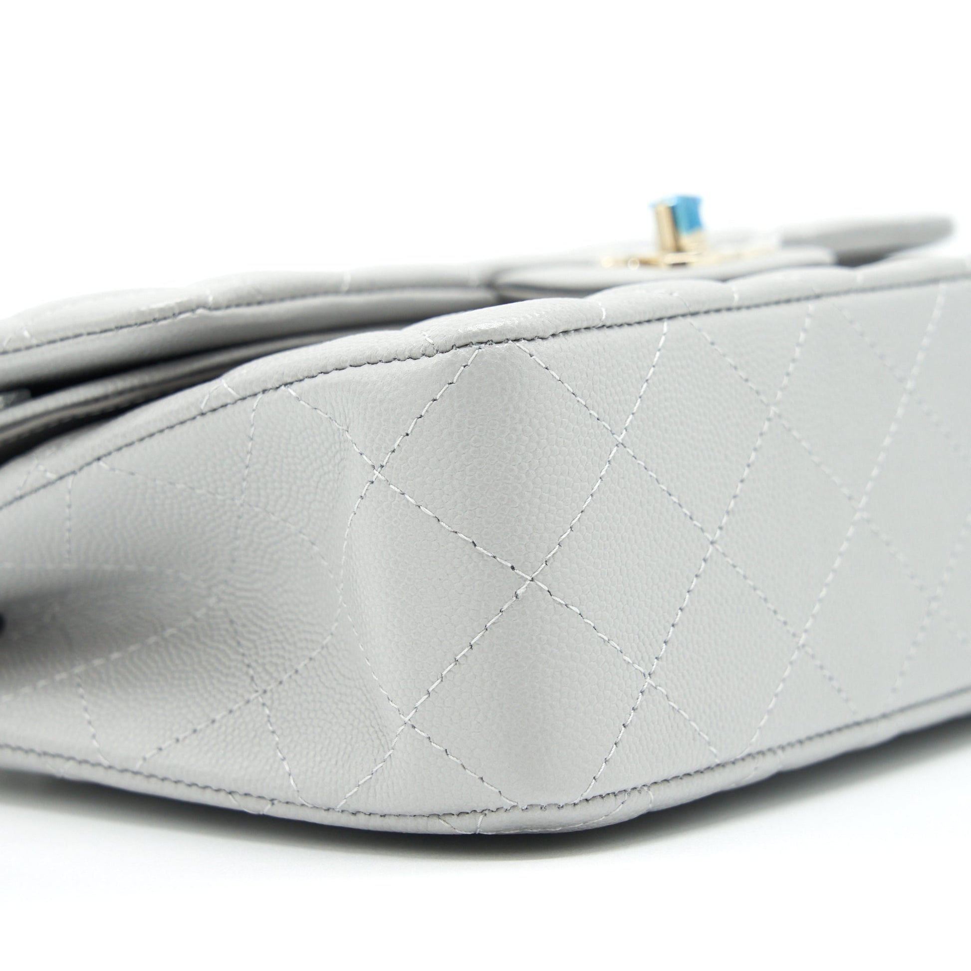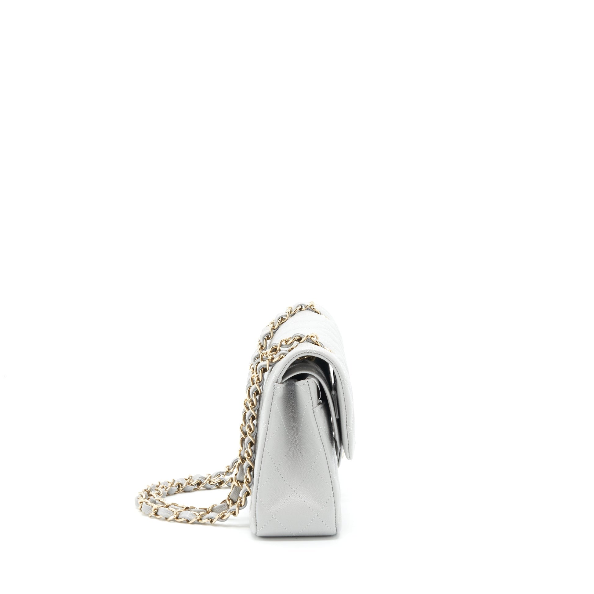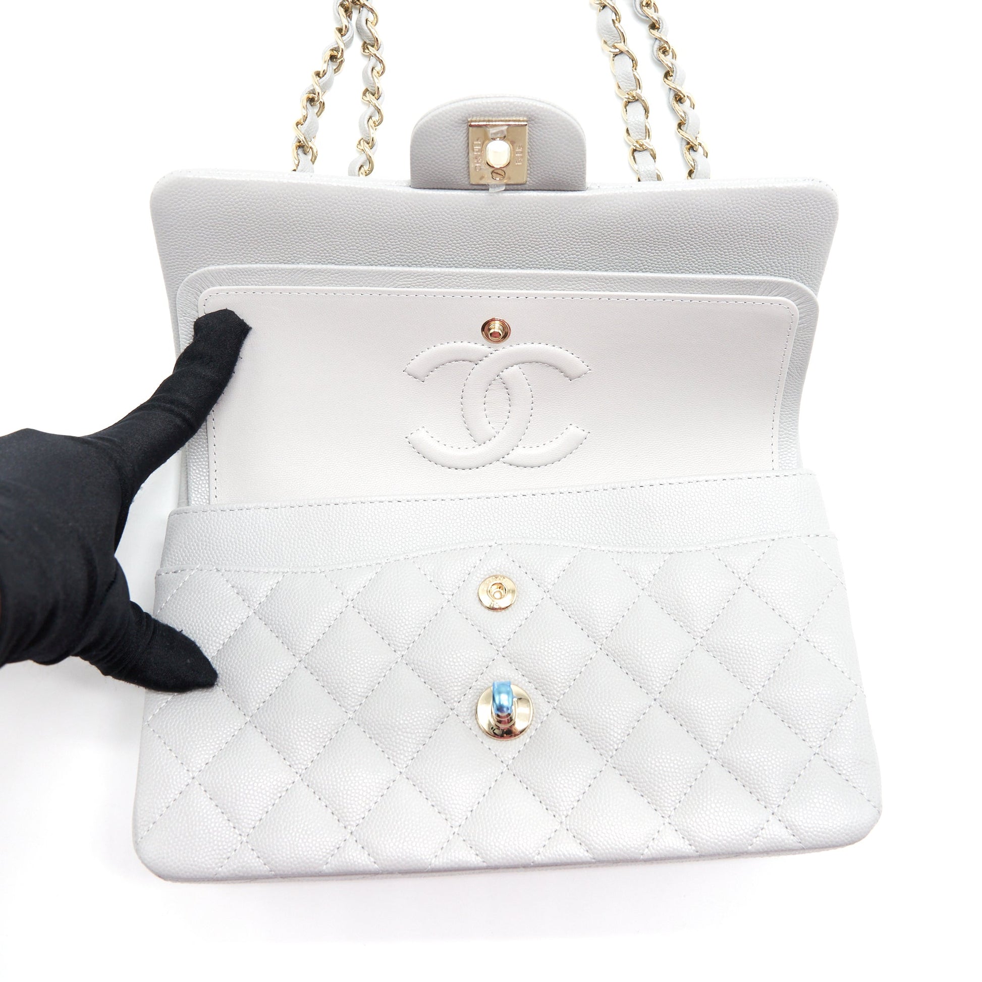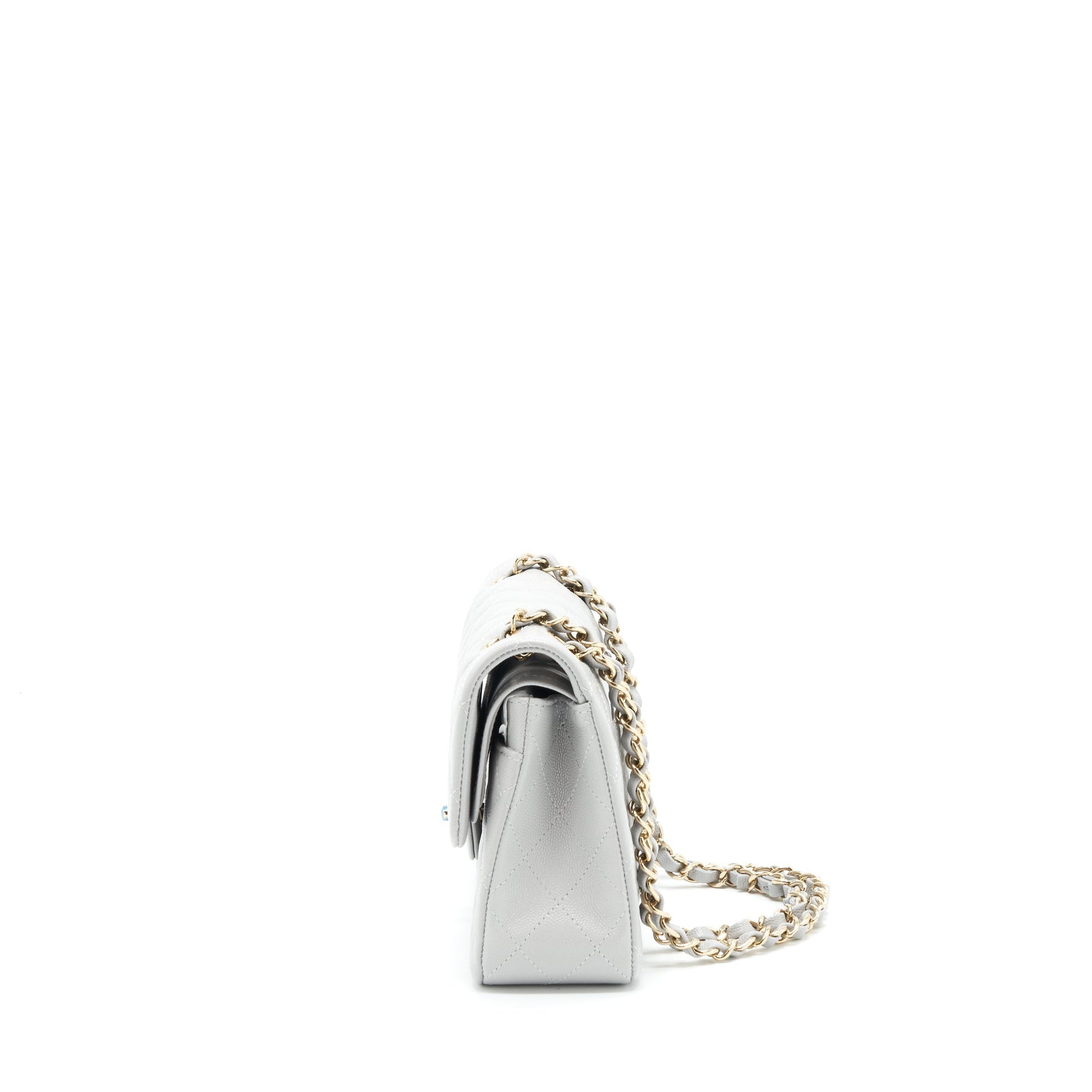 Chanel 21A Small Classic Double Flap Bag Caviar NC634 Light Grey LGHW