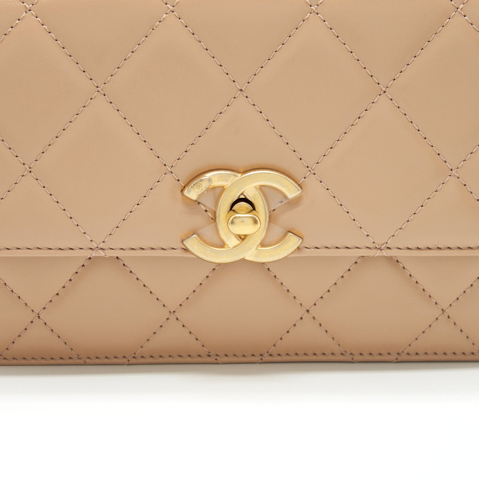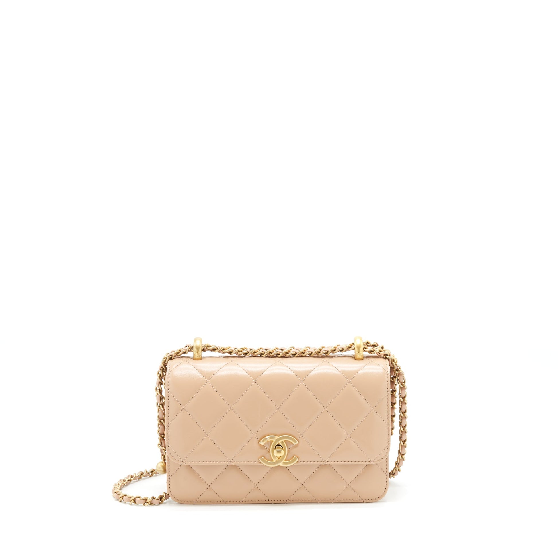Chanel 21A Small Gold Crush Flap Bag Calfskin Beige GHW (Microchip)
