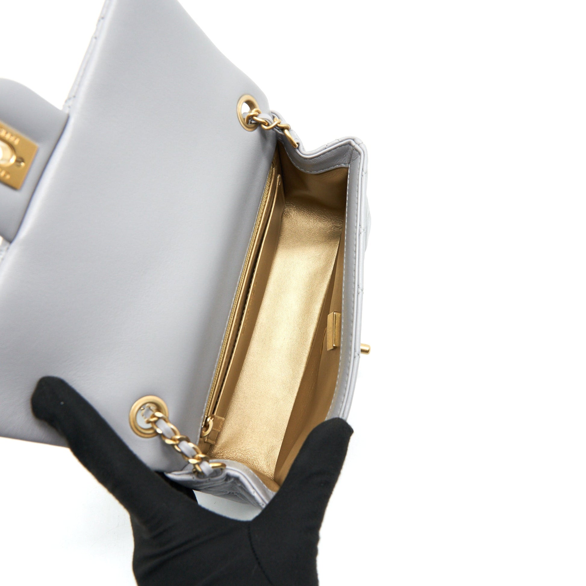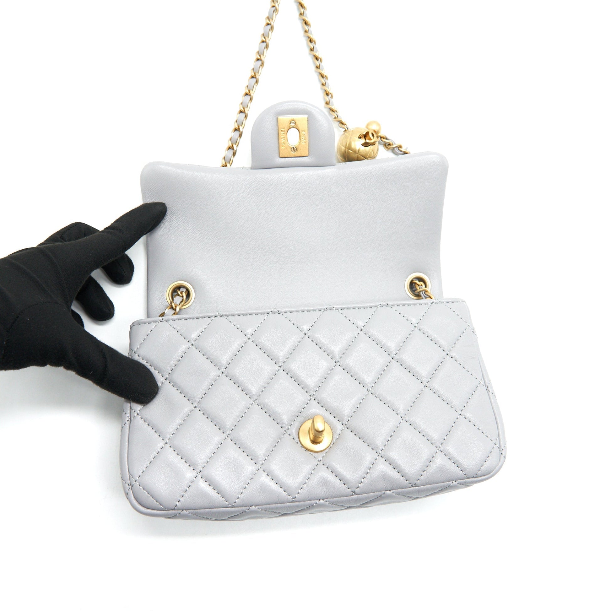 Chanel 21B pearl Crush Mini Rectangular Flap Bag Grey GHW