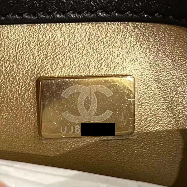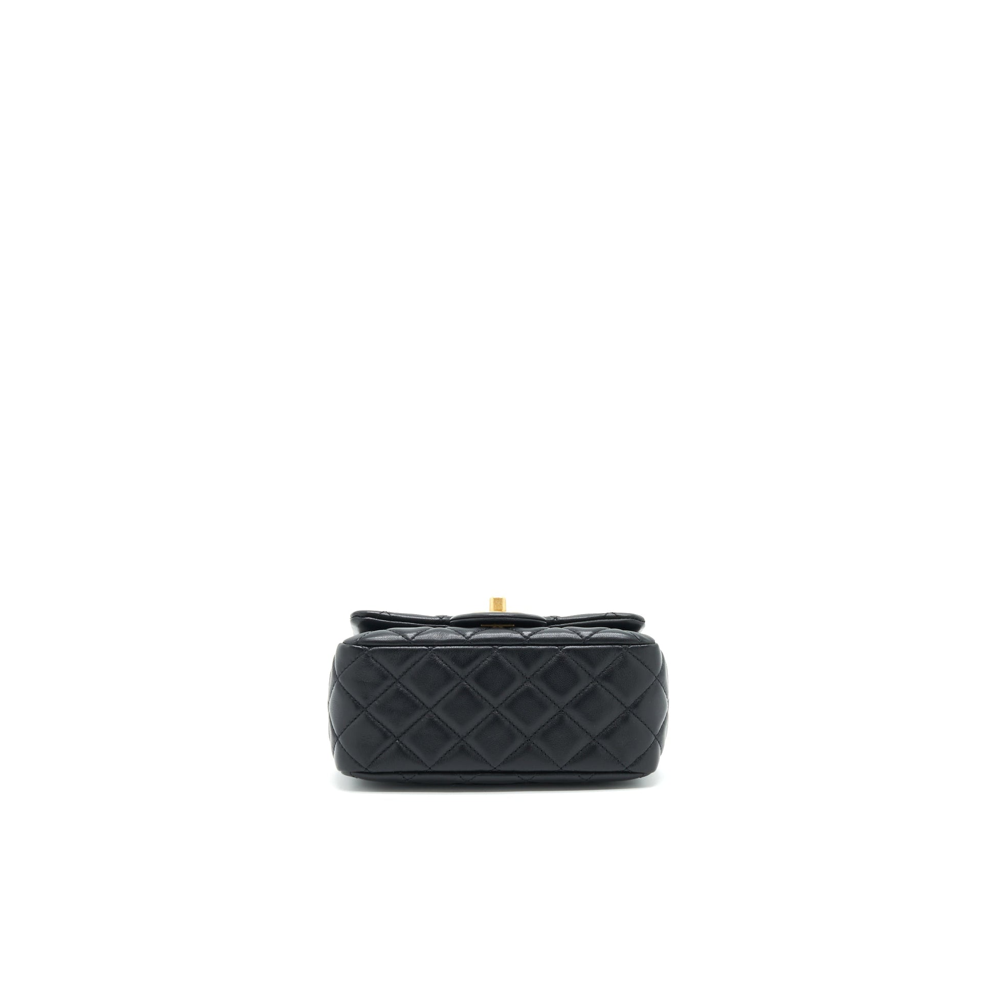 Chanel 21B pearl Crush Mini Square flap Bag Black GHW (microchip)