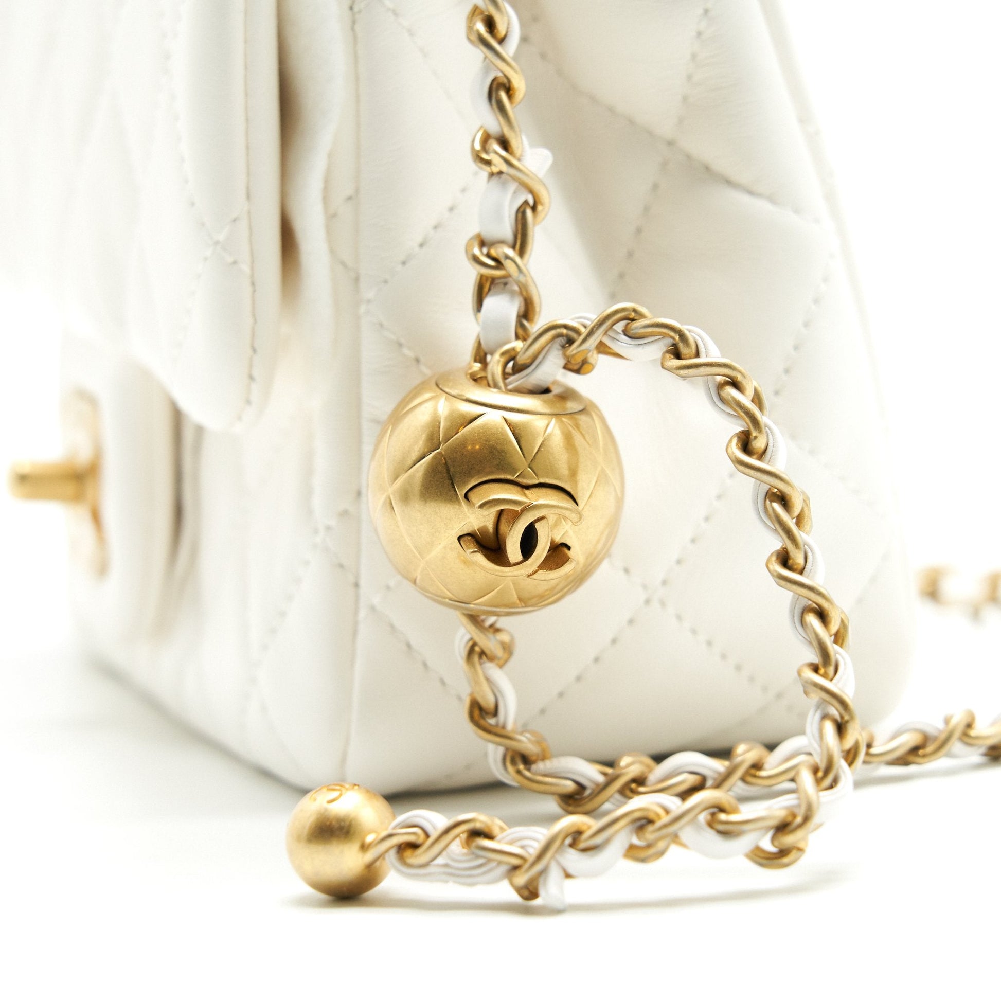 Chanel 21B pearl crush Mini Square flap Bag White GHW