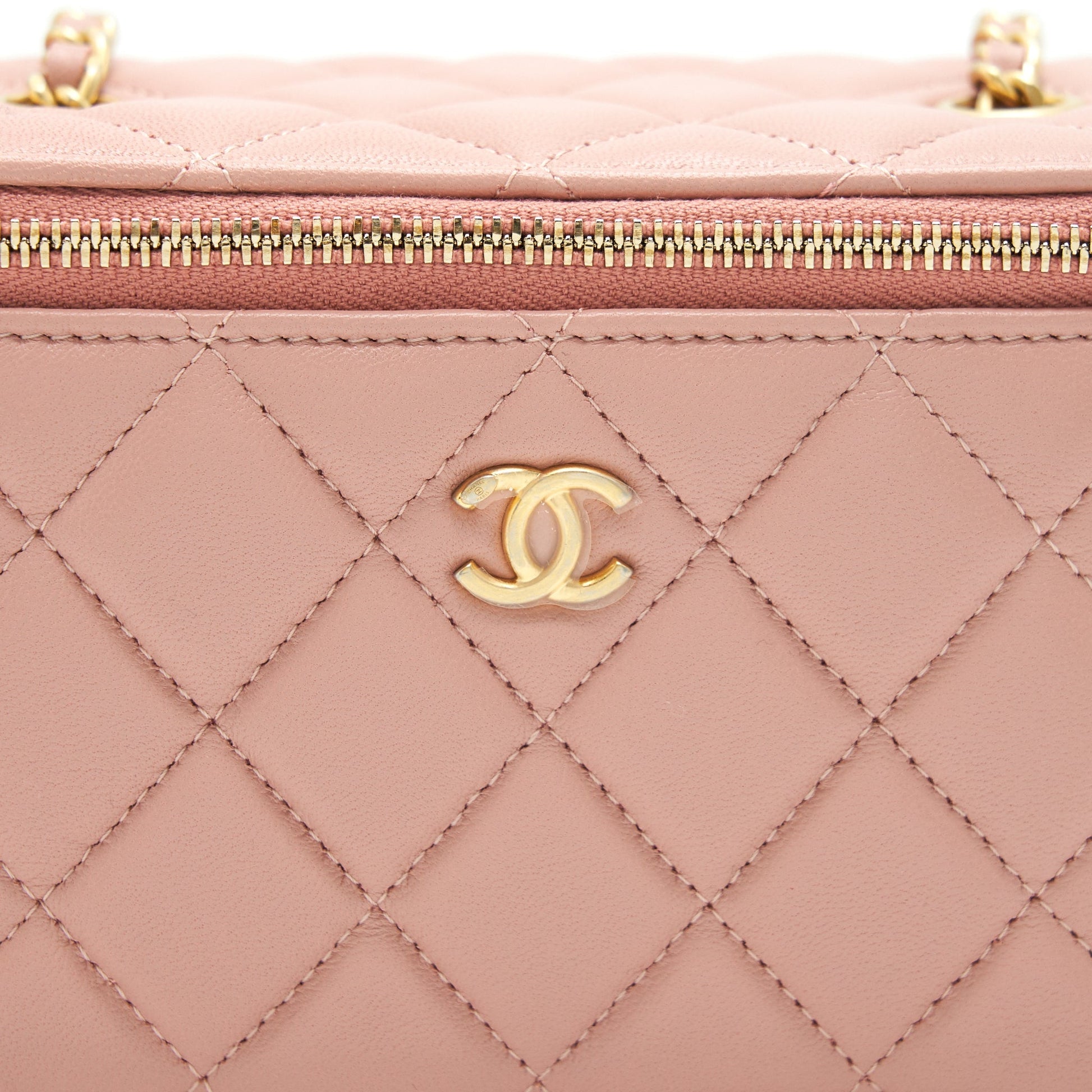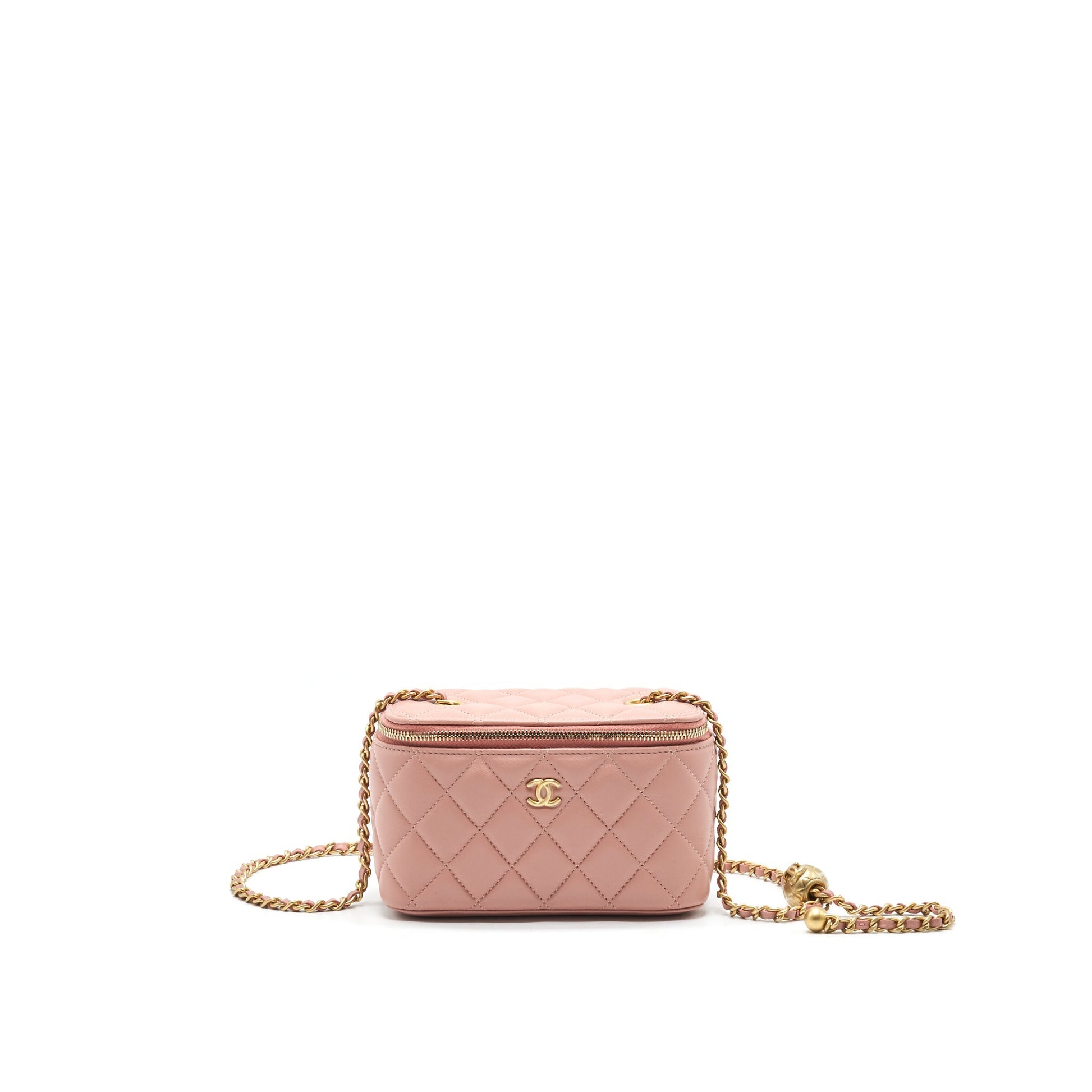 Chanel 21B pearl Crush rectangular Vanity with Chain Dark Pink