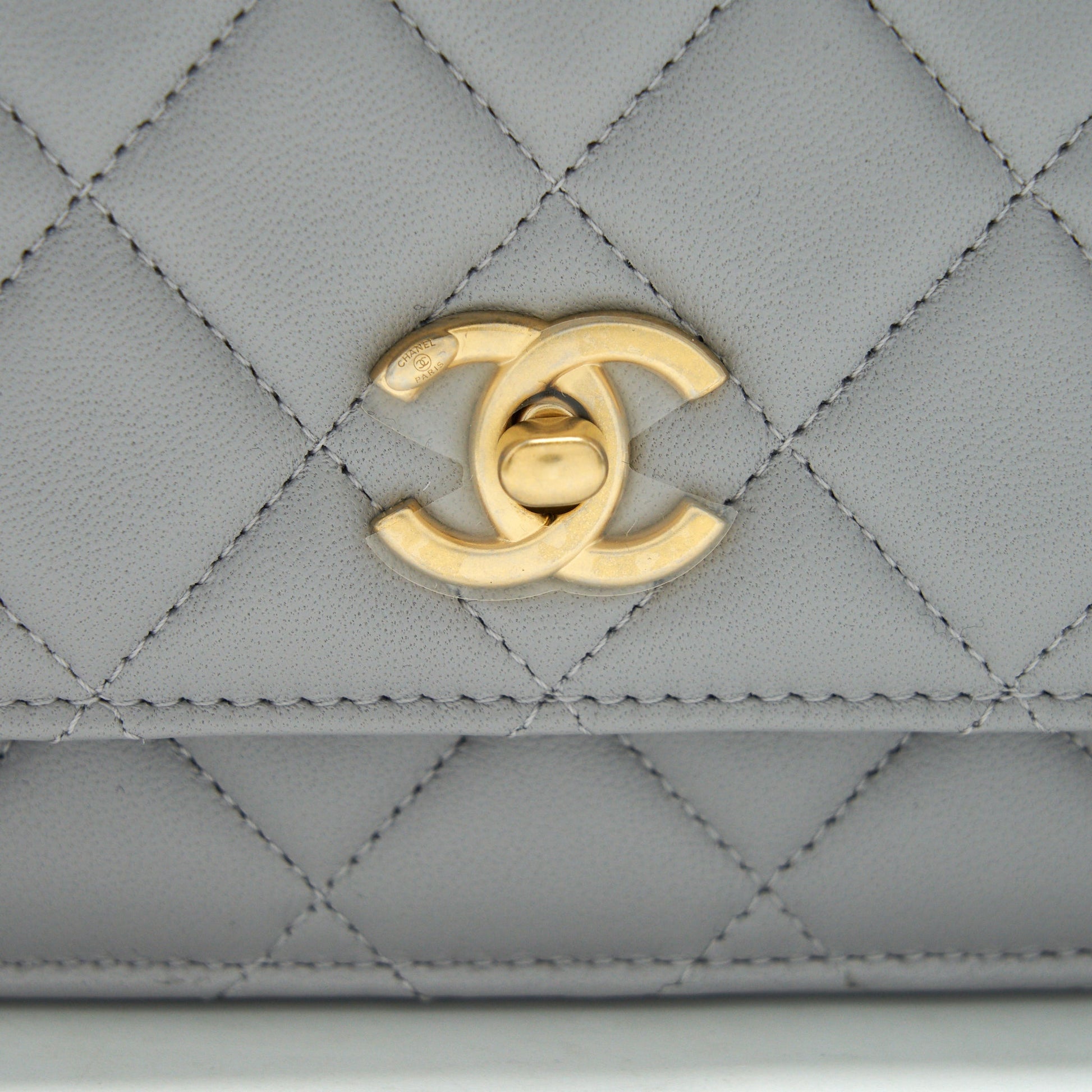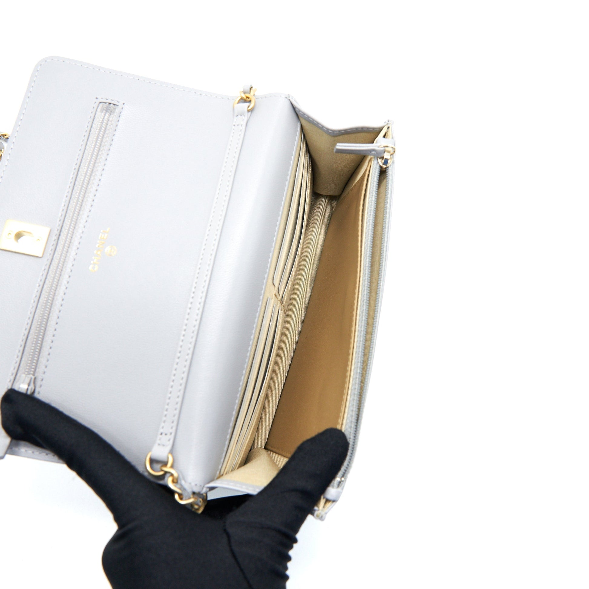 Chanel 21B Pearl Crush Wallet On Chain Grey GHW
