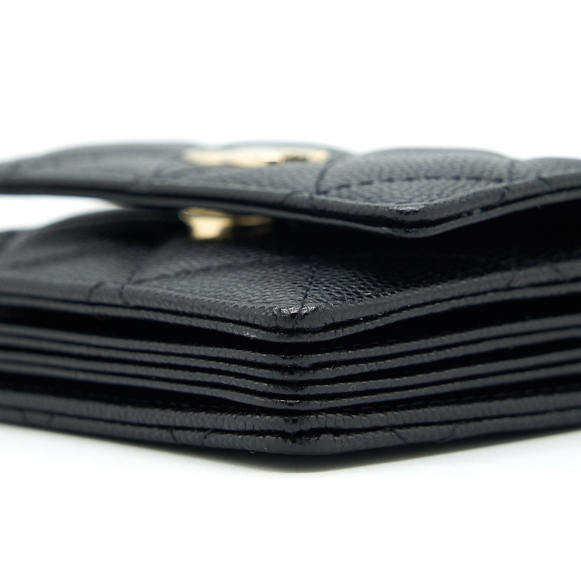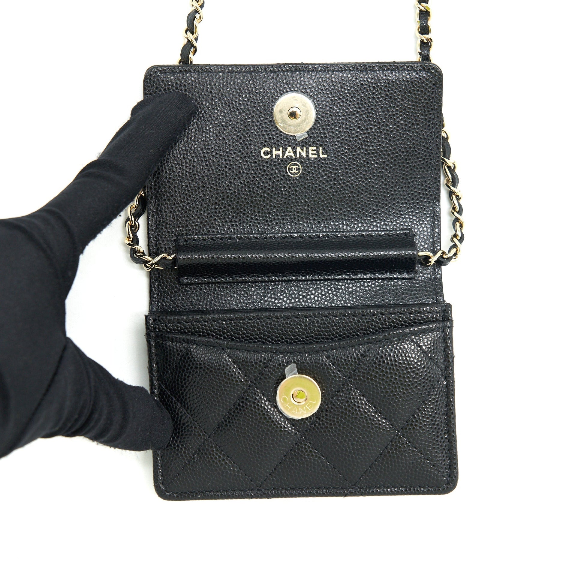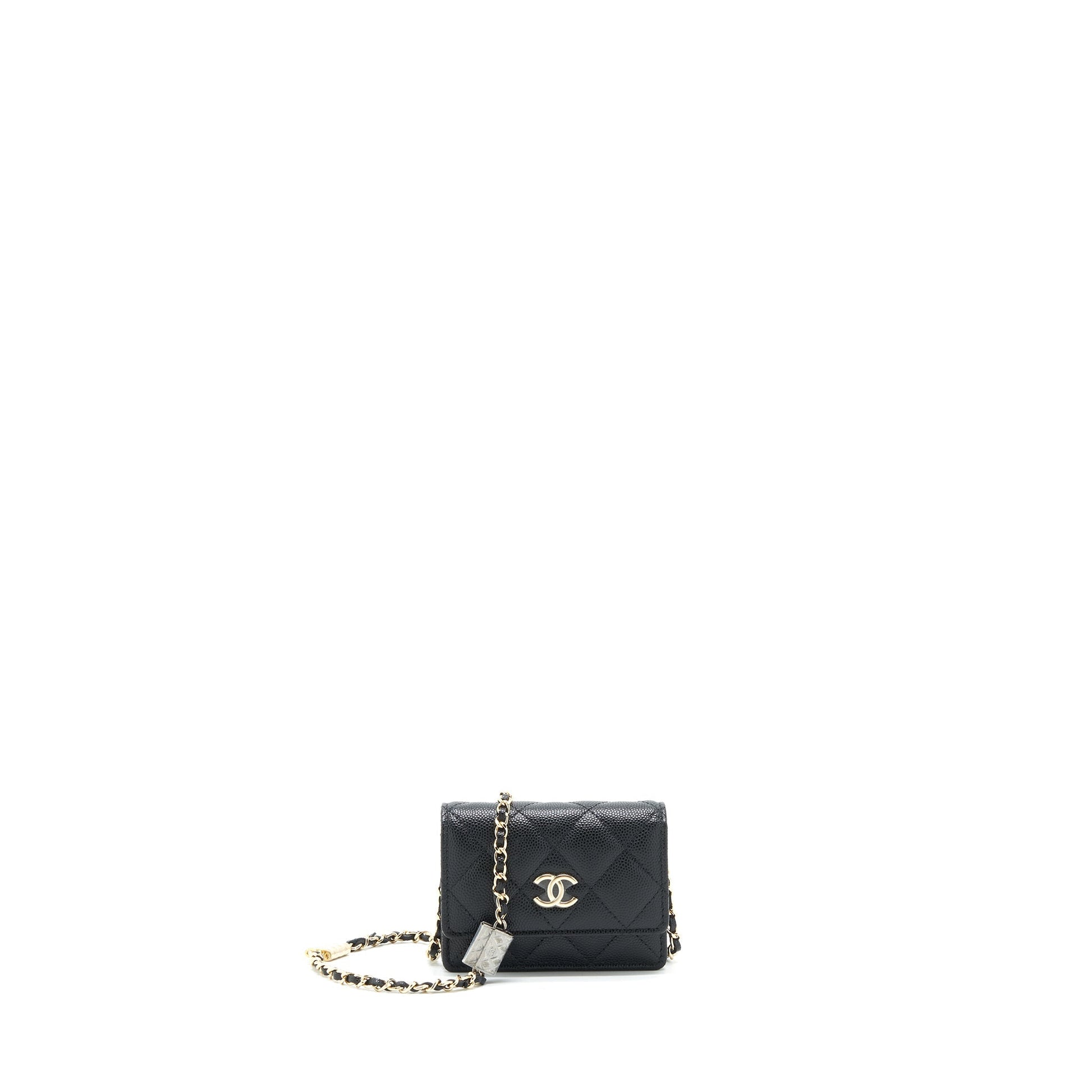 Chanel 21k Caviar mini flap cardholder with chain black LGHW