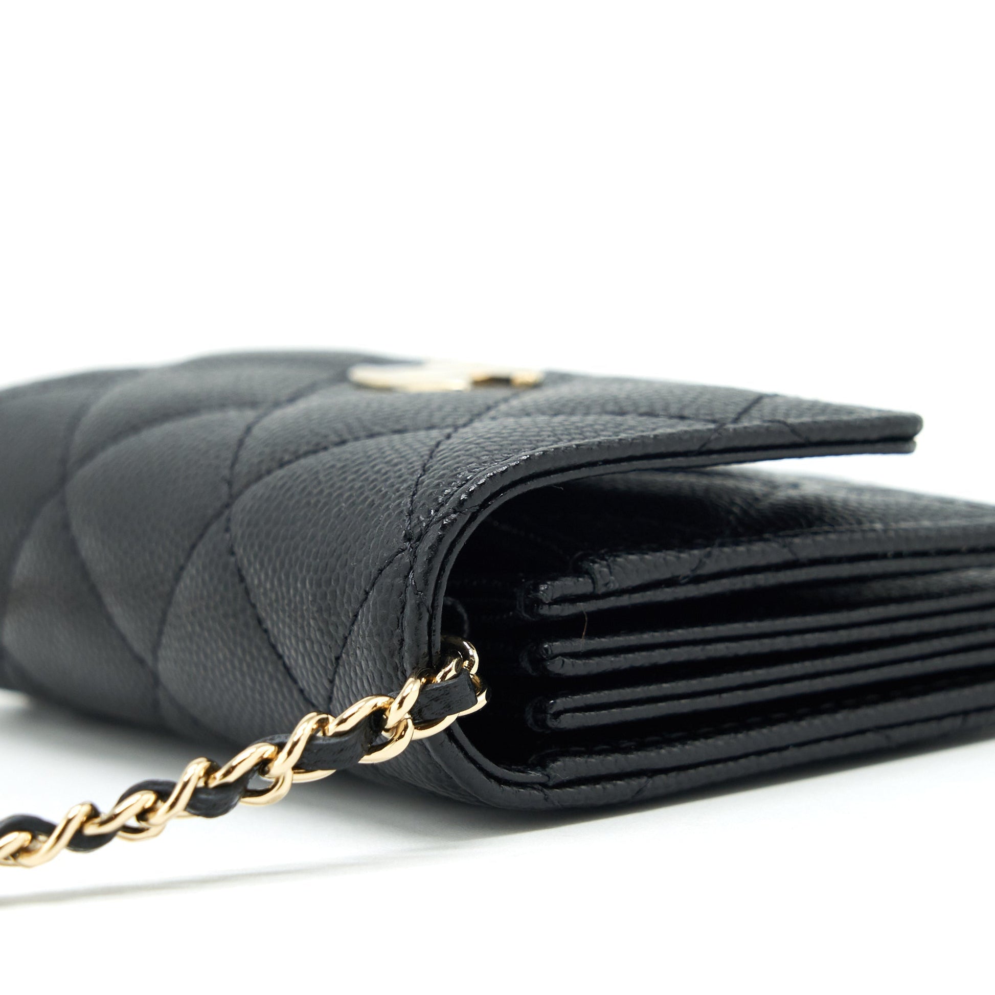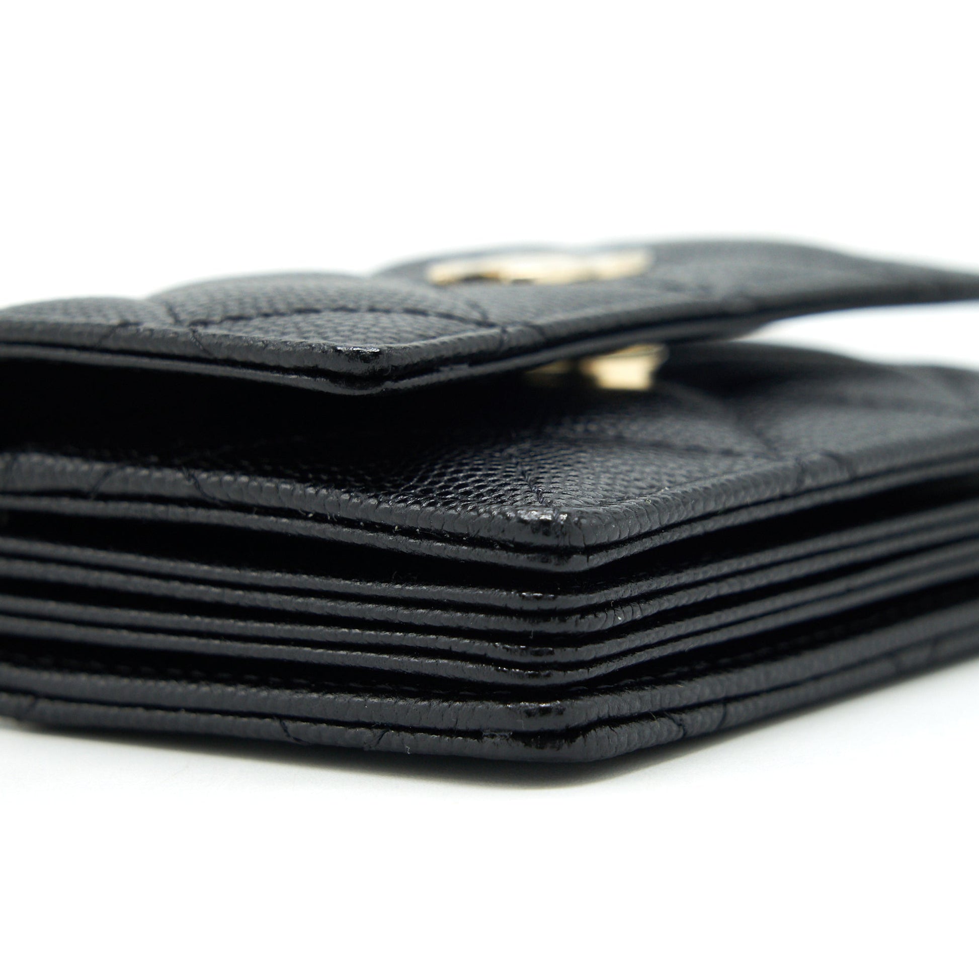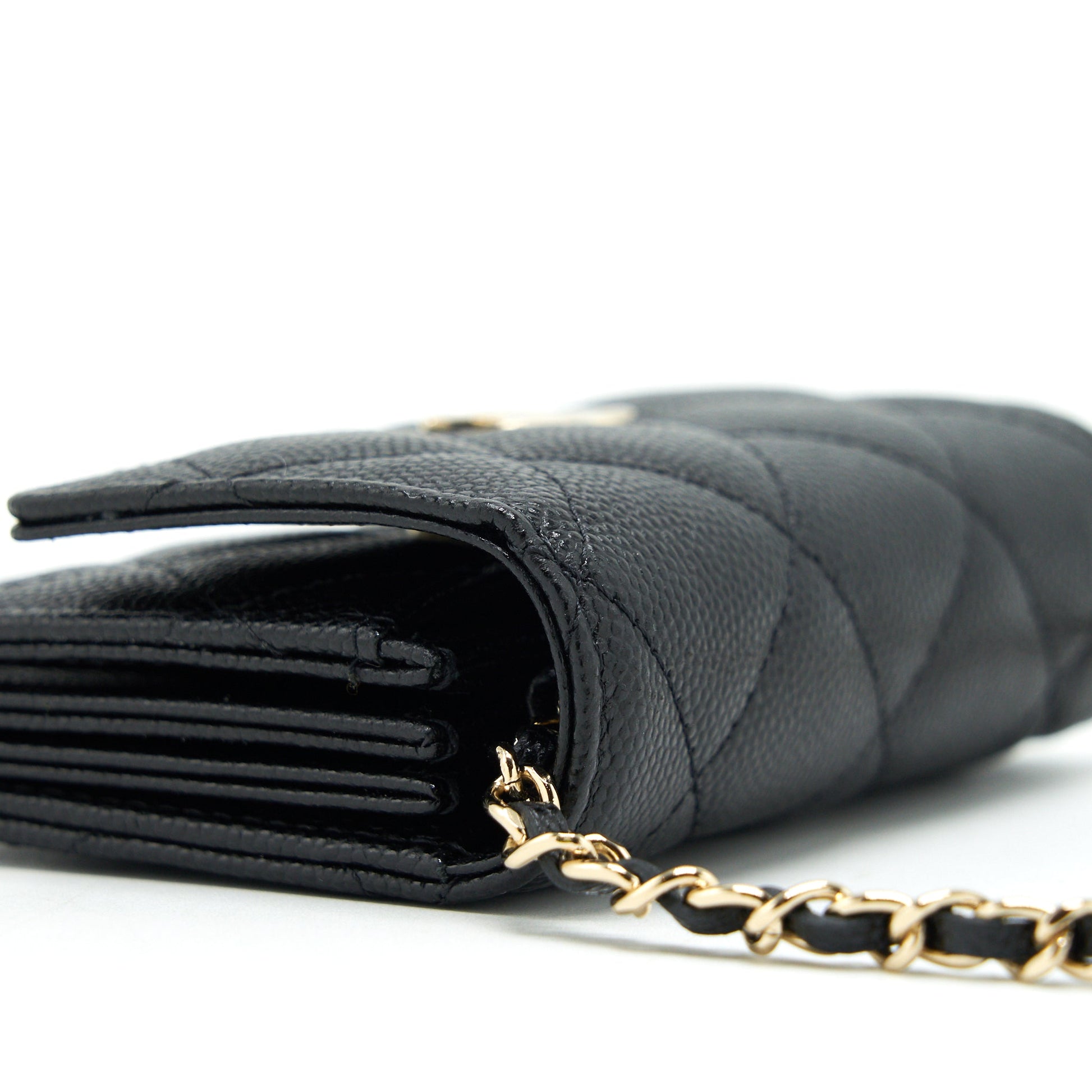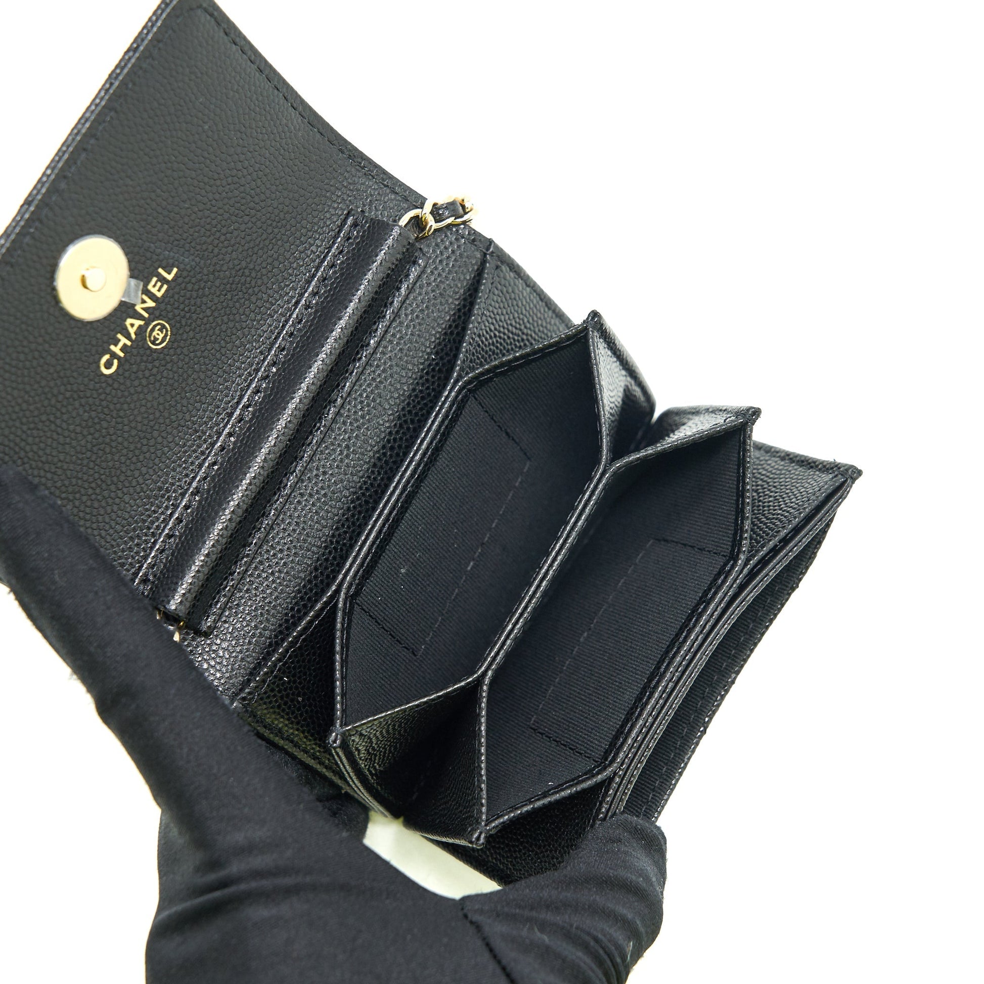 Chanel 21k Caviar mini flap cardholder with chain black LGHW