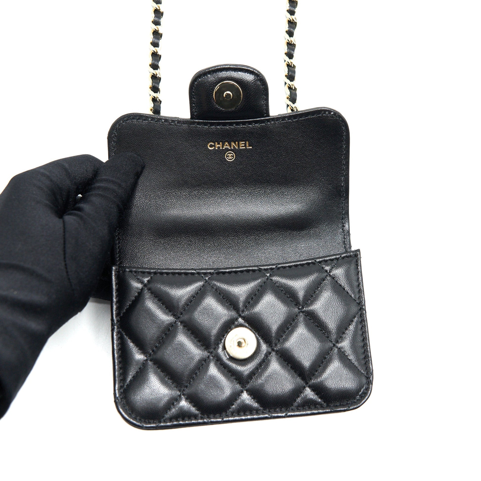 Chanel 21K Flap Coin Purse With Chain Black LGHW