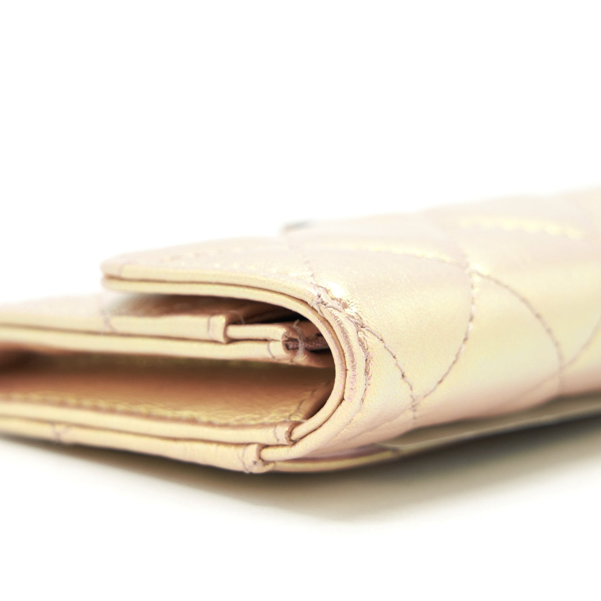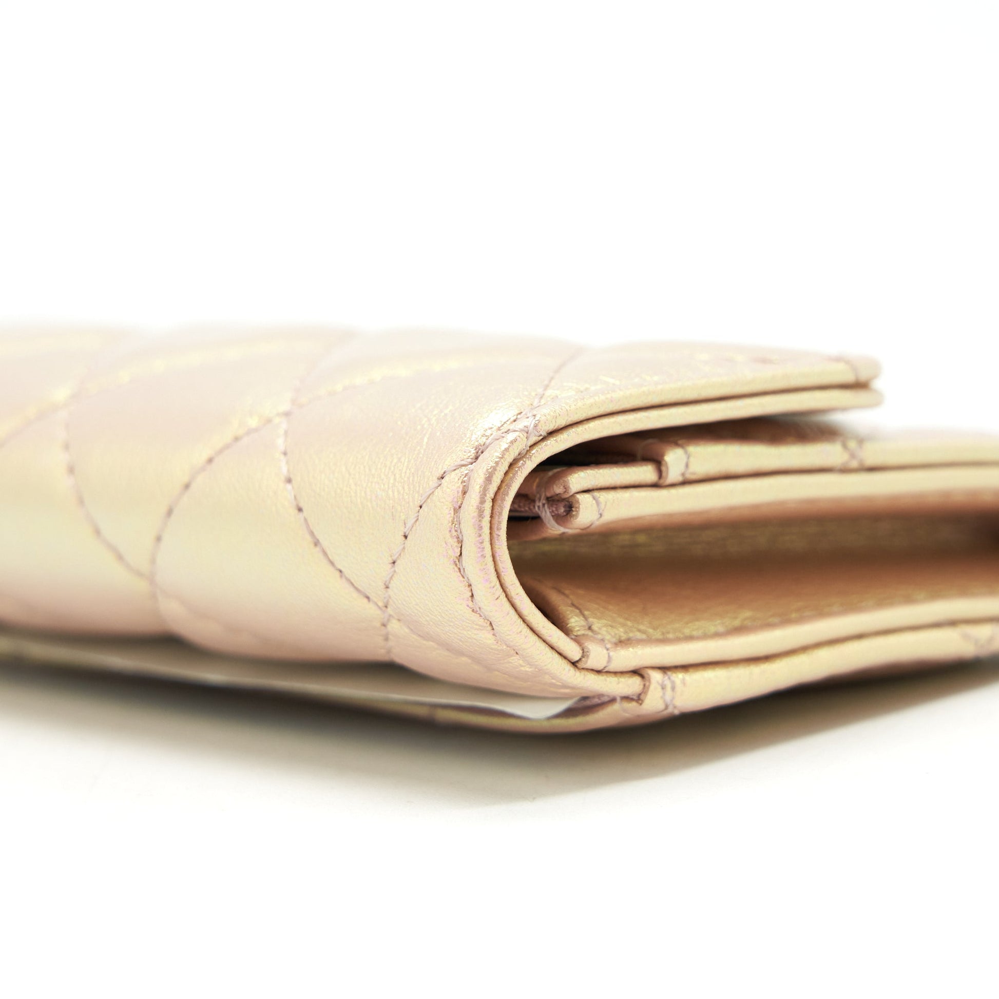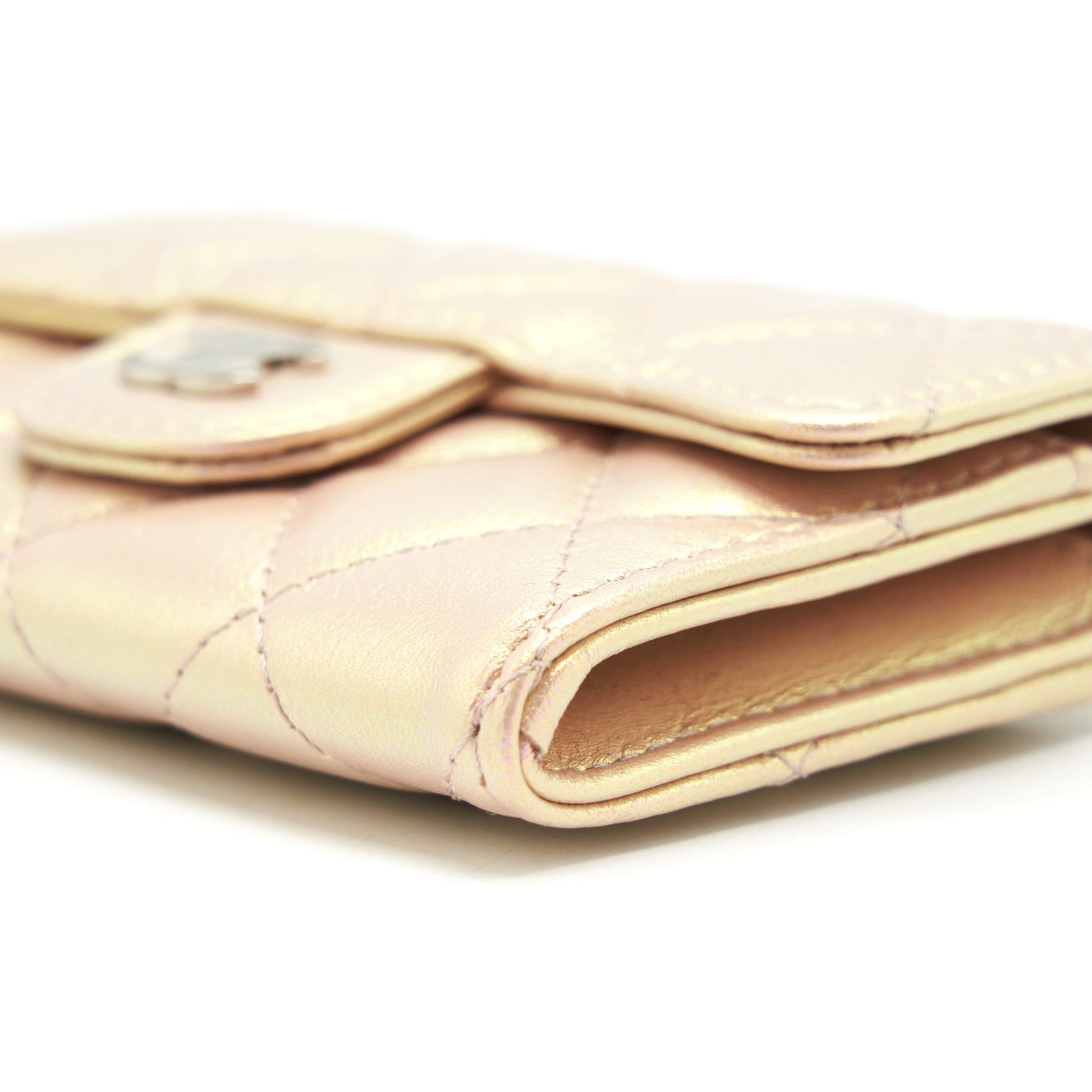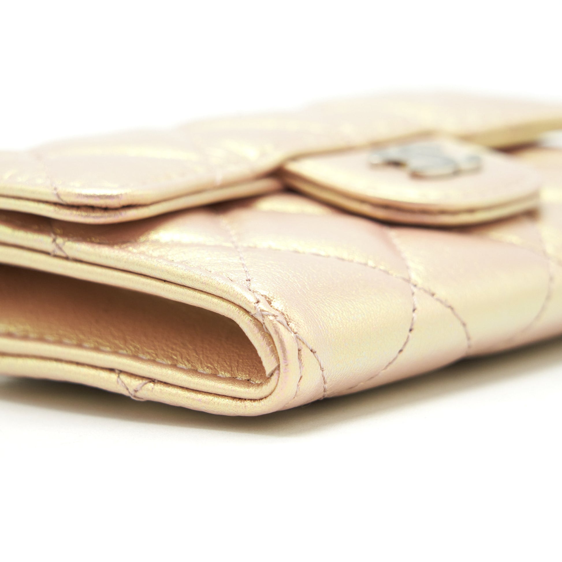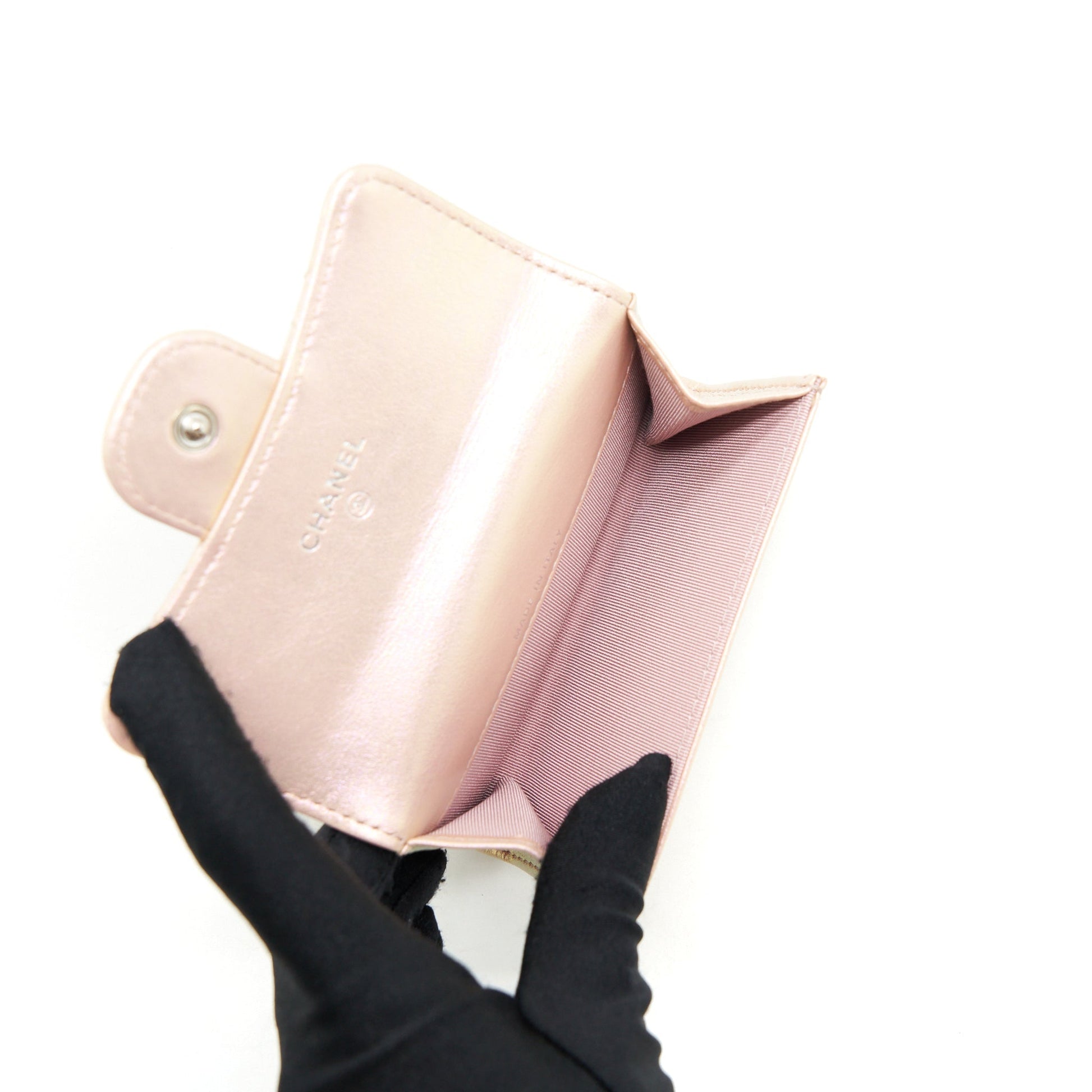 Chanel 21k Iridescent Pink Flap Card Holder SHW