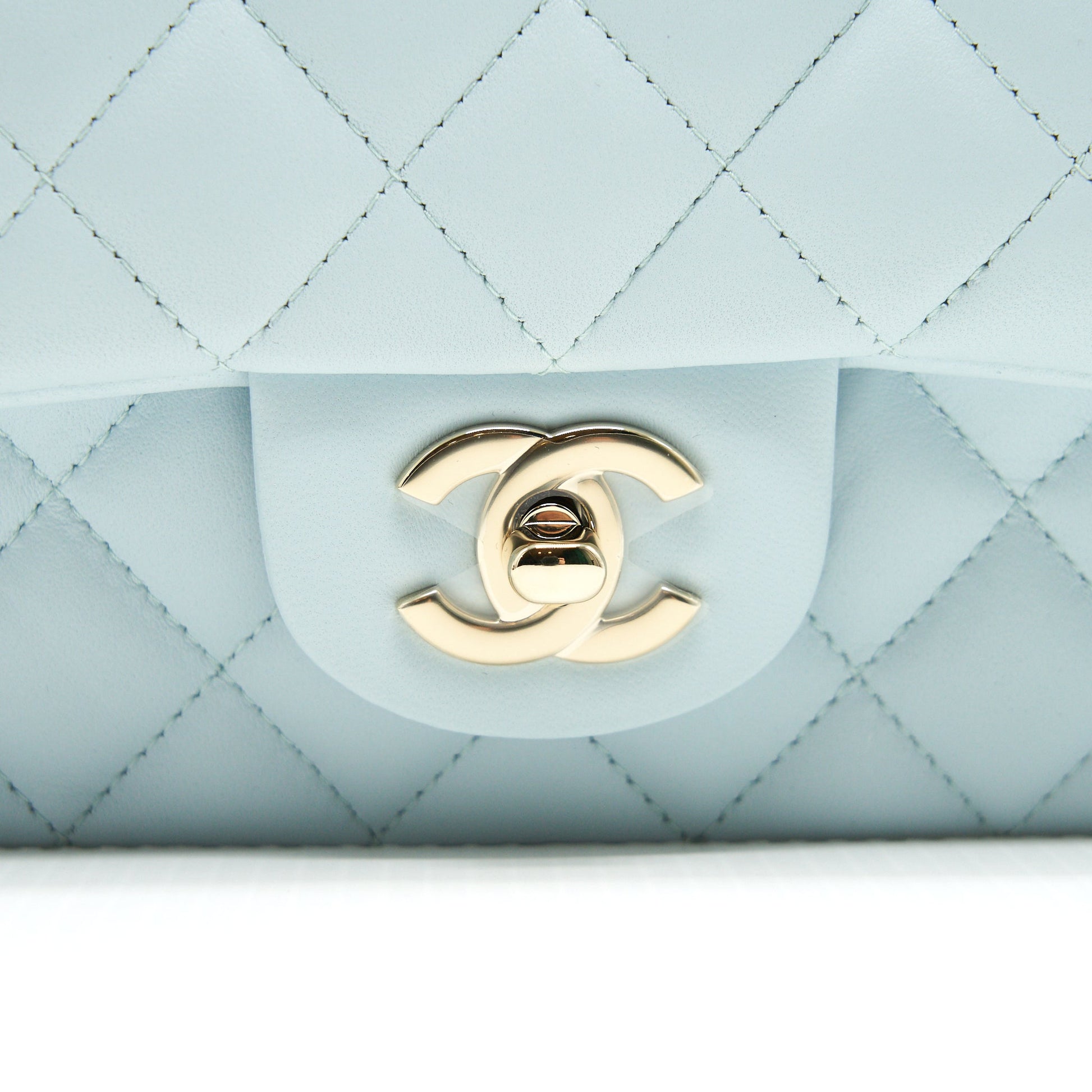 Chanel 21K Mini Top Handle Rectangular Flap Bag Pastel Blue LGHW