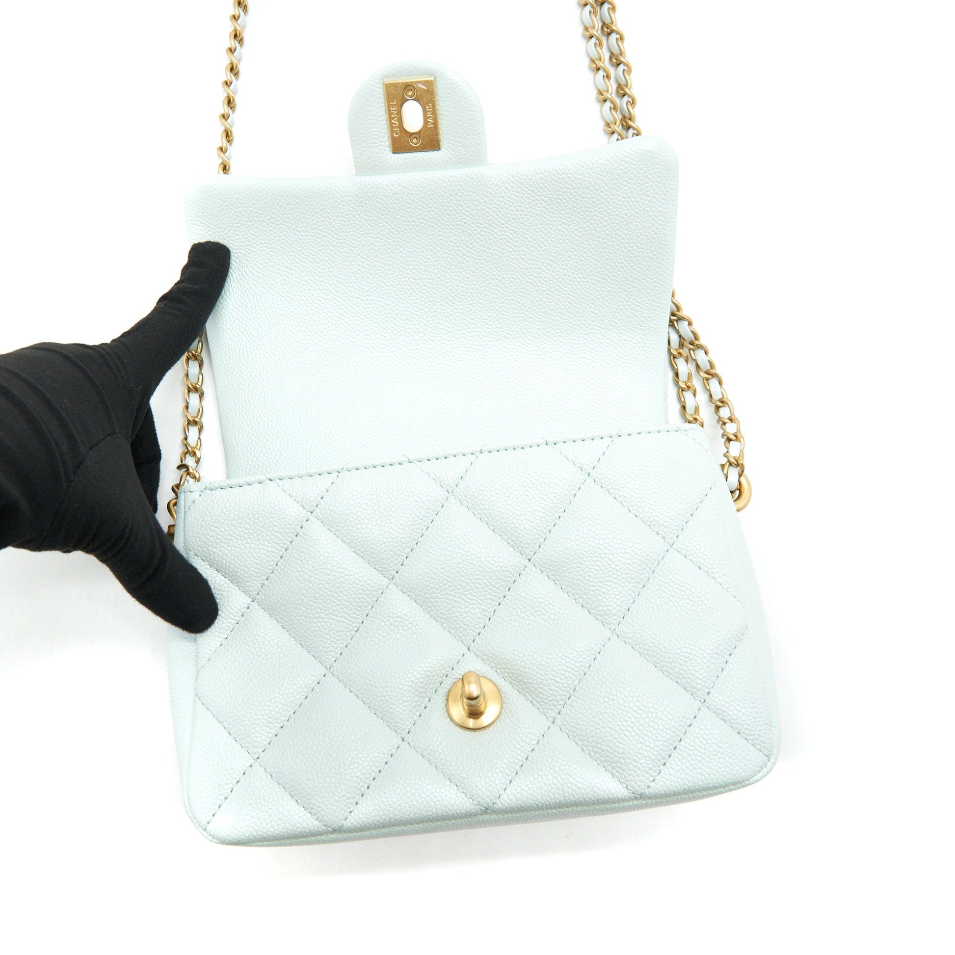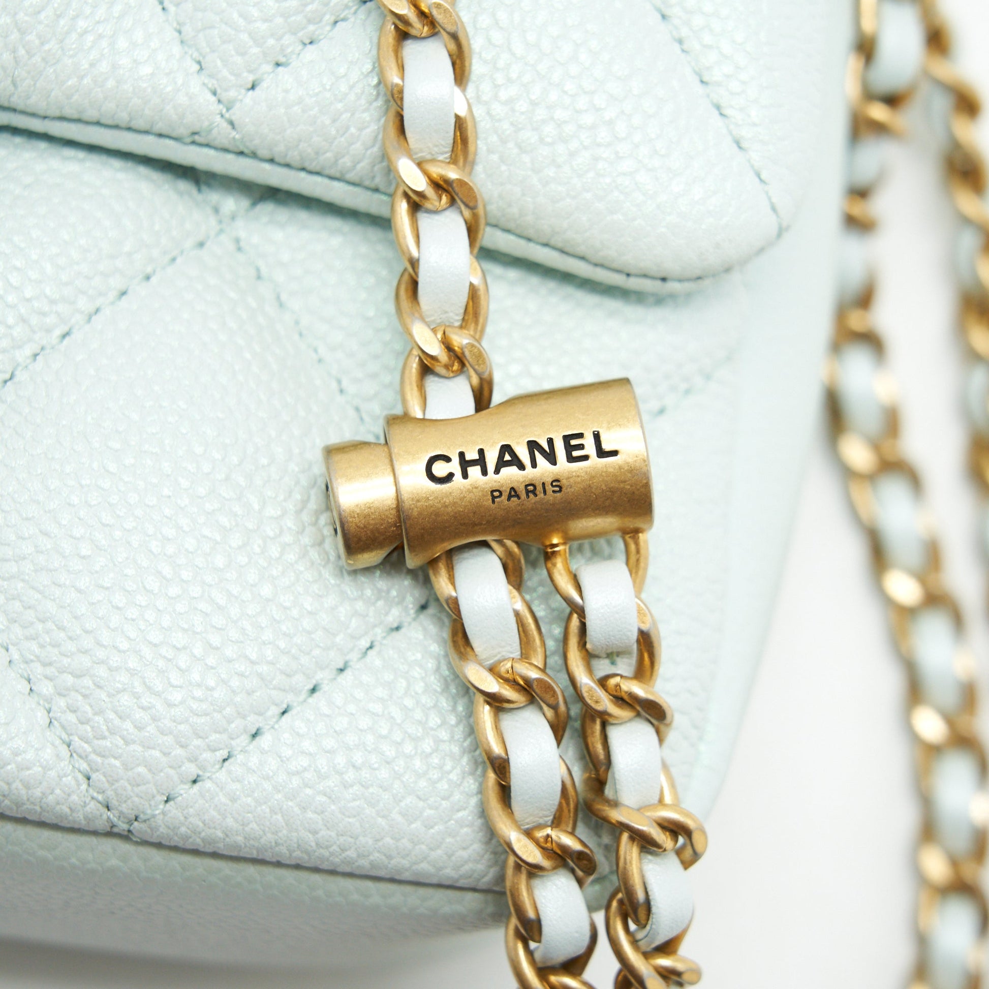 Chanel 21K My Perfect Mini Flap Bag Caviar Iridescent Pastel Green GHW (Microchip)