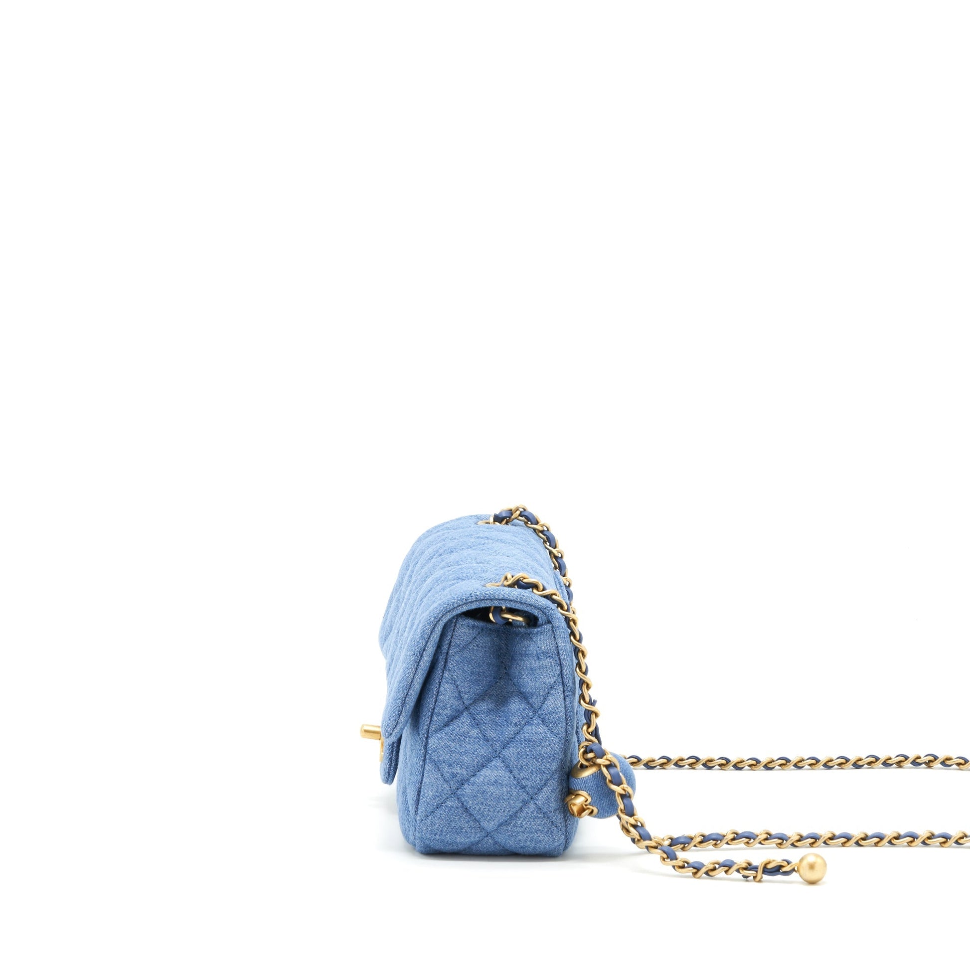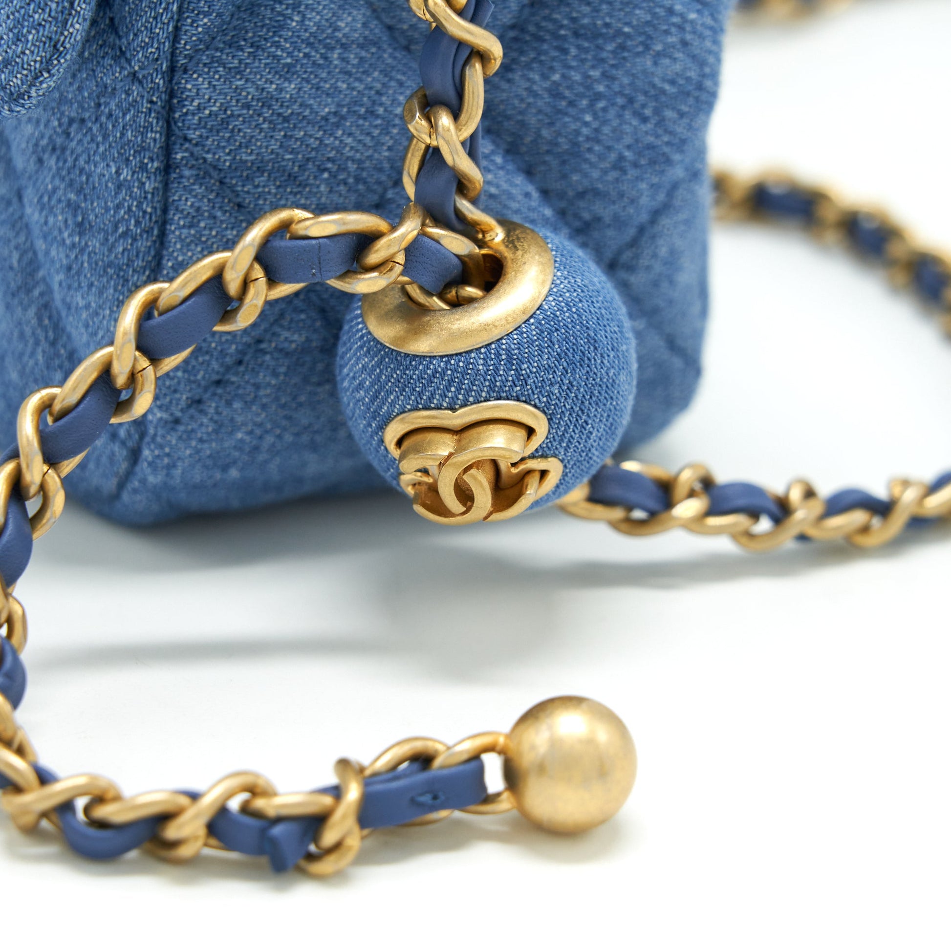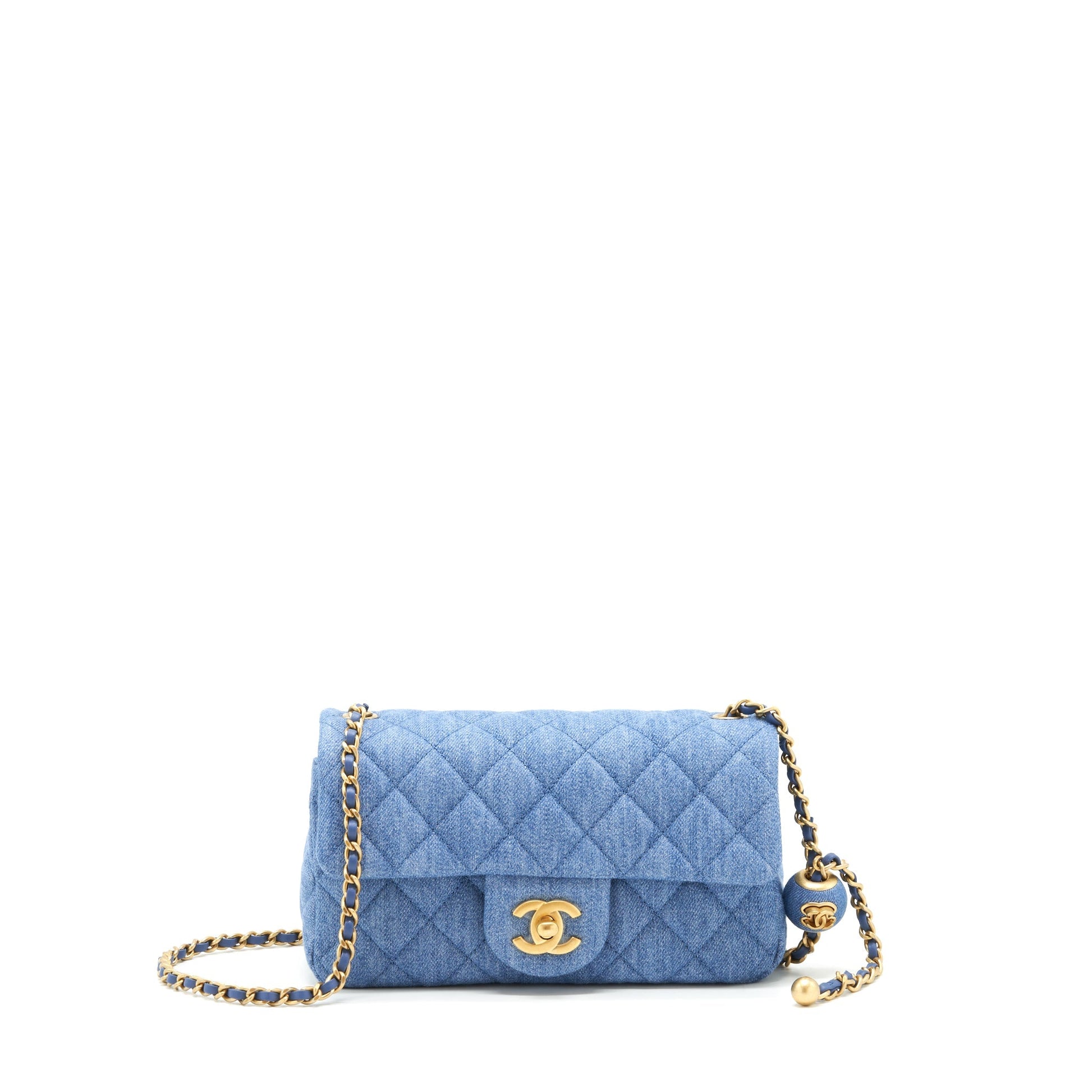 Chanel 21K Pearl Crush Mini Rectangular Flap Bag Denim GHW (Microchip)