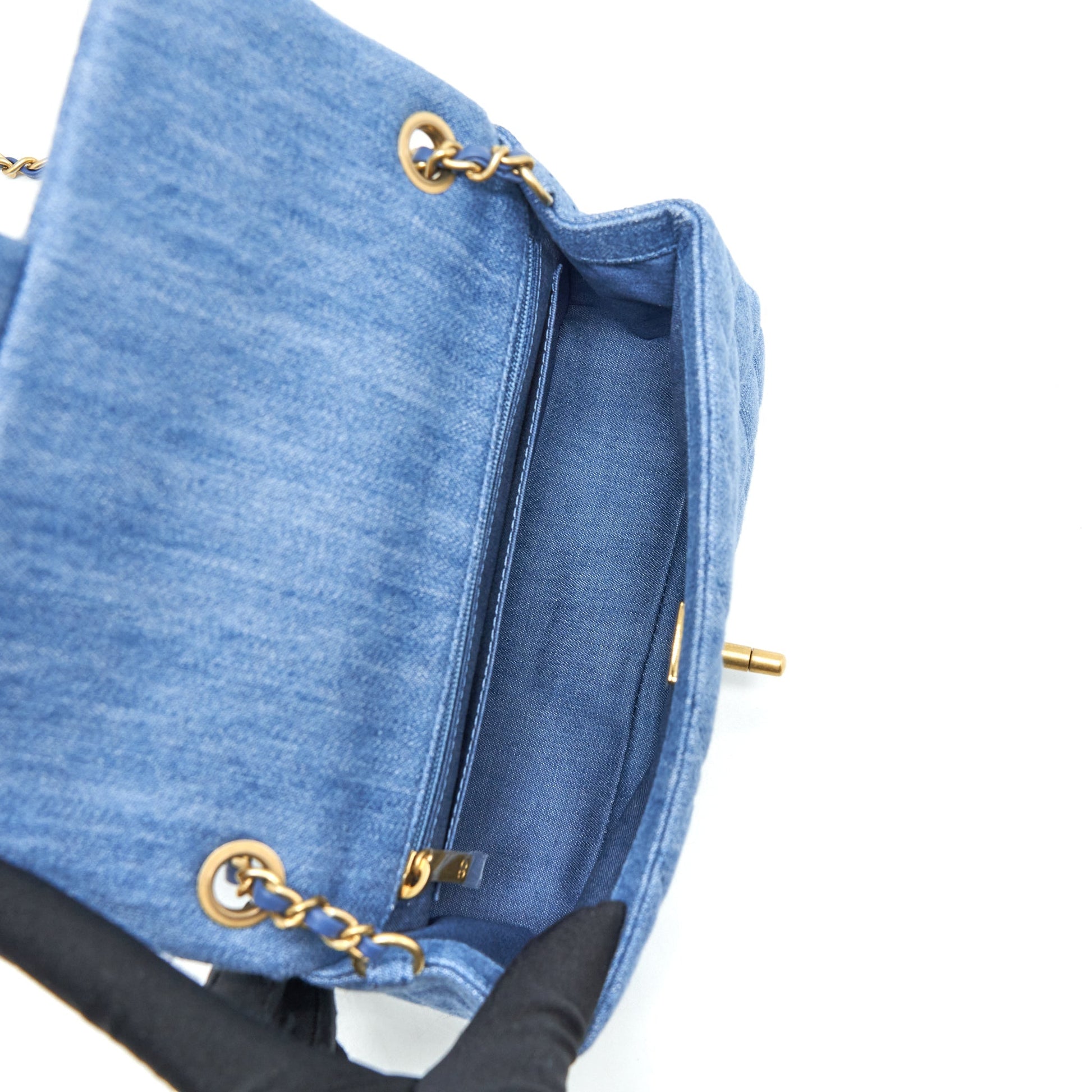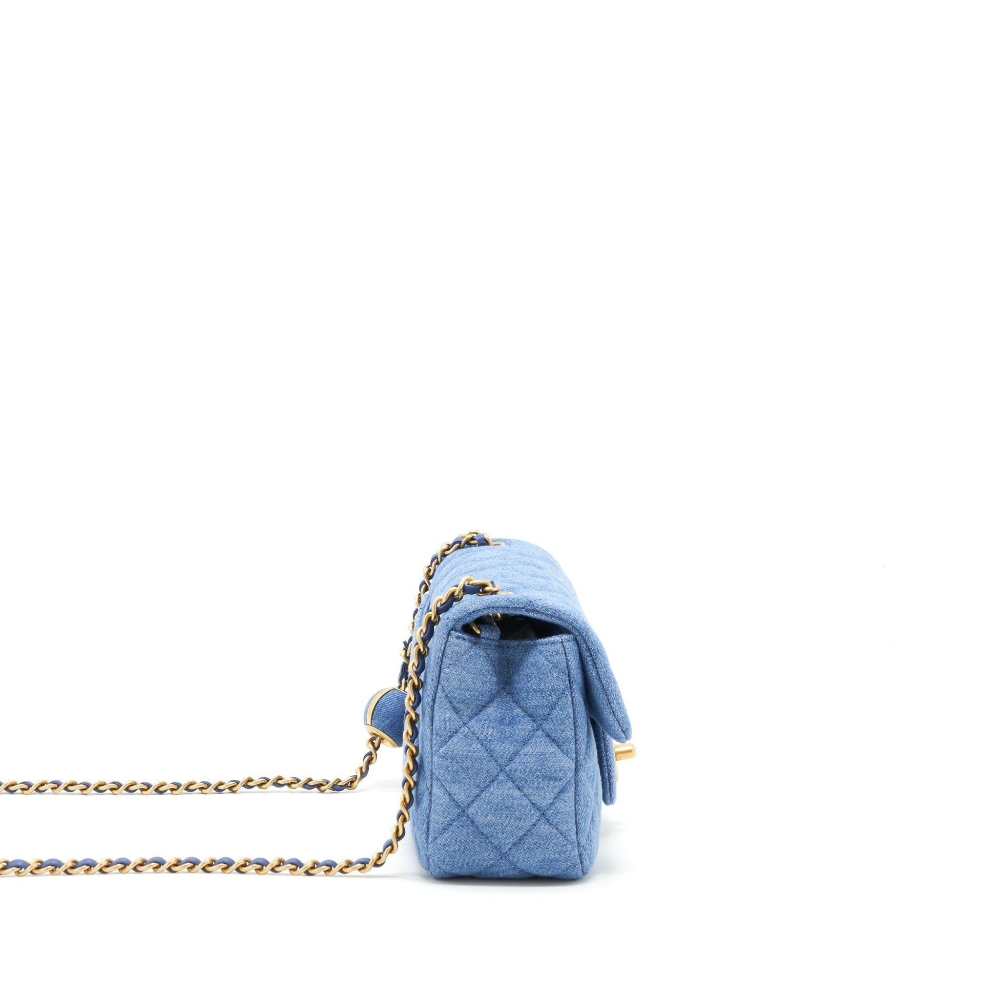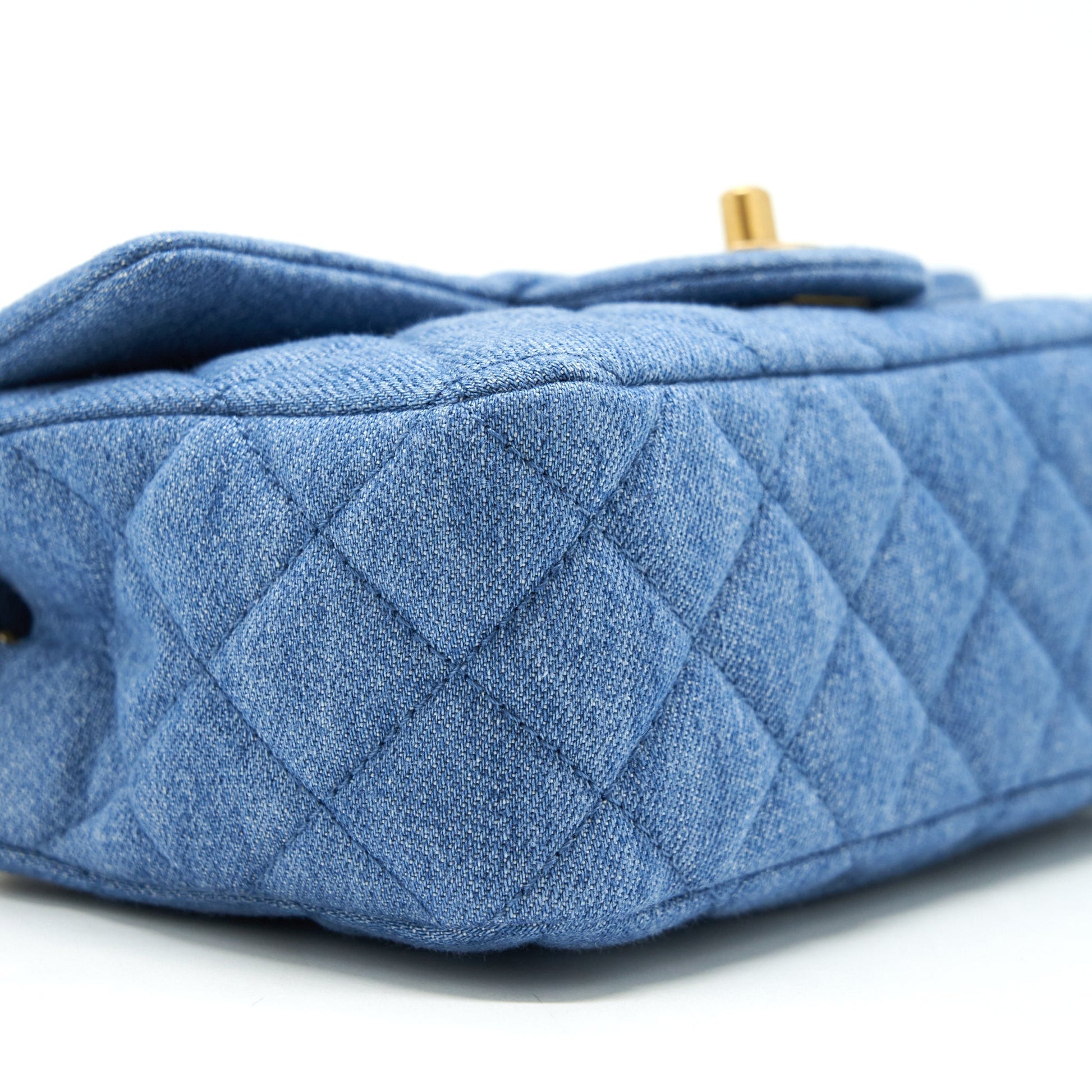 Chanel 21K Pearl Crush Mini Rectangular Flap Bag Denim GHW (Microchip)