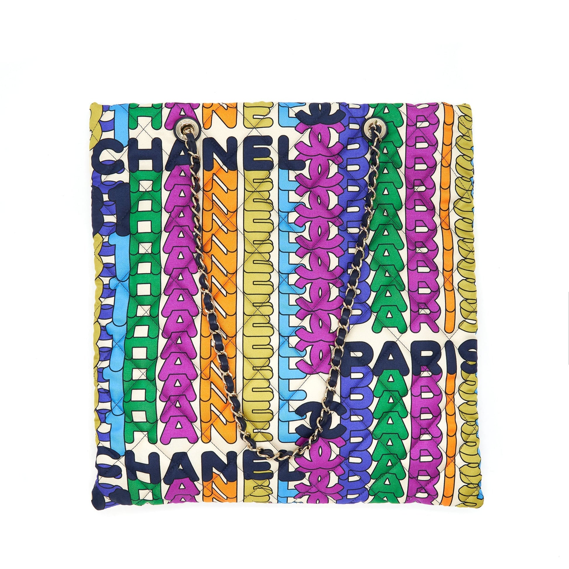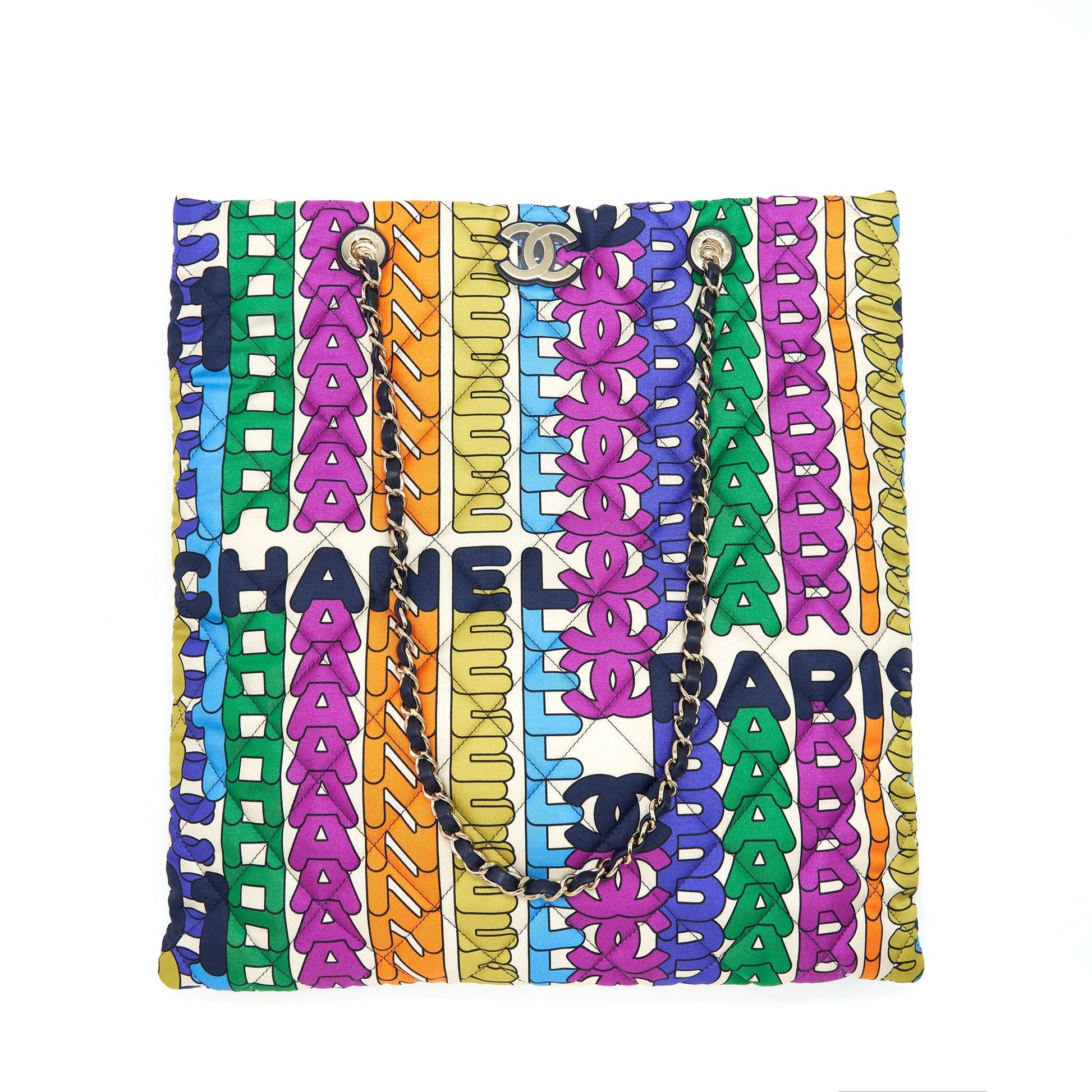 Chanel 21K Printed Barricades Quilted Logo Shopping Tote Bag Multicolour LGHW