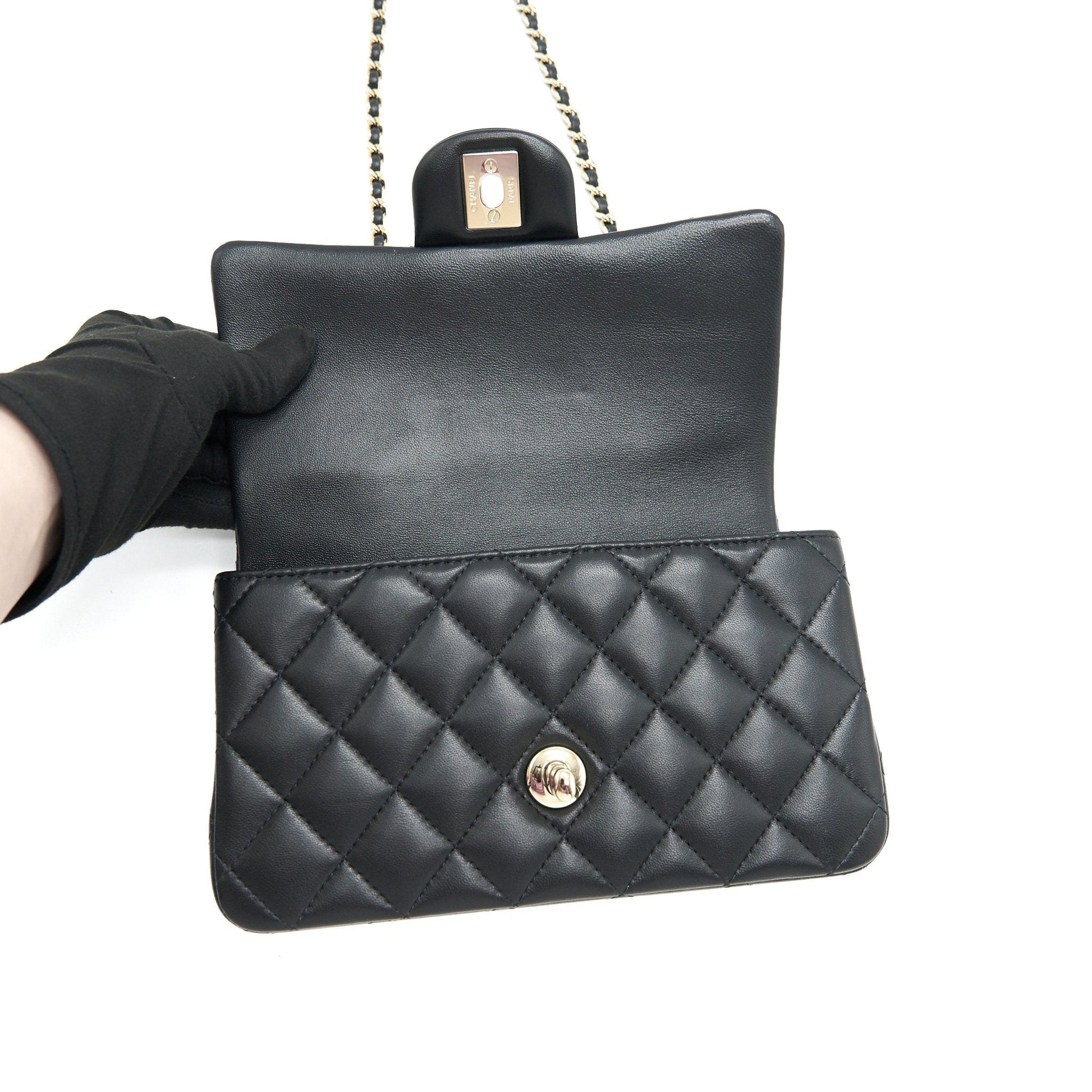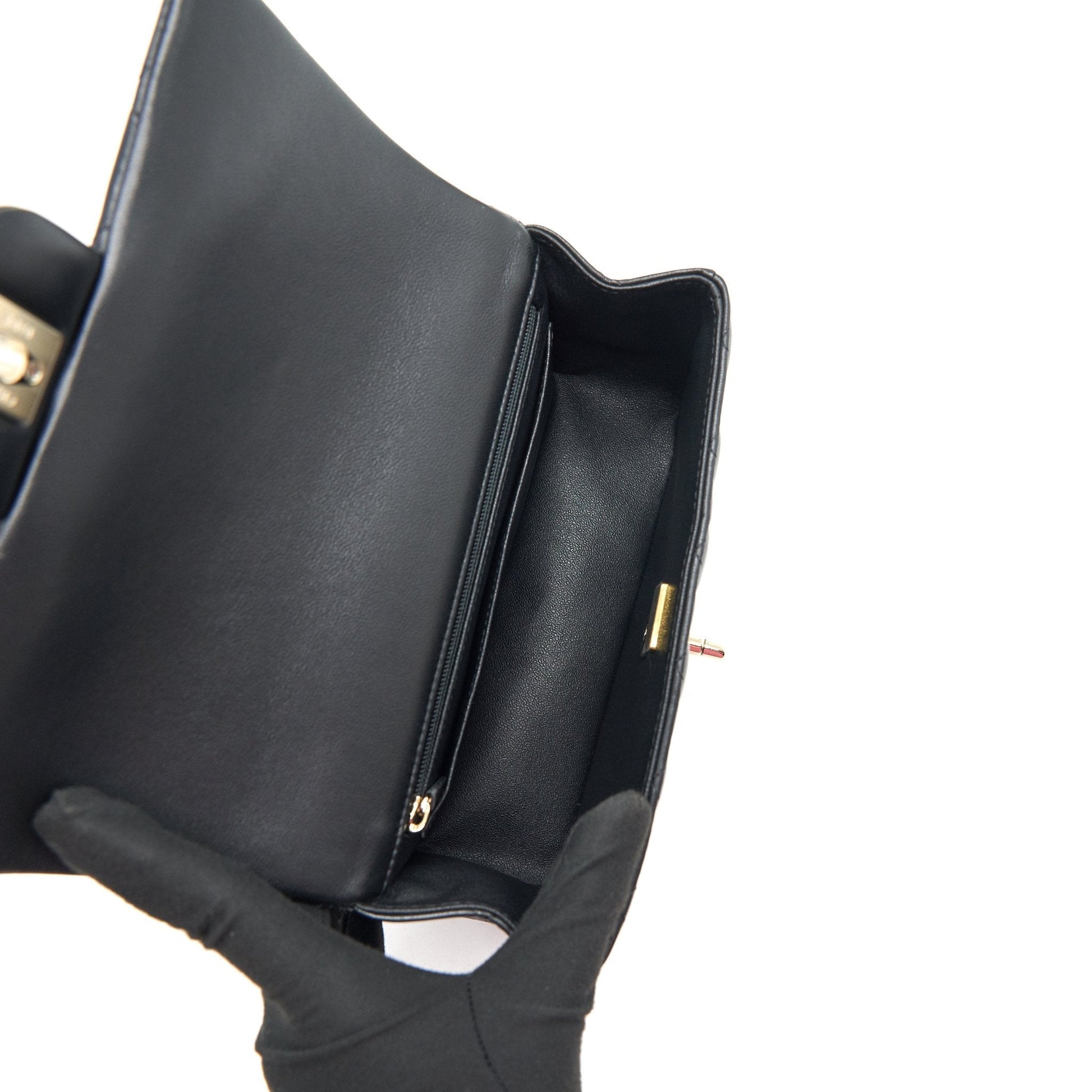 Chanel 21K Top Handle Mini Rectangular Flap Bag Black GHW