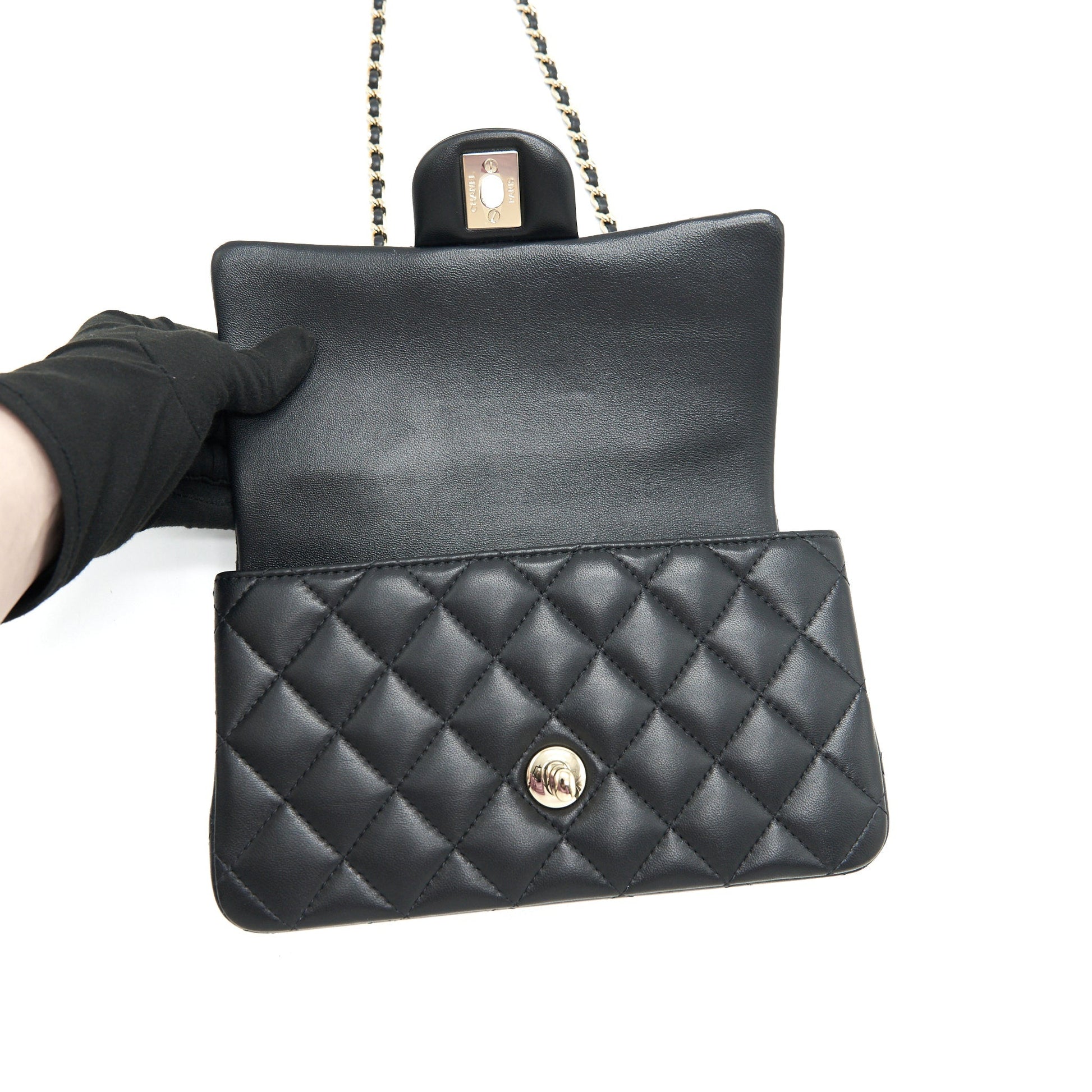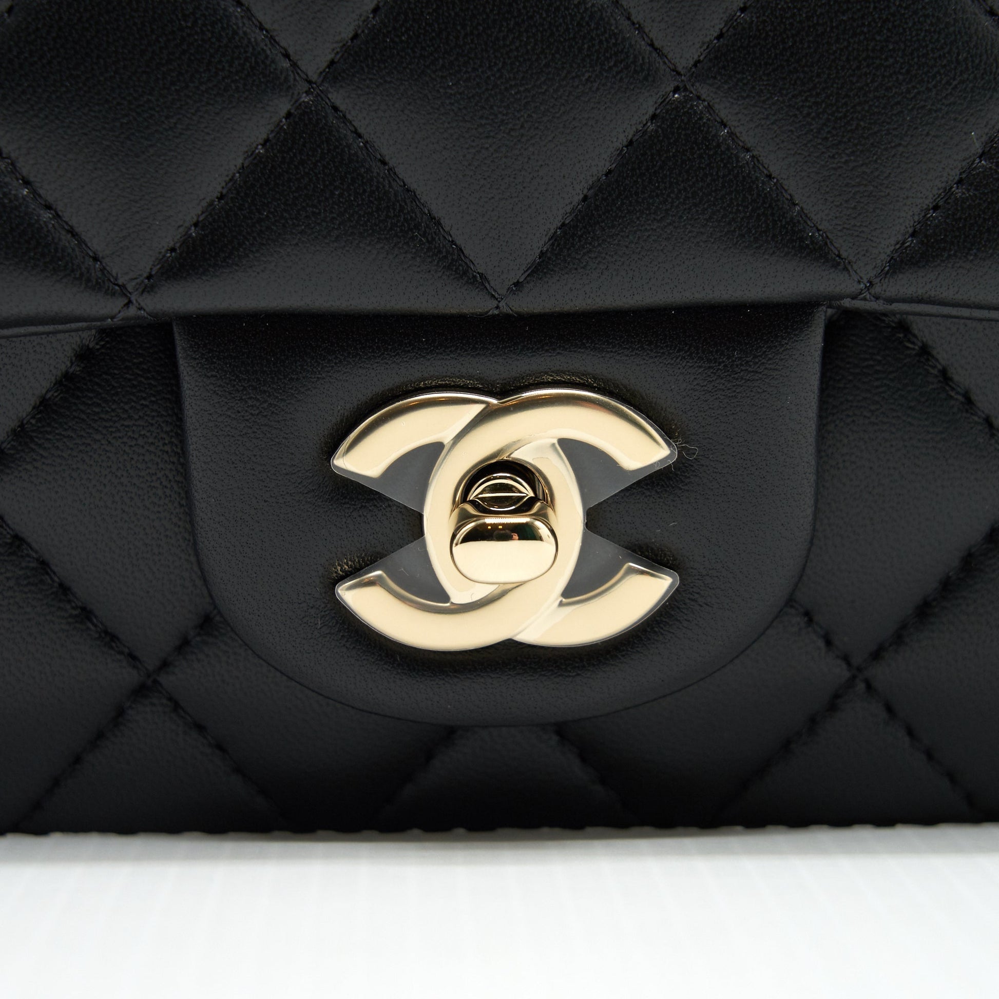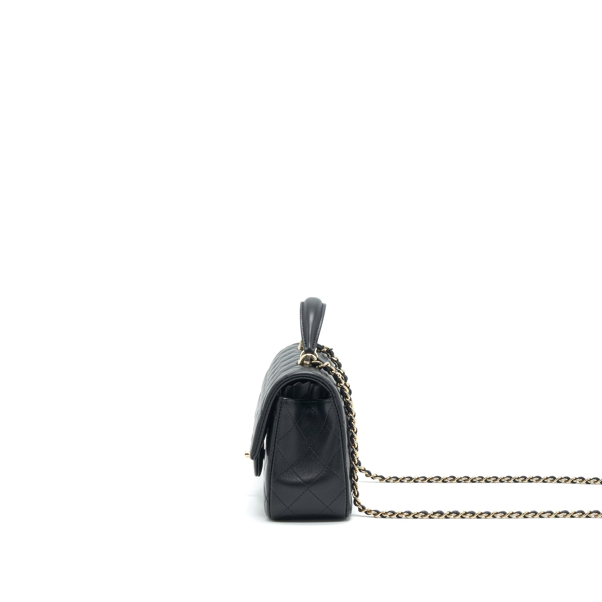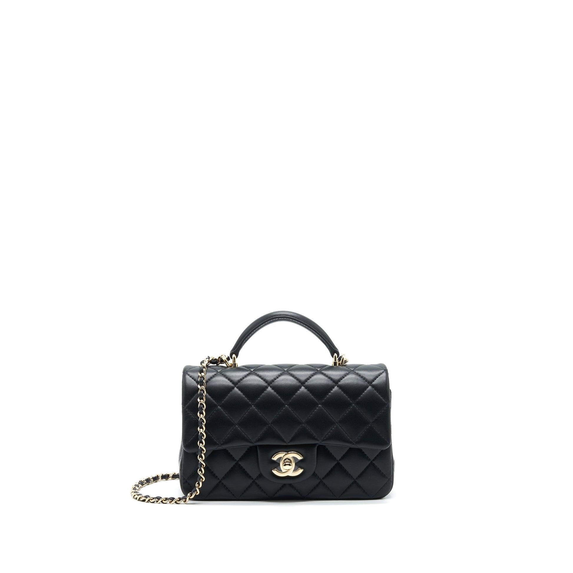 Chanel 21K top handle mini Rectangular flap Bag Black LGHW
