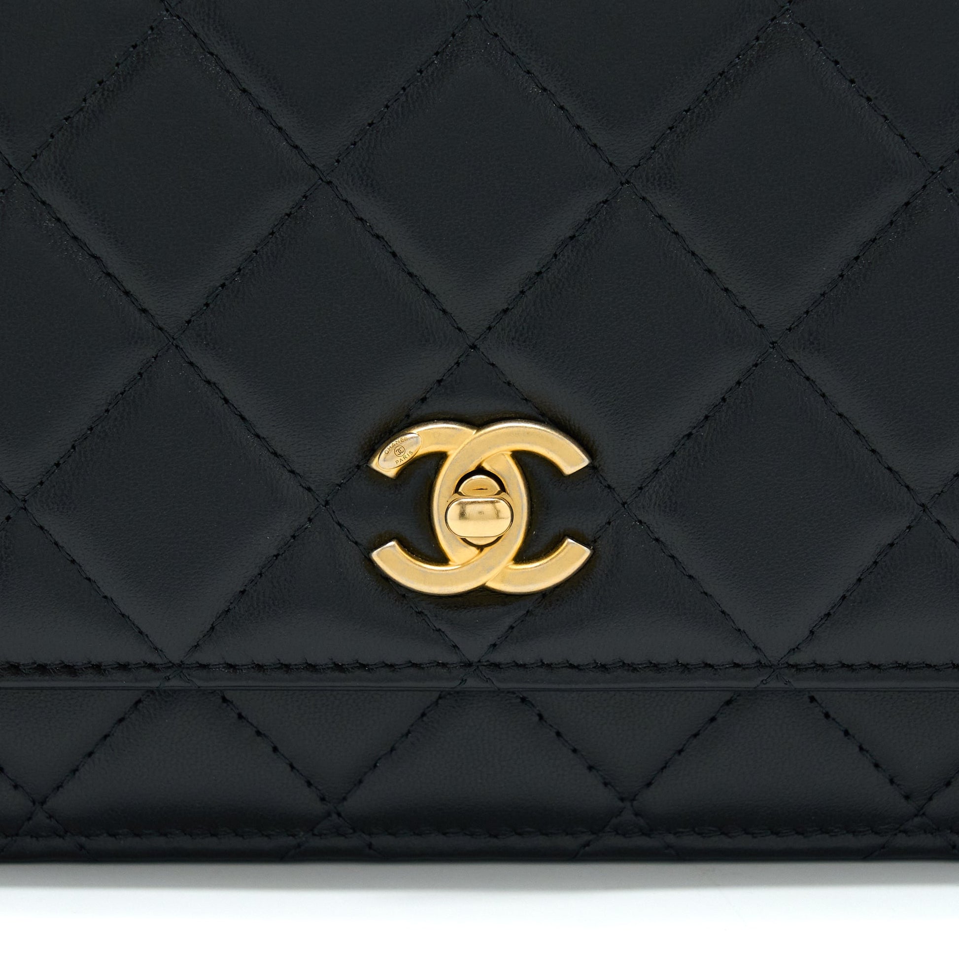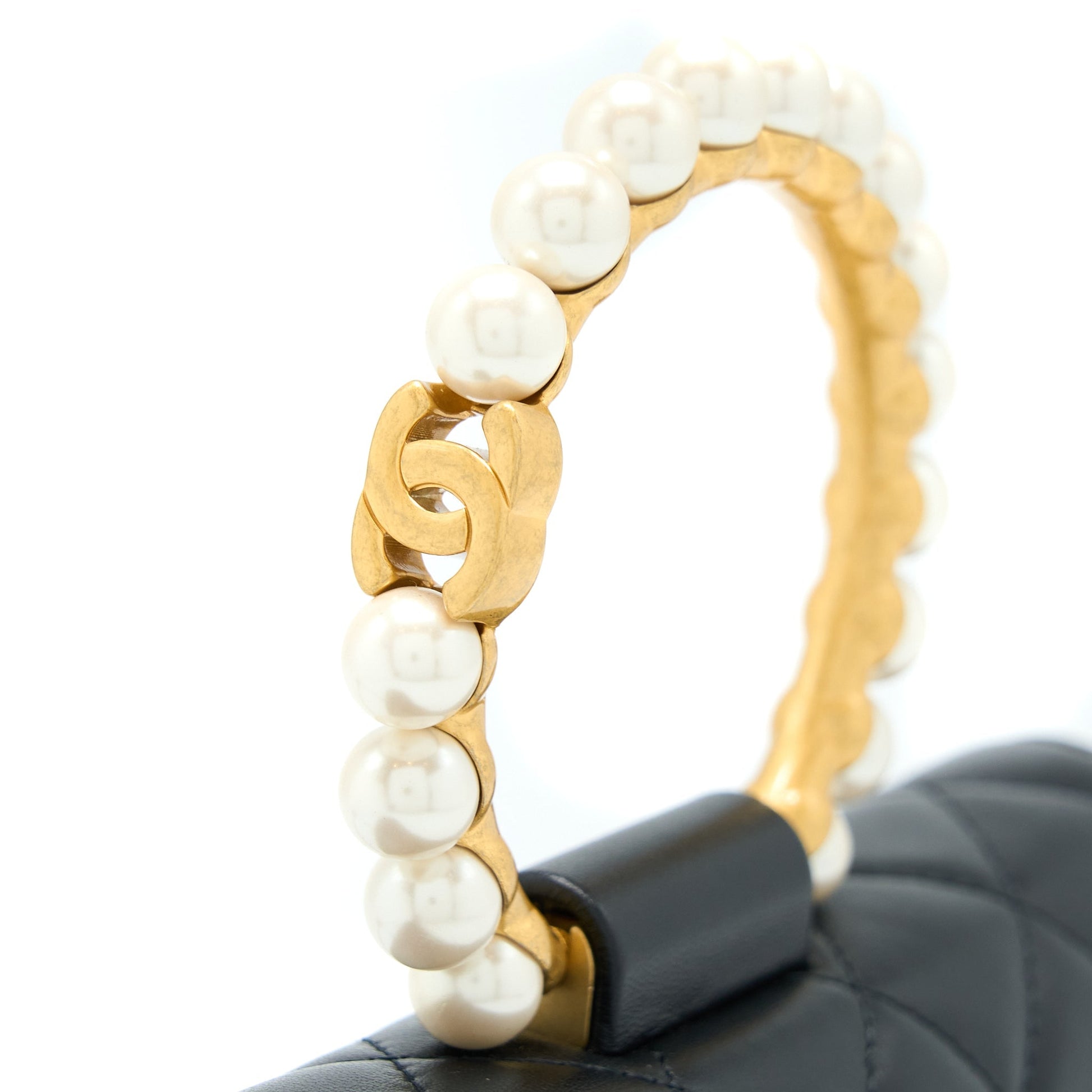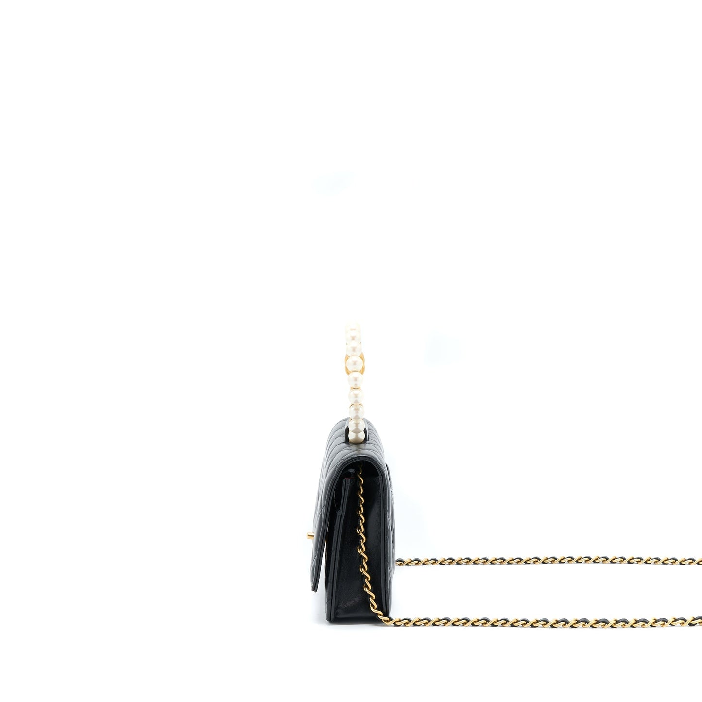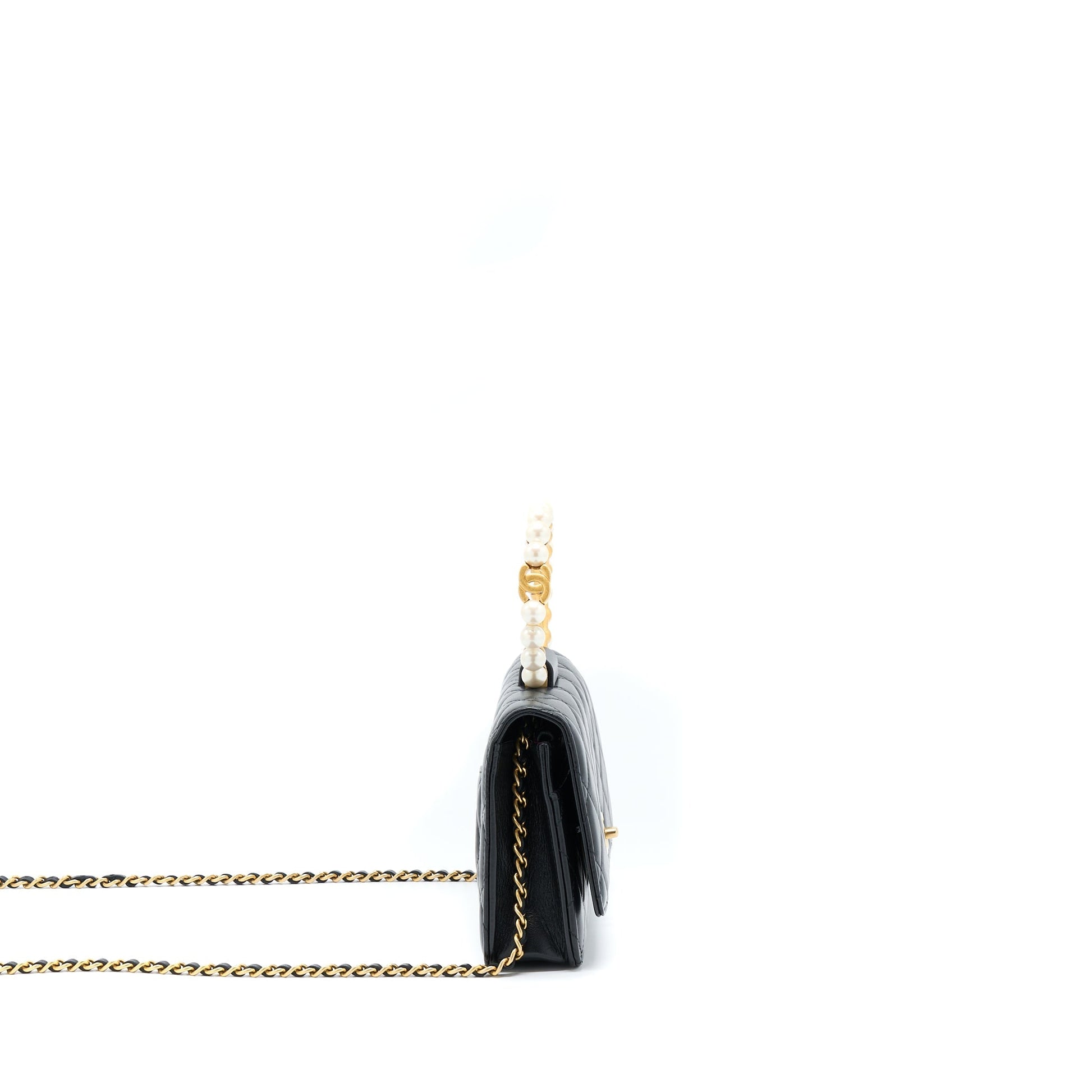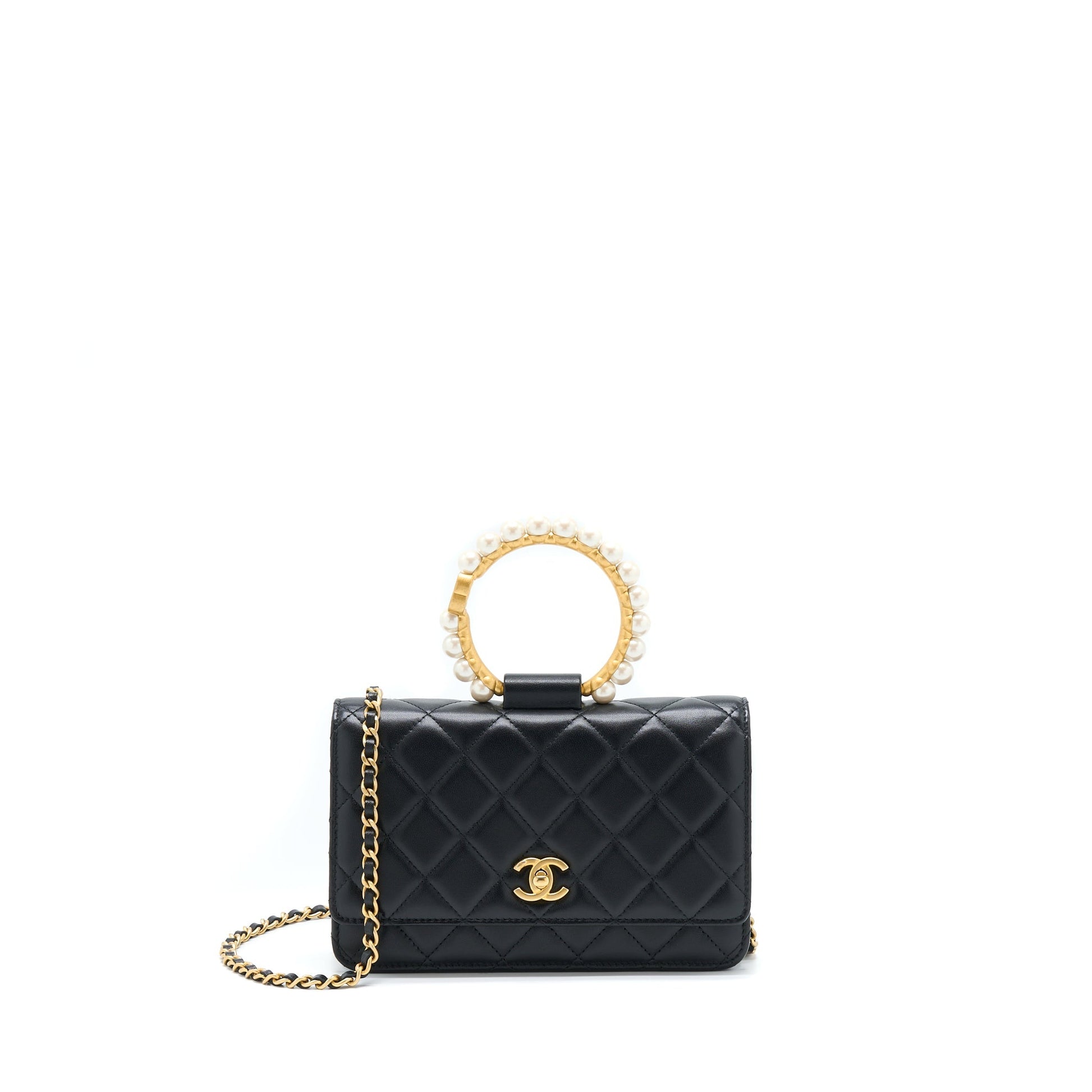 Chanel 21S Wallet On Chain With Pearl/CC logo Round Handle Lambskin Black Brushed GHW