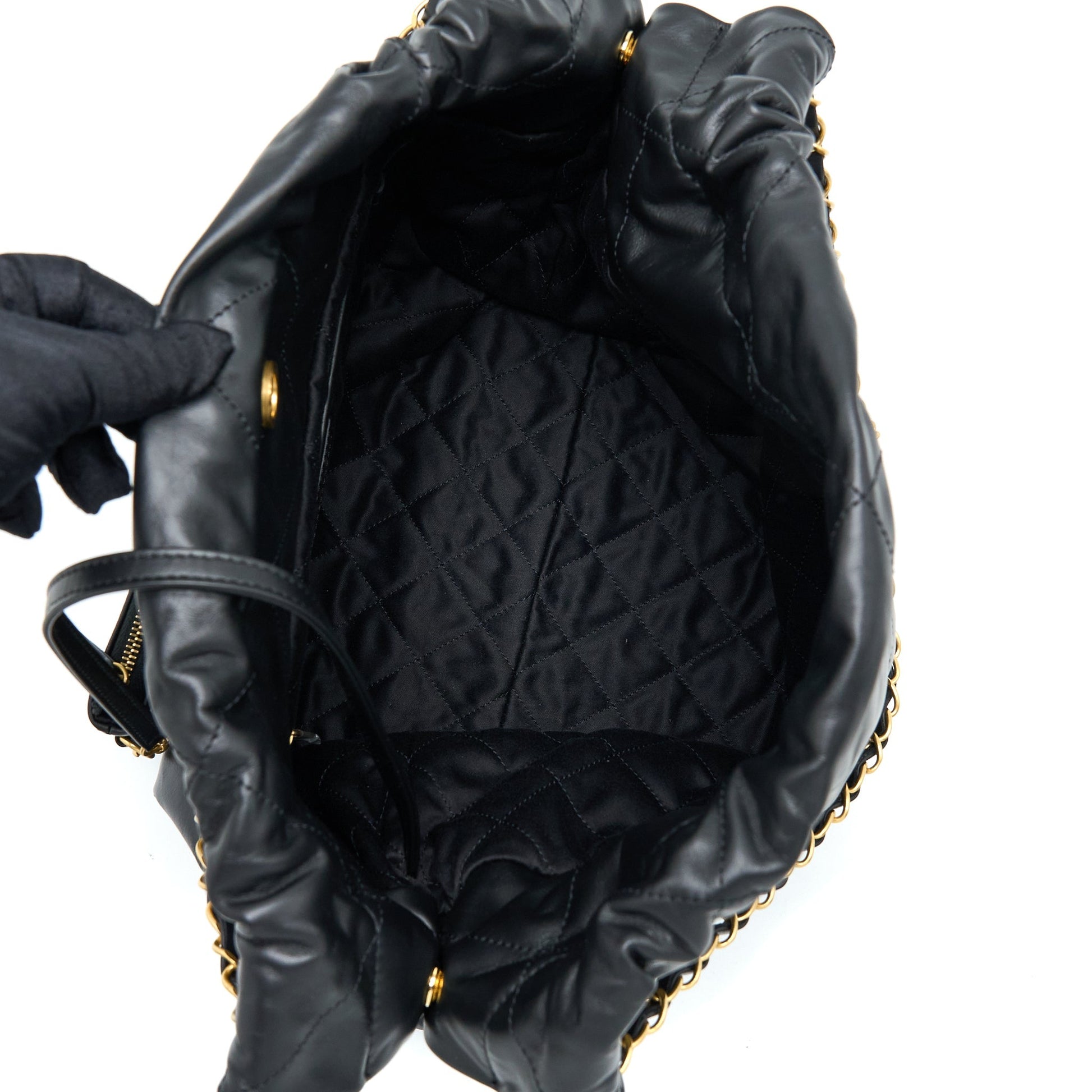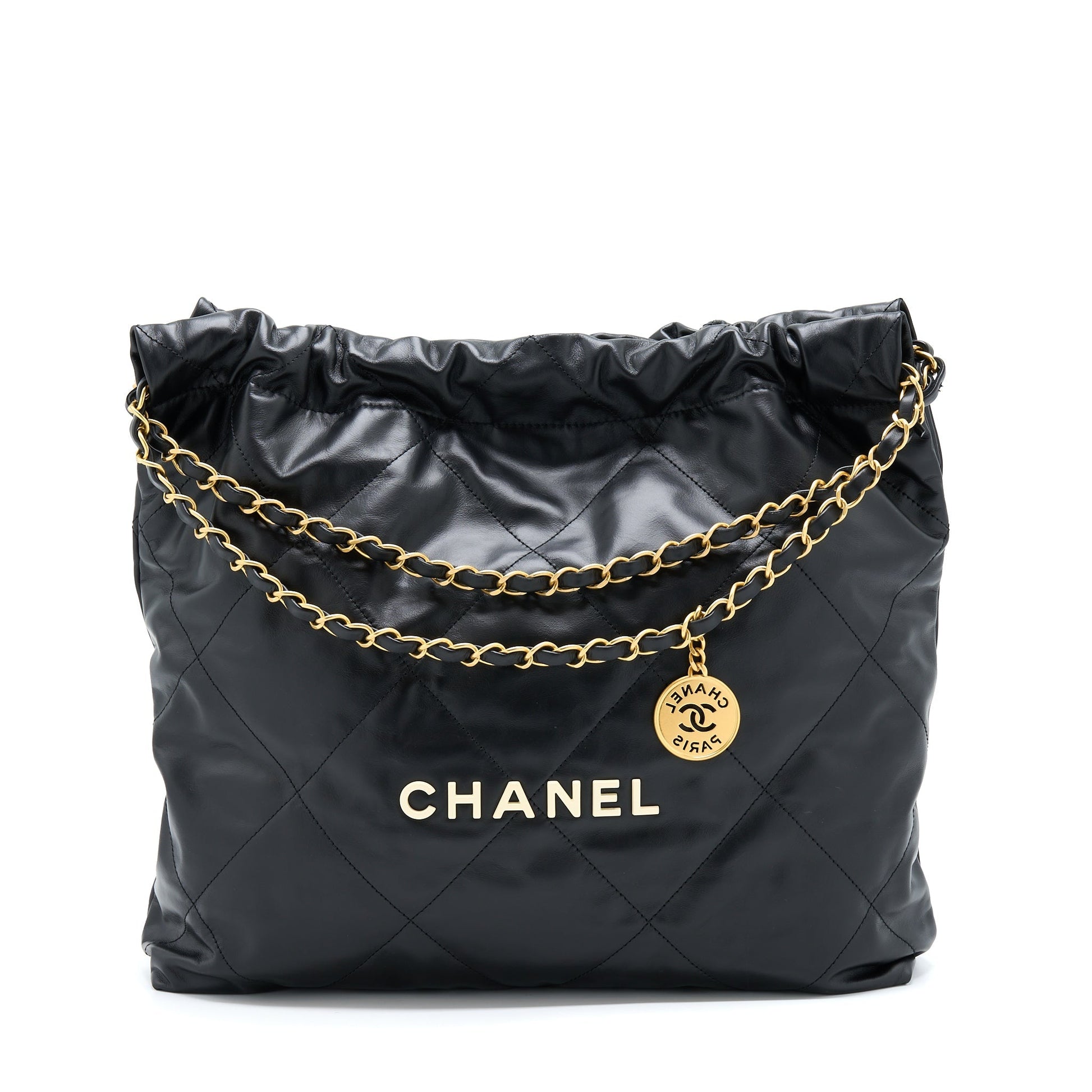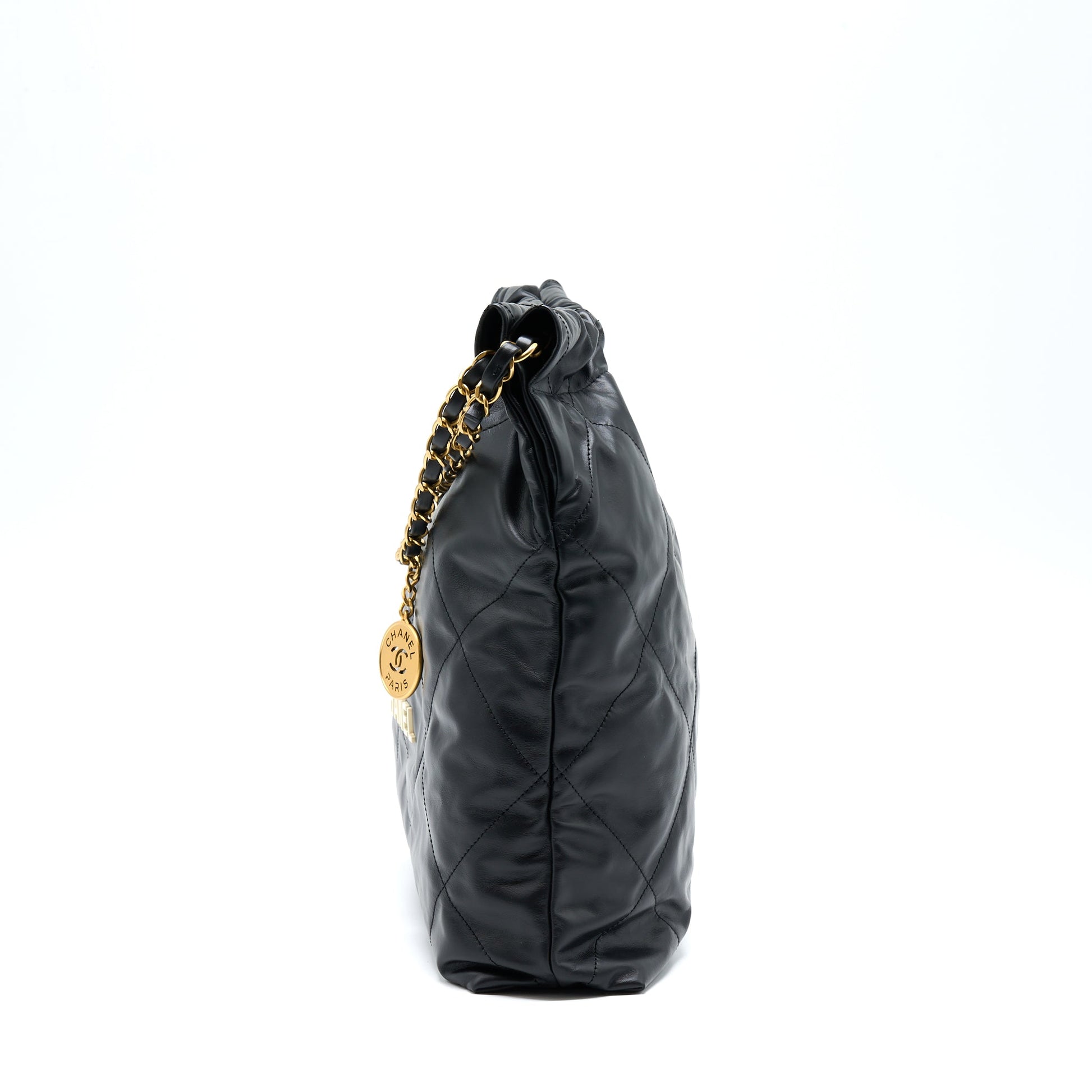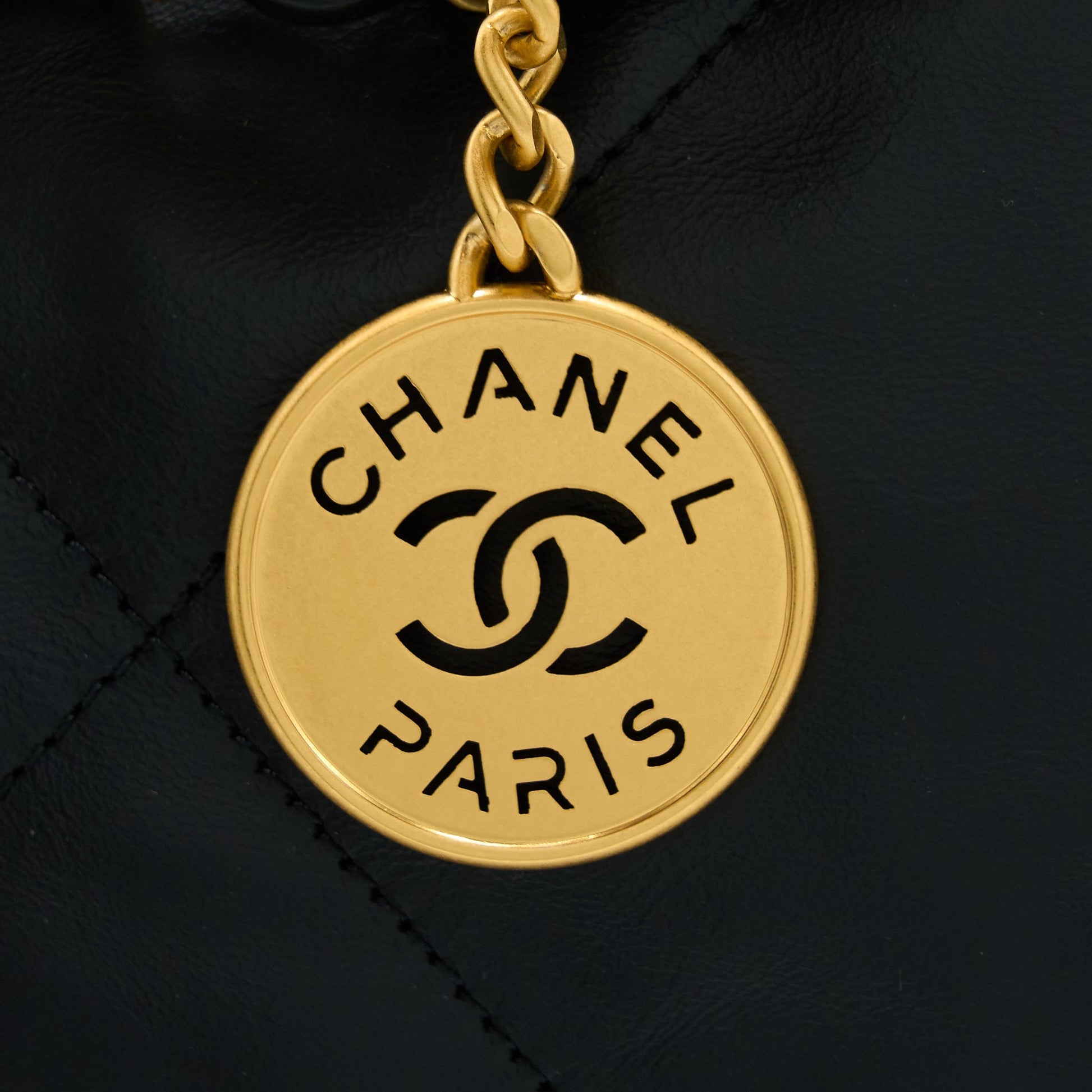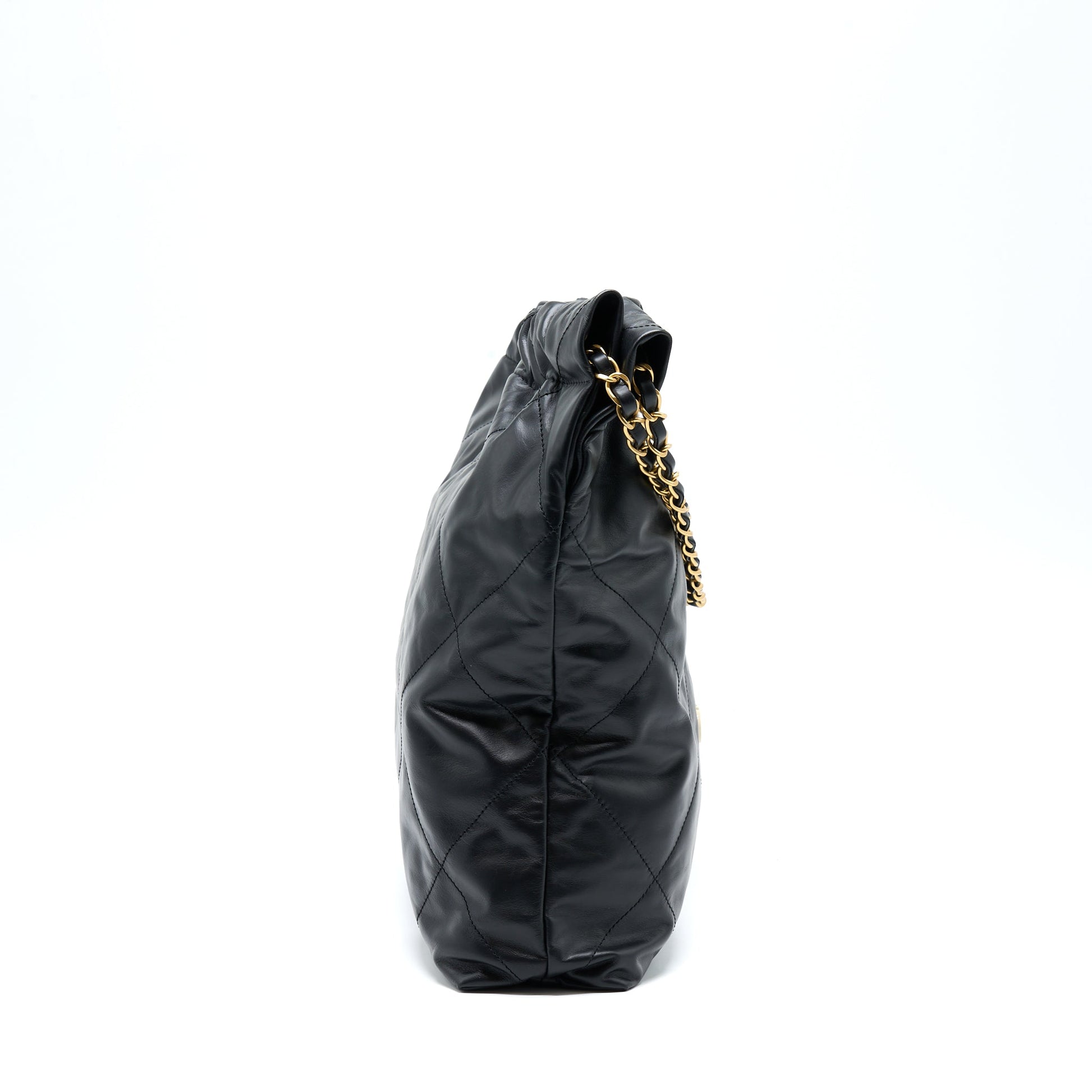 Chanel 22 Bag Medium Shiny Calfskin Black GHW (Microchip)