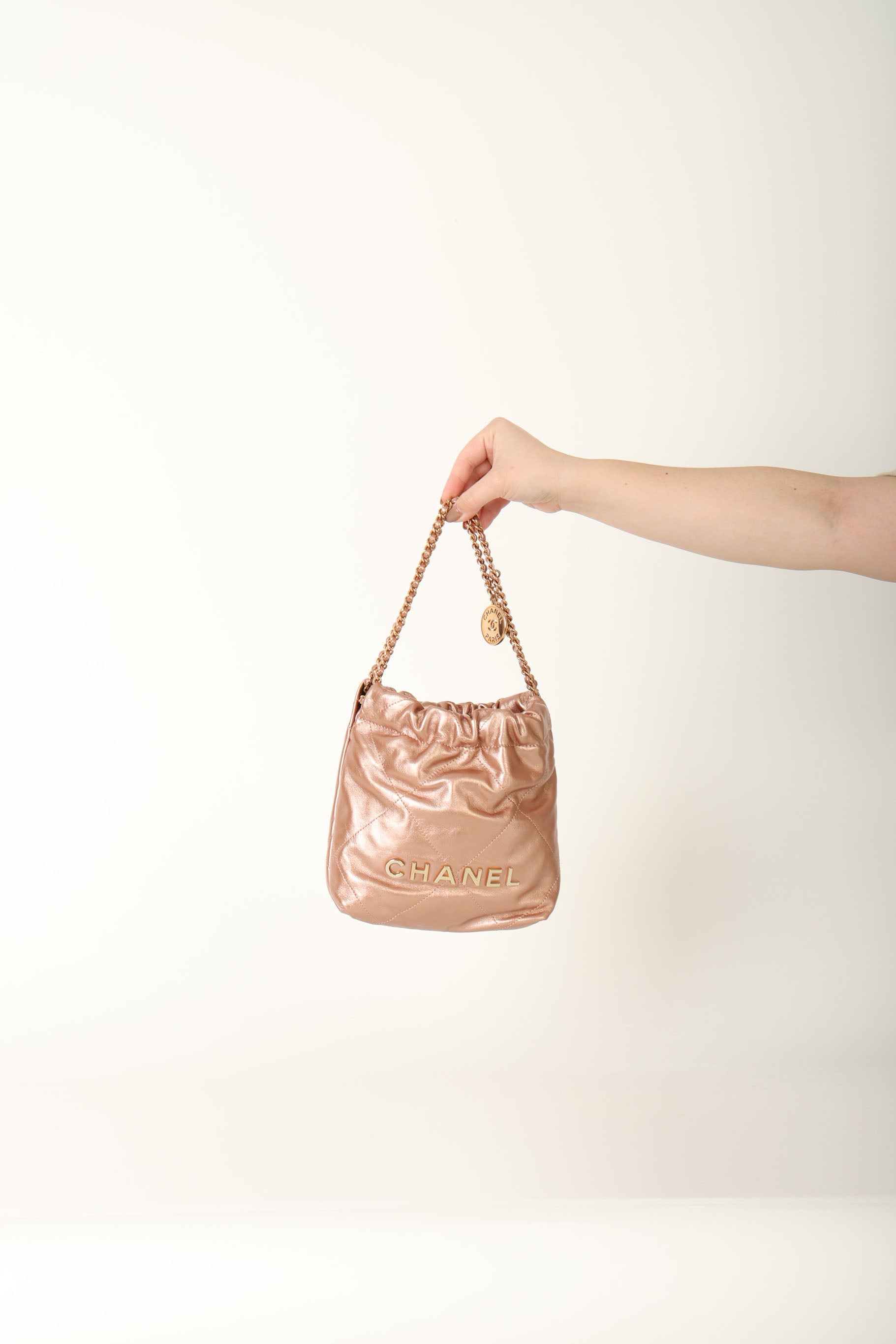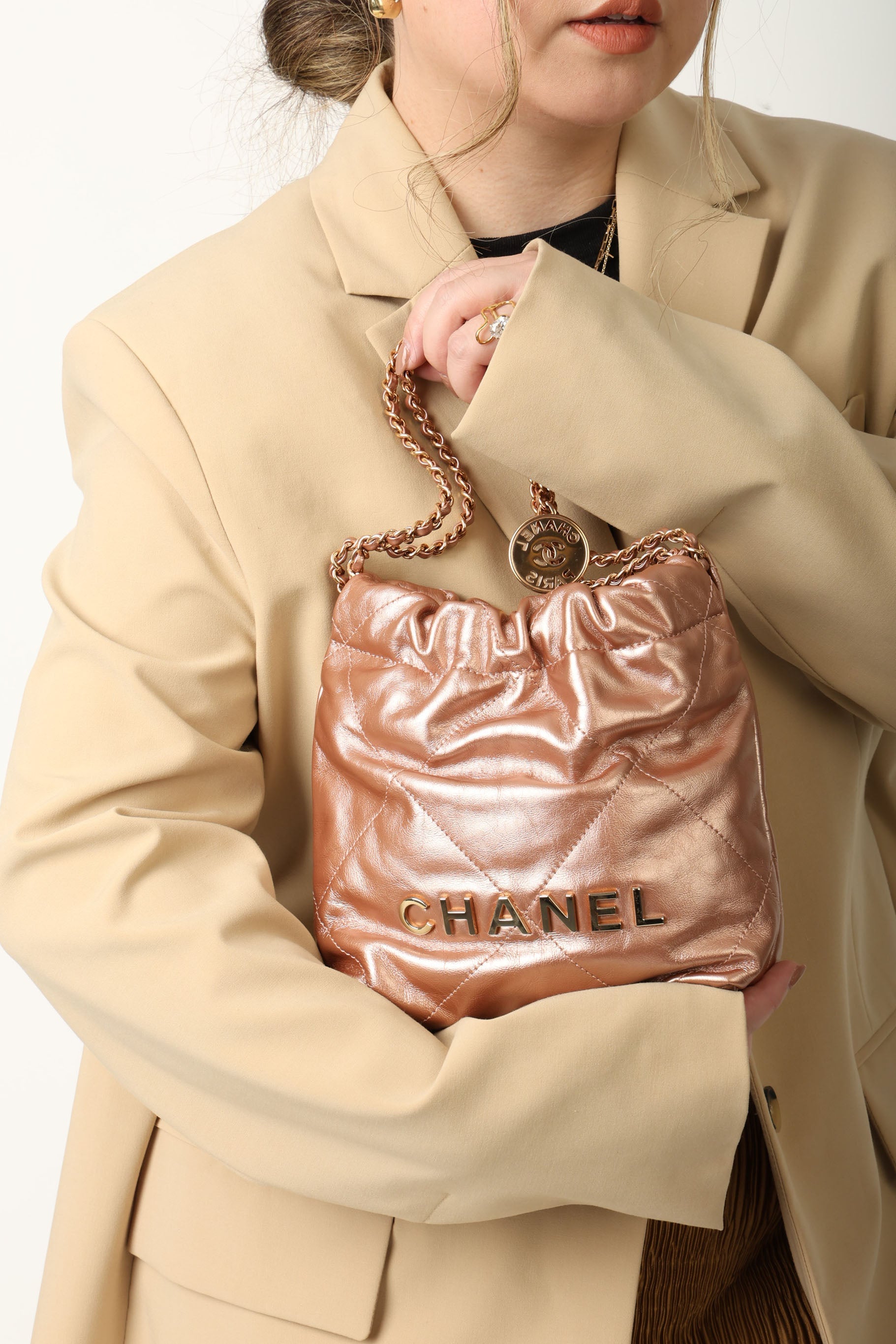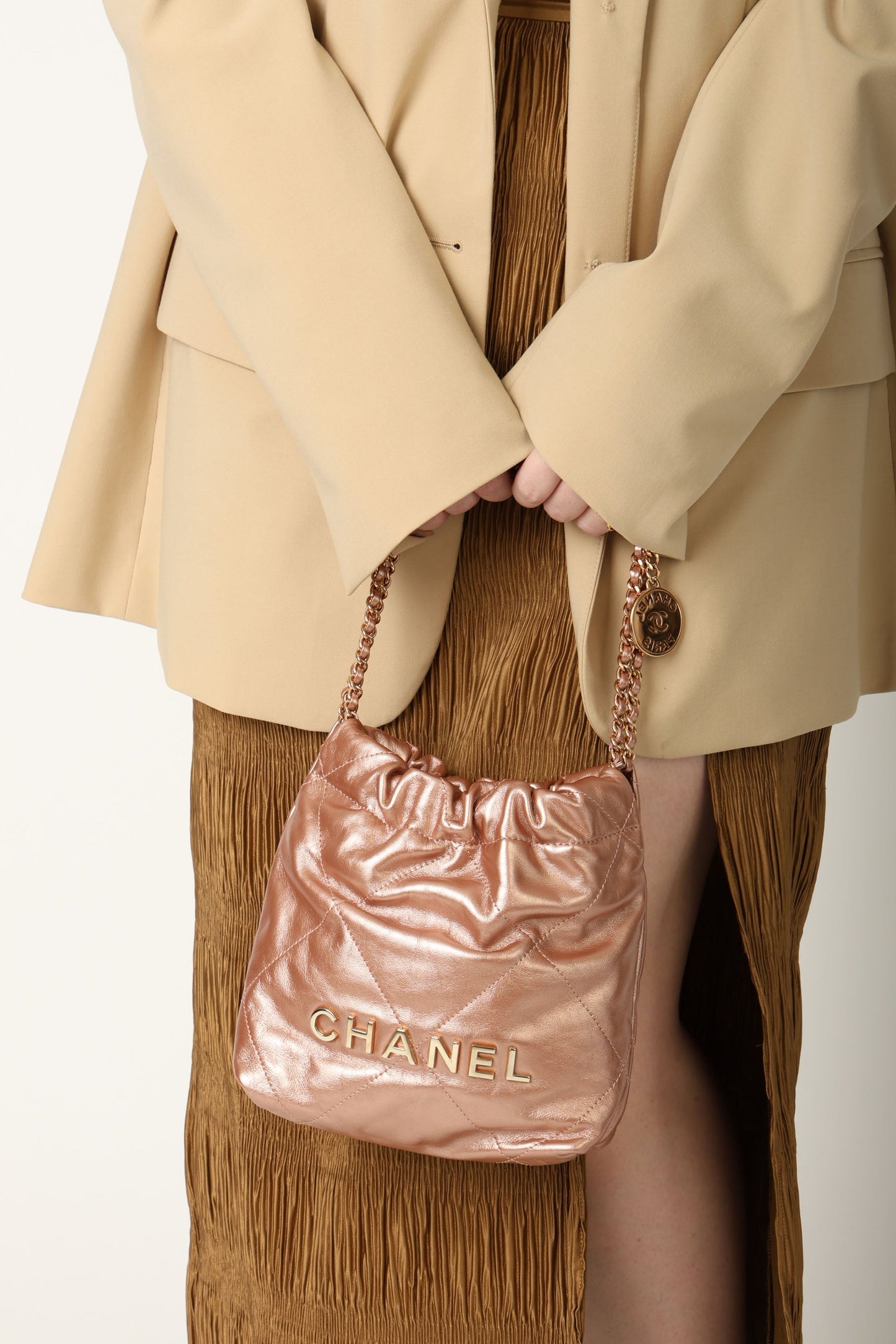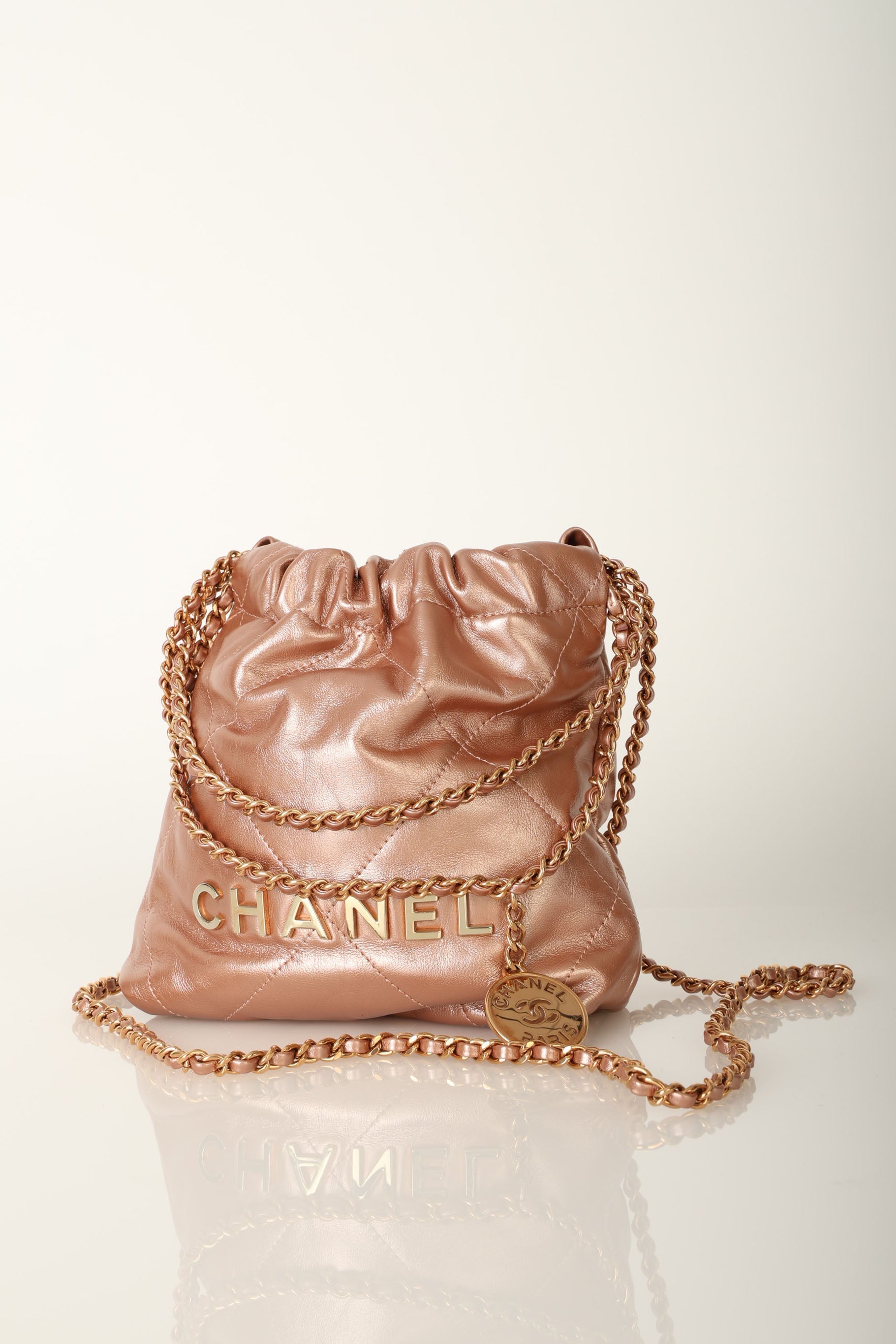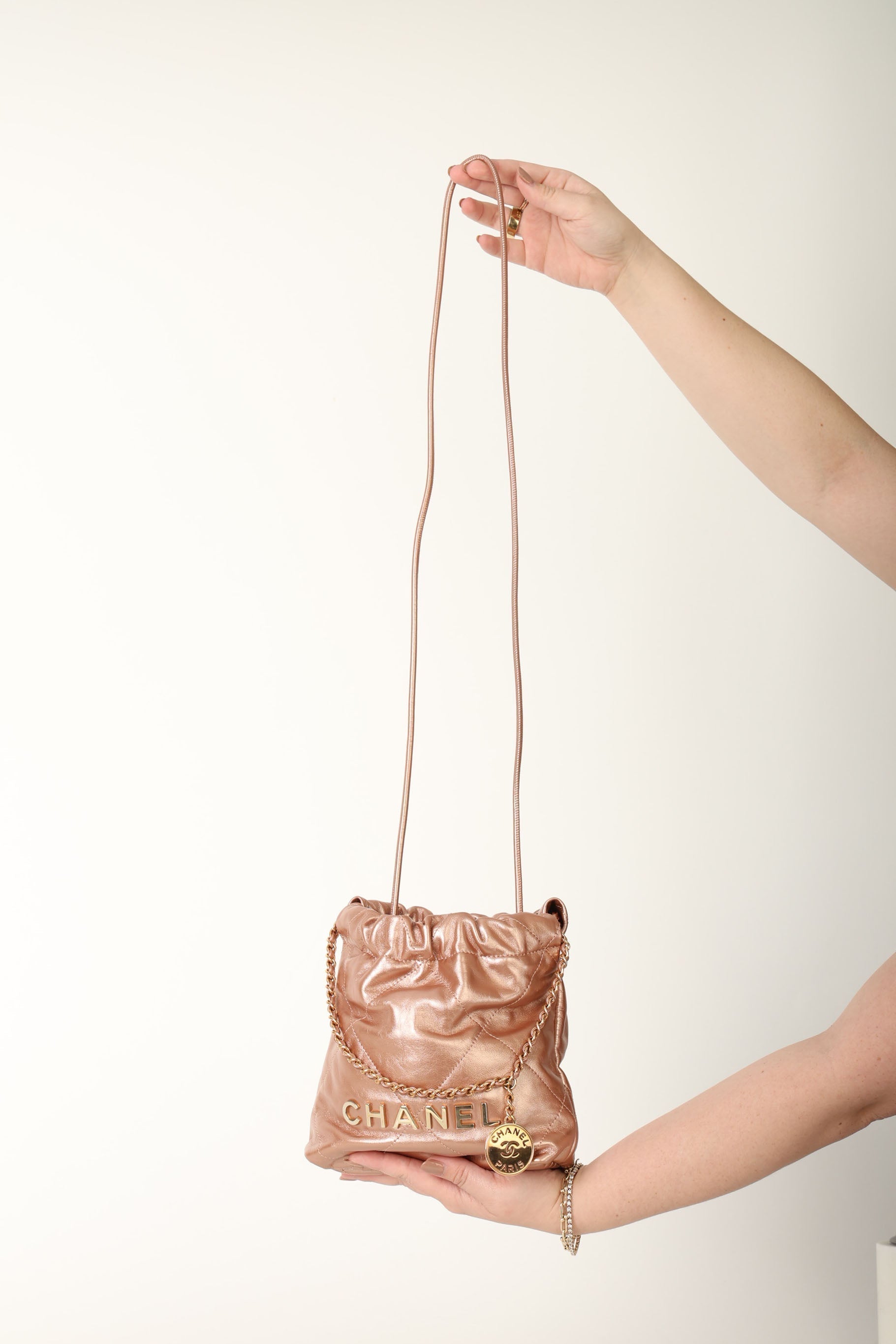 Dropping in the shop is this stunning Chanel Mini 22, but in a gorgeous rose gold color! This bag is the perfect bag for any collector who wants a newer piece in their collection to use as a great everyday bag! You can also tuck in the long chain to make into a chic top handle bag!