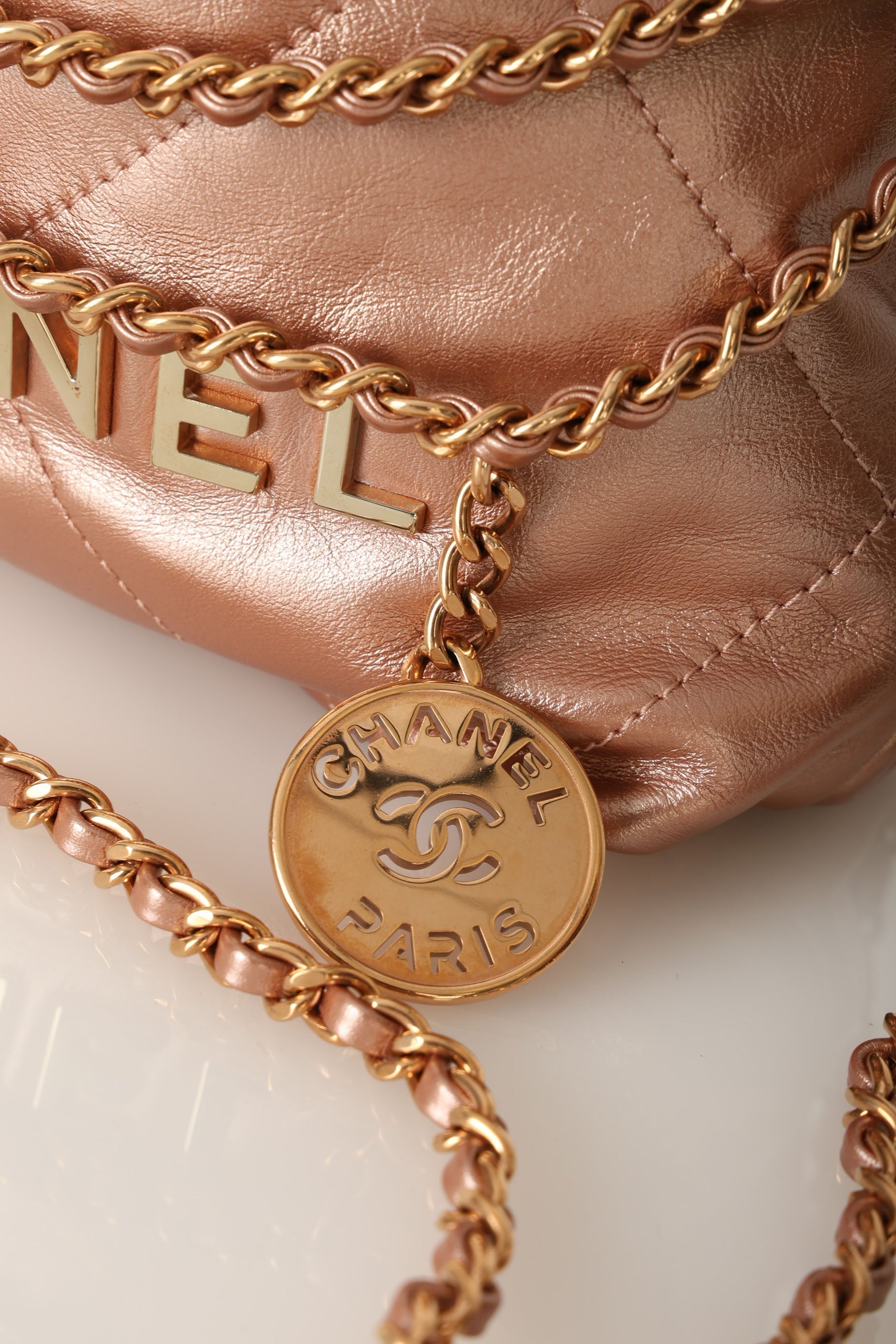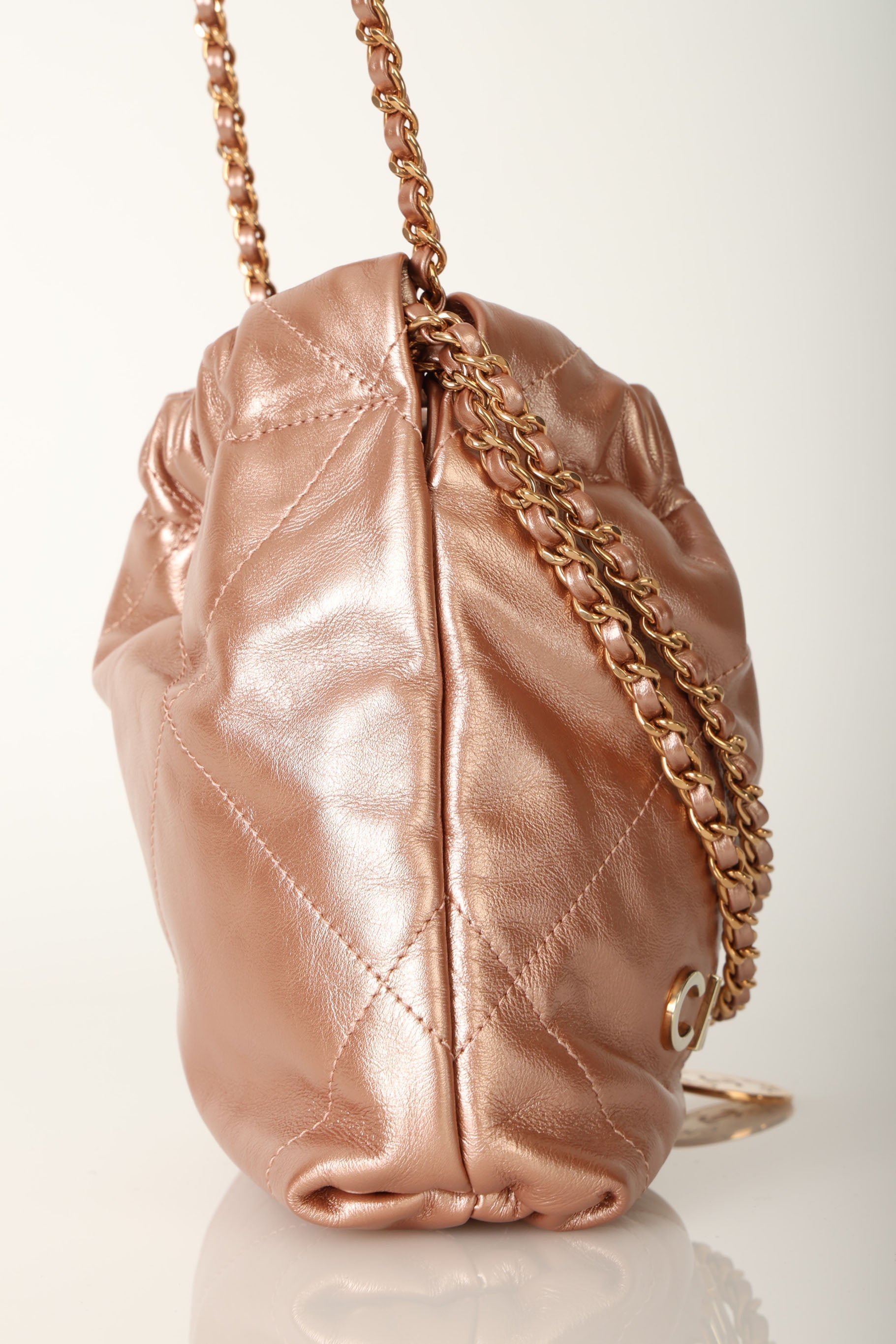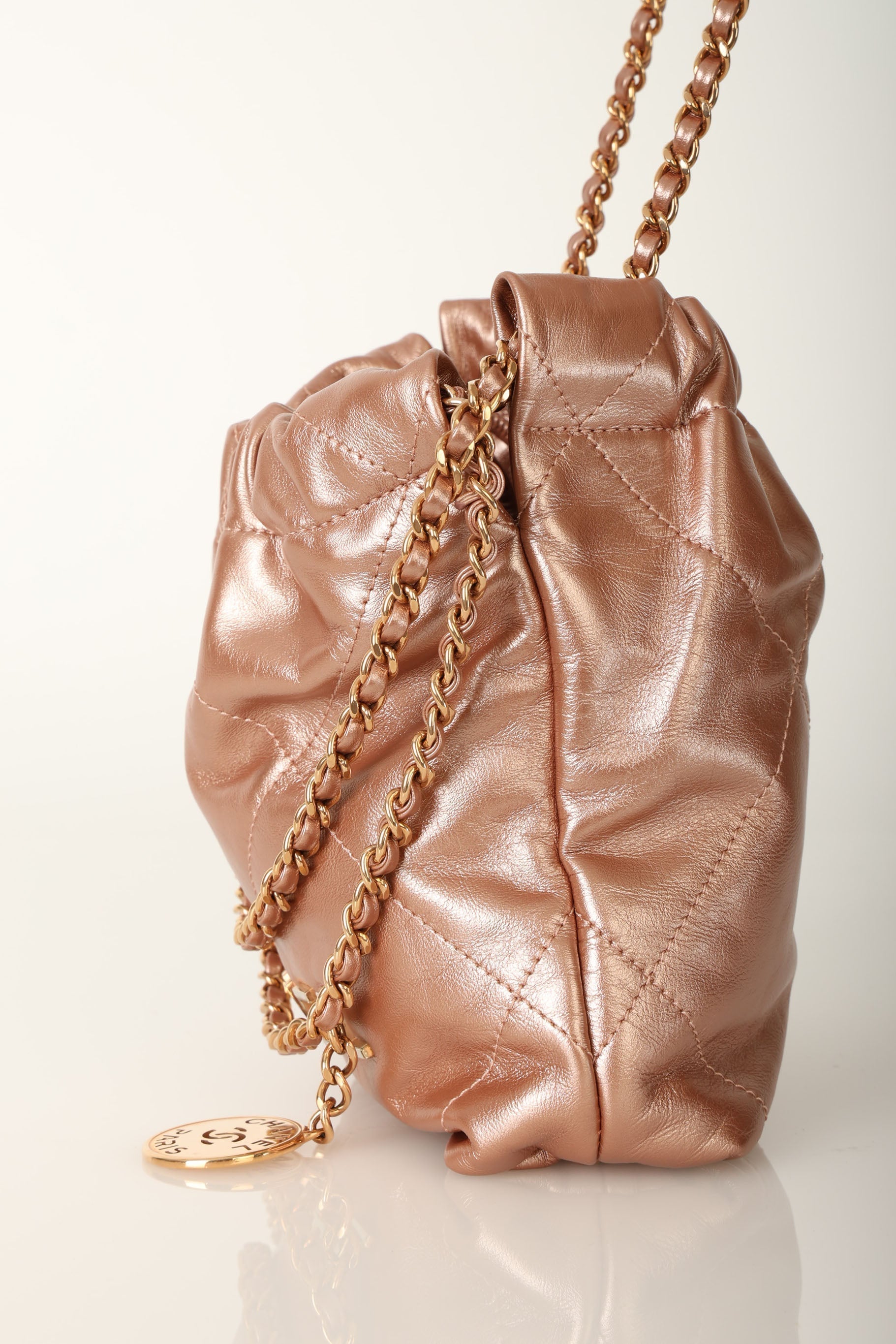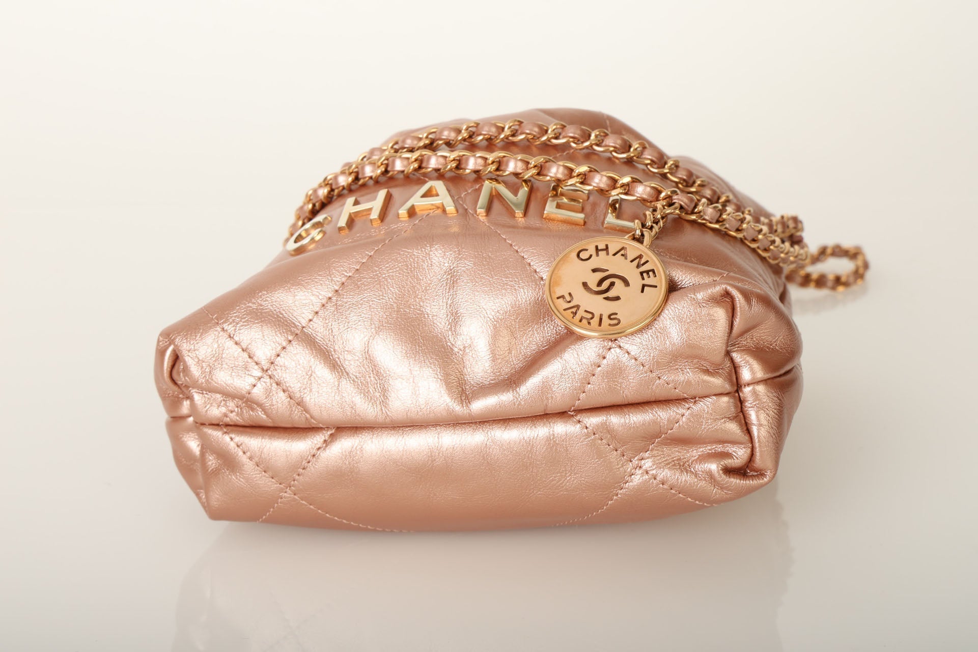 Dropping in the shop is this stunning Chanel Mini 22, but in a gorgeous rose gold color! This bag is the perfect bag for any collector who wants a newer piece in their collection to use as a great everyday bag! You can also tuck in the long chain to make into a chic top handle bag!