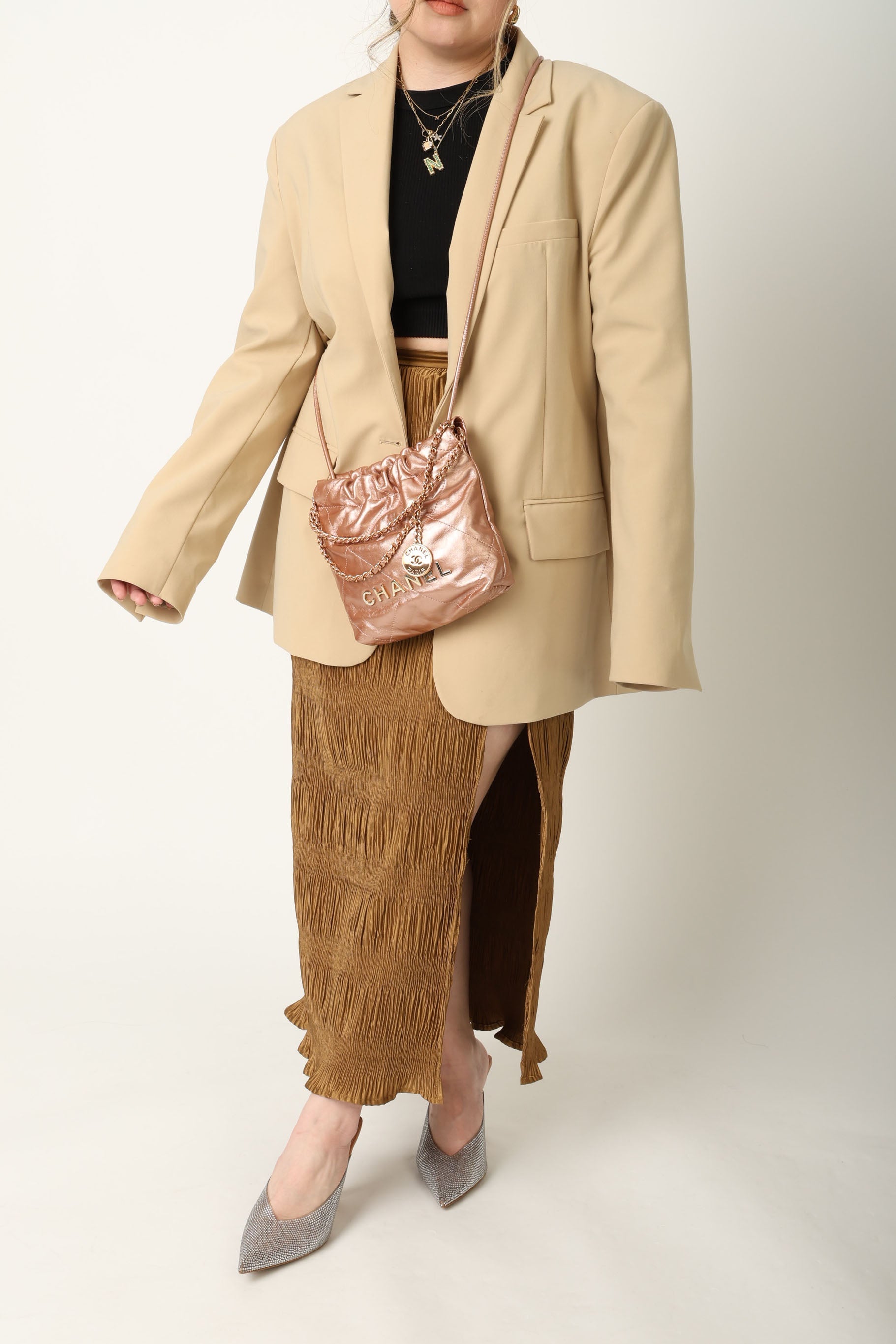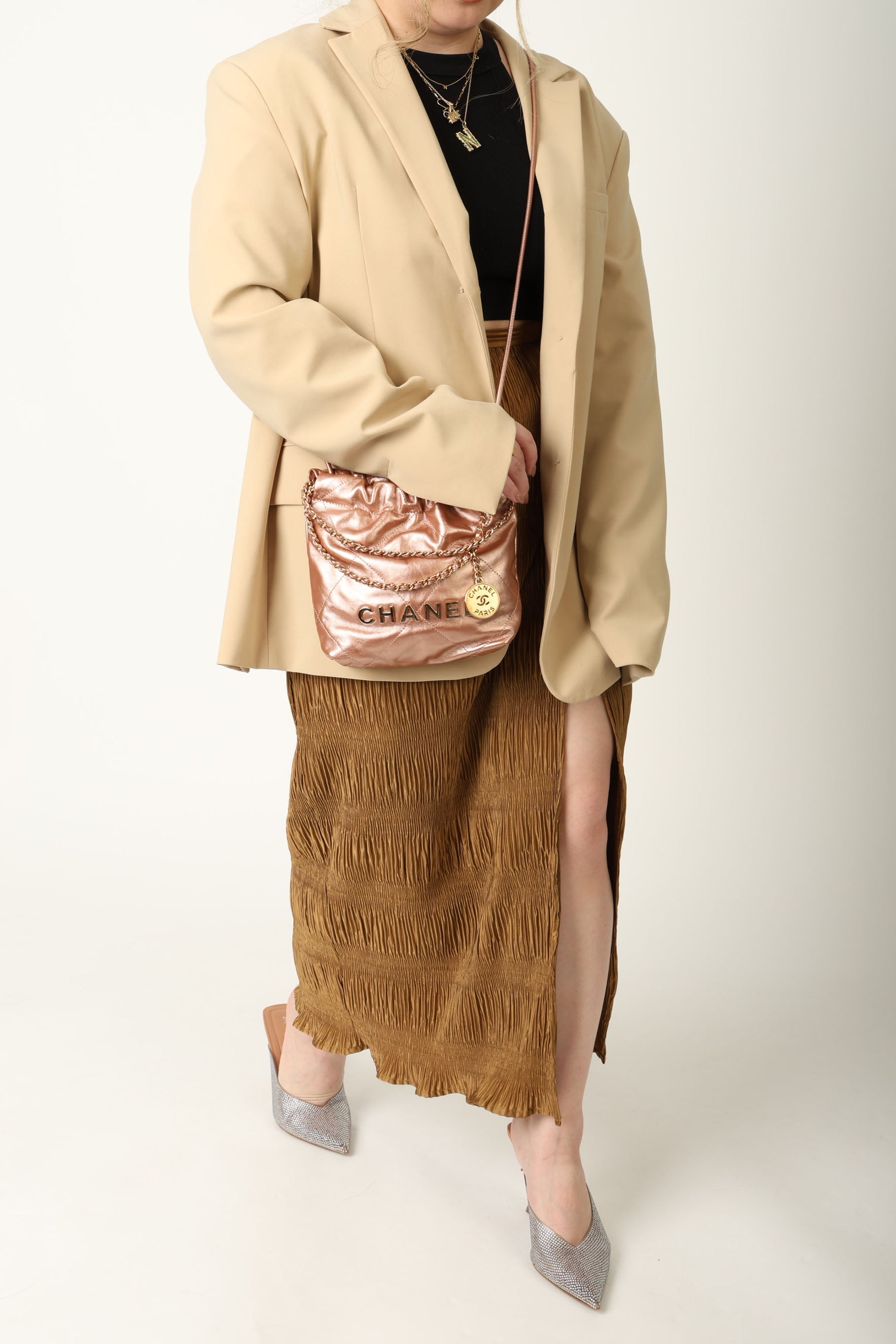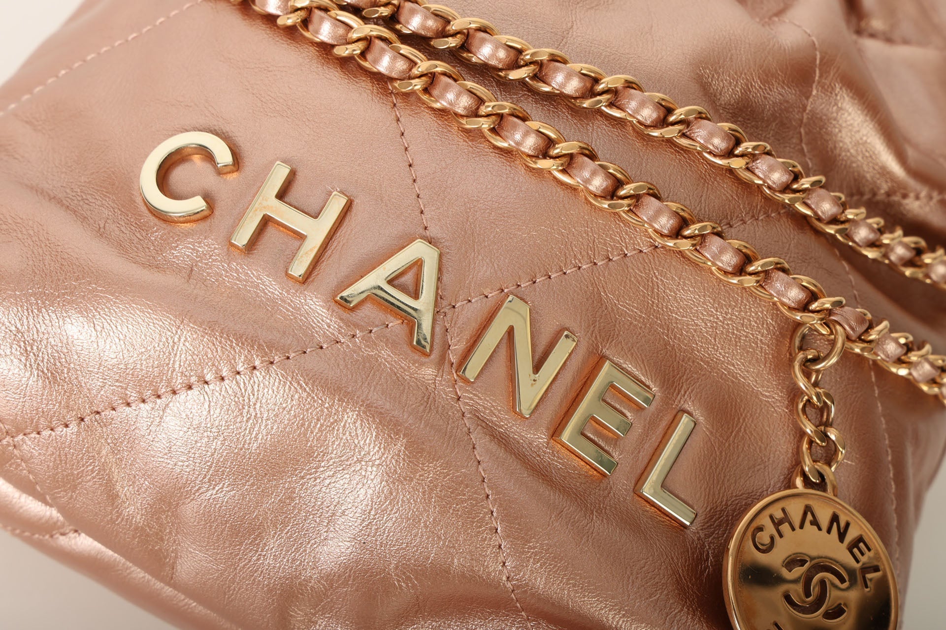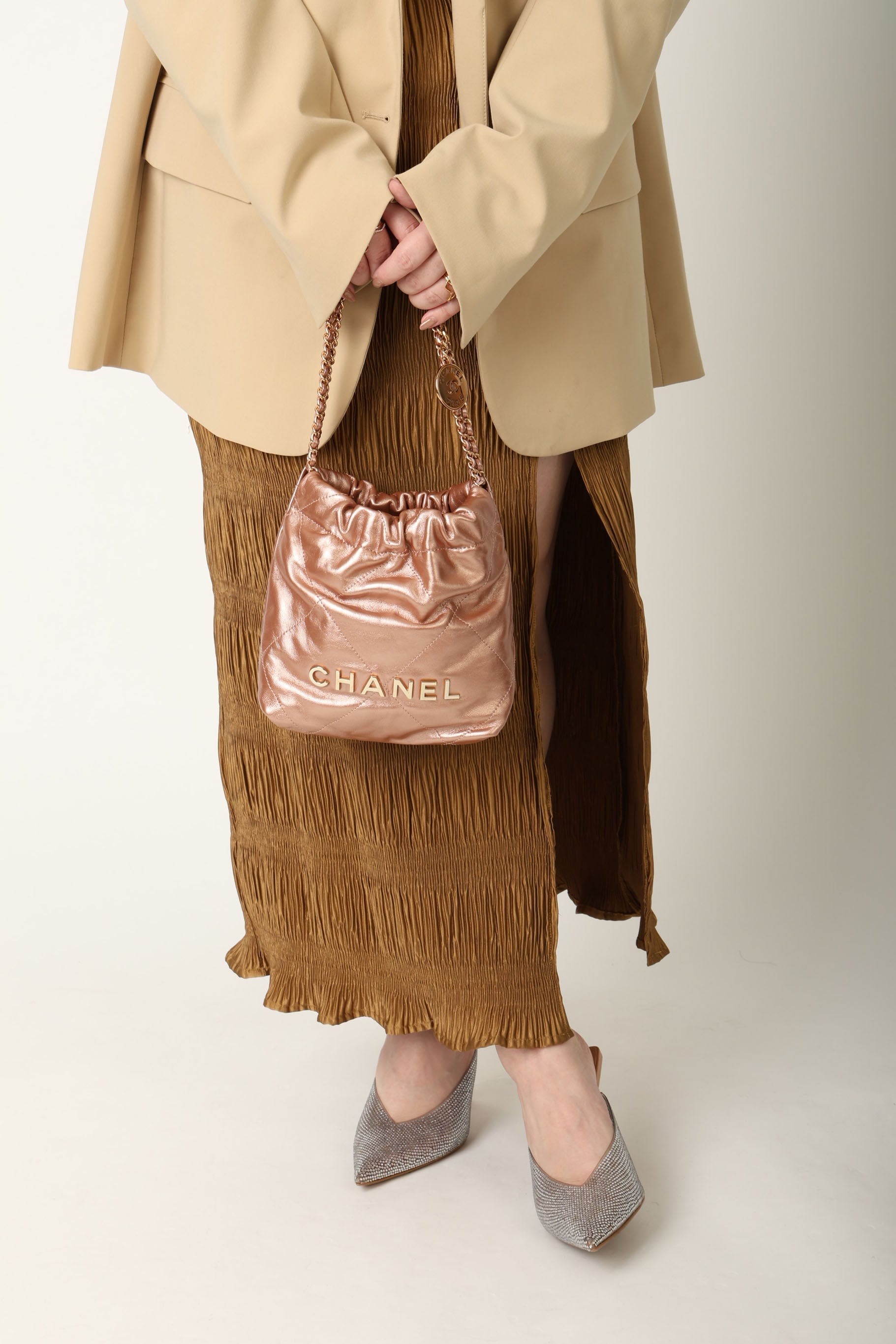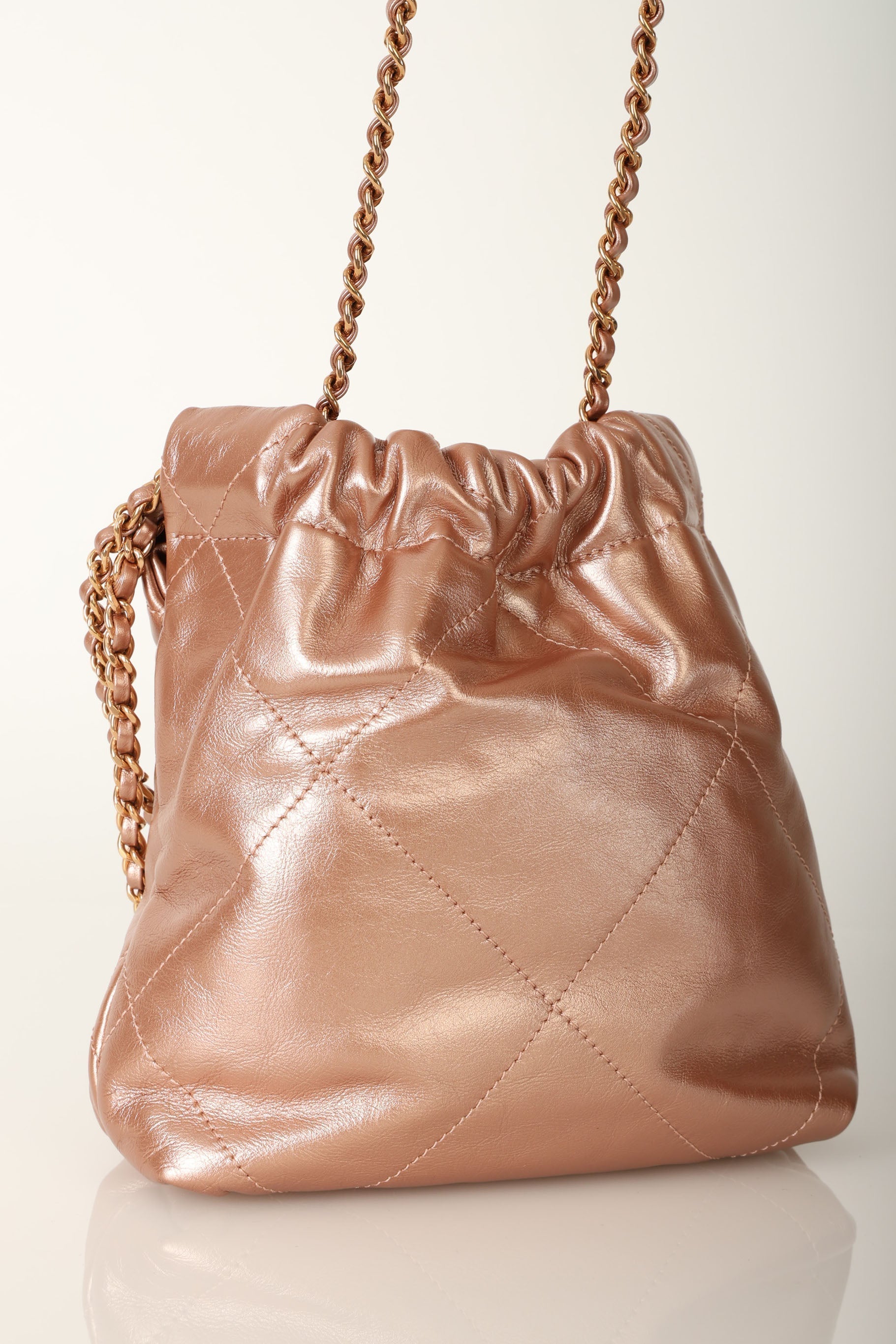 Dropping in the shop is this stunning Chanel Mini 22, but in a gorgeous rose gold color! This bag is the perfect bag for any collector who wants a newer piece in their collection to use as a great everyday bag! You can also tuck in the long chain to make into a chic top handle bag!