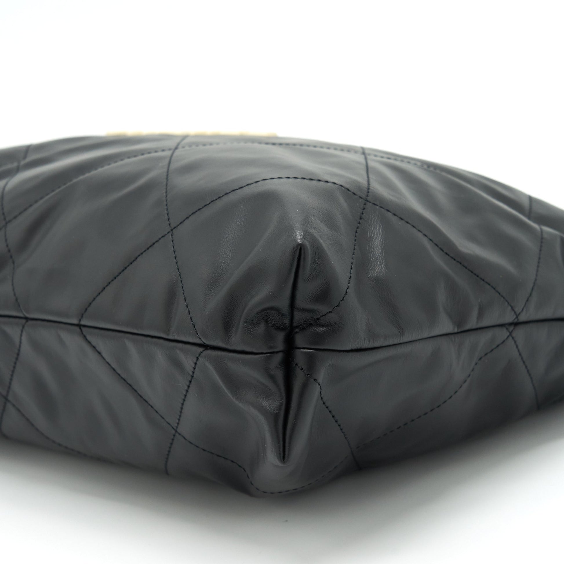 Chanel 22 Handbag Shiny Calfskin Black GHW (Microchip)