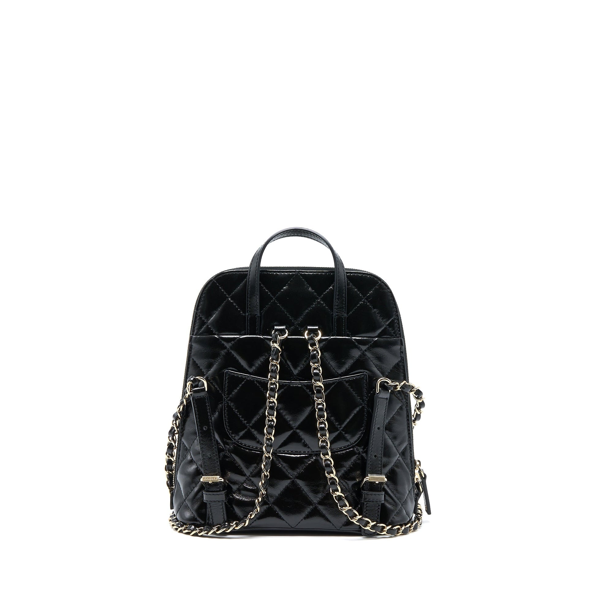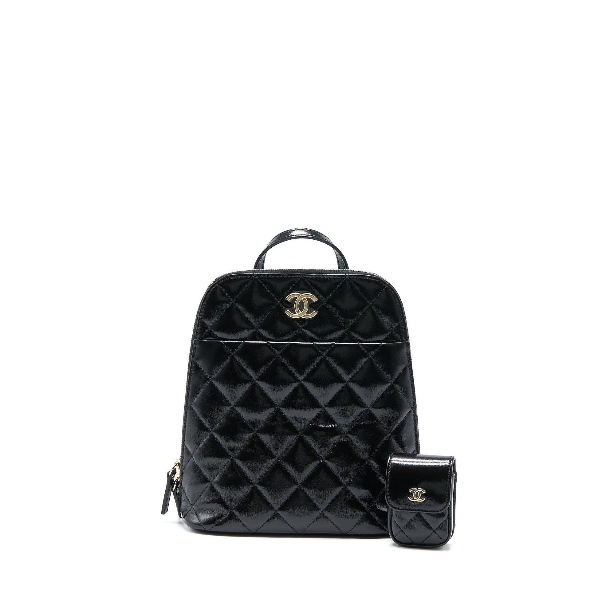 Chanel 22A Backpack Patent Black LGHW (Microchip)