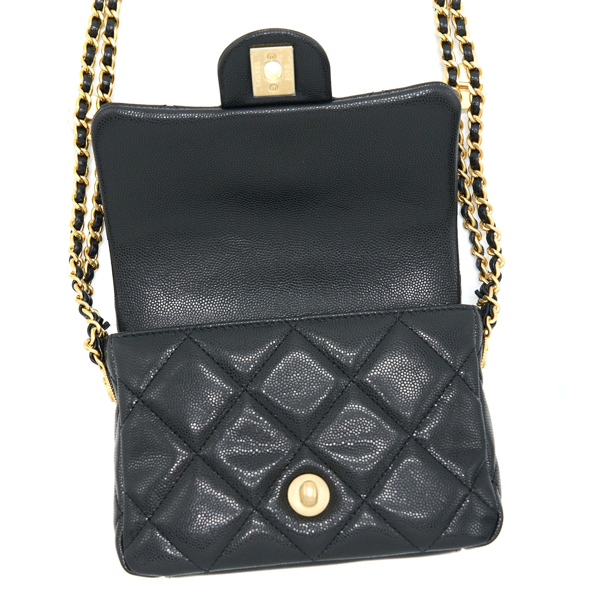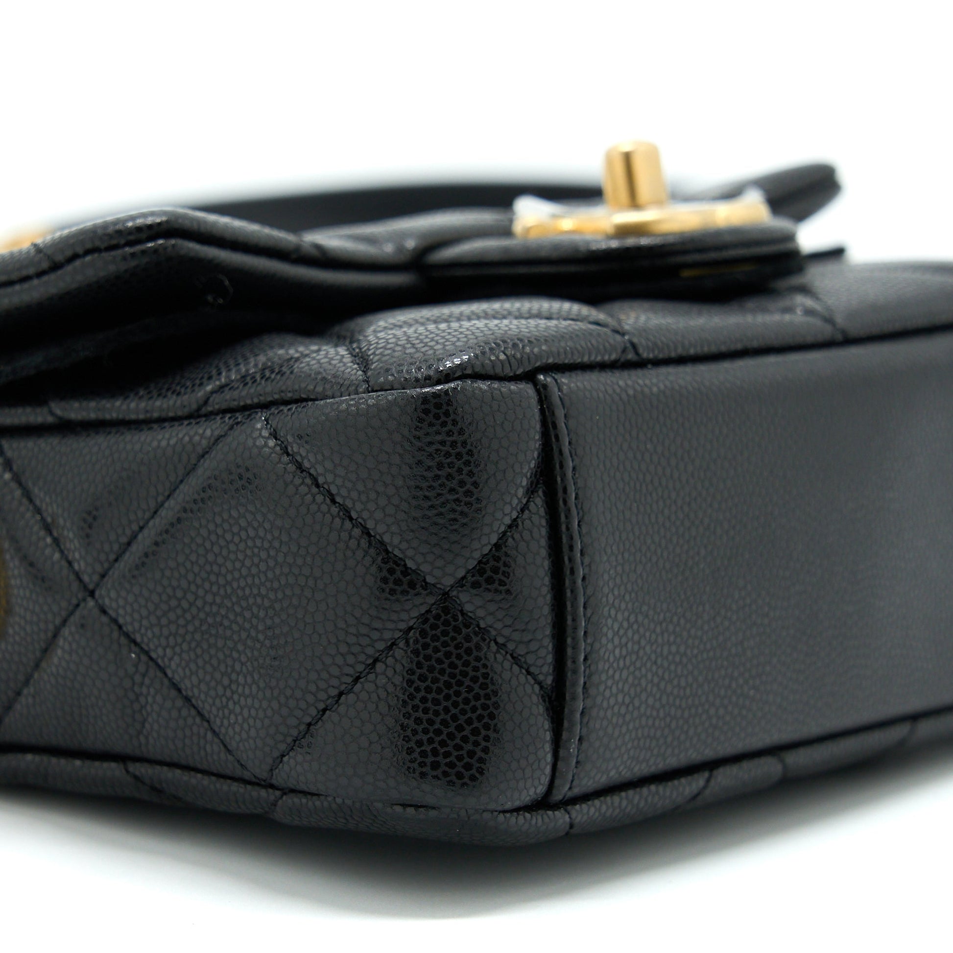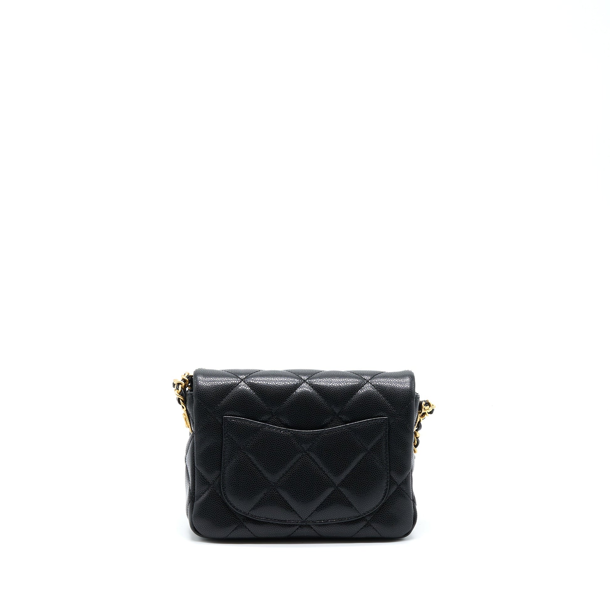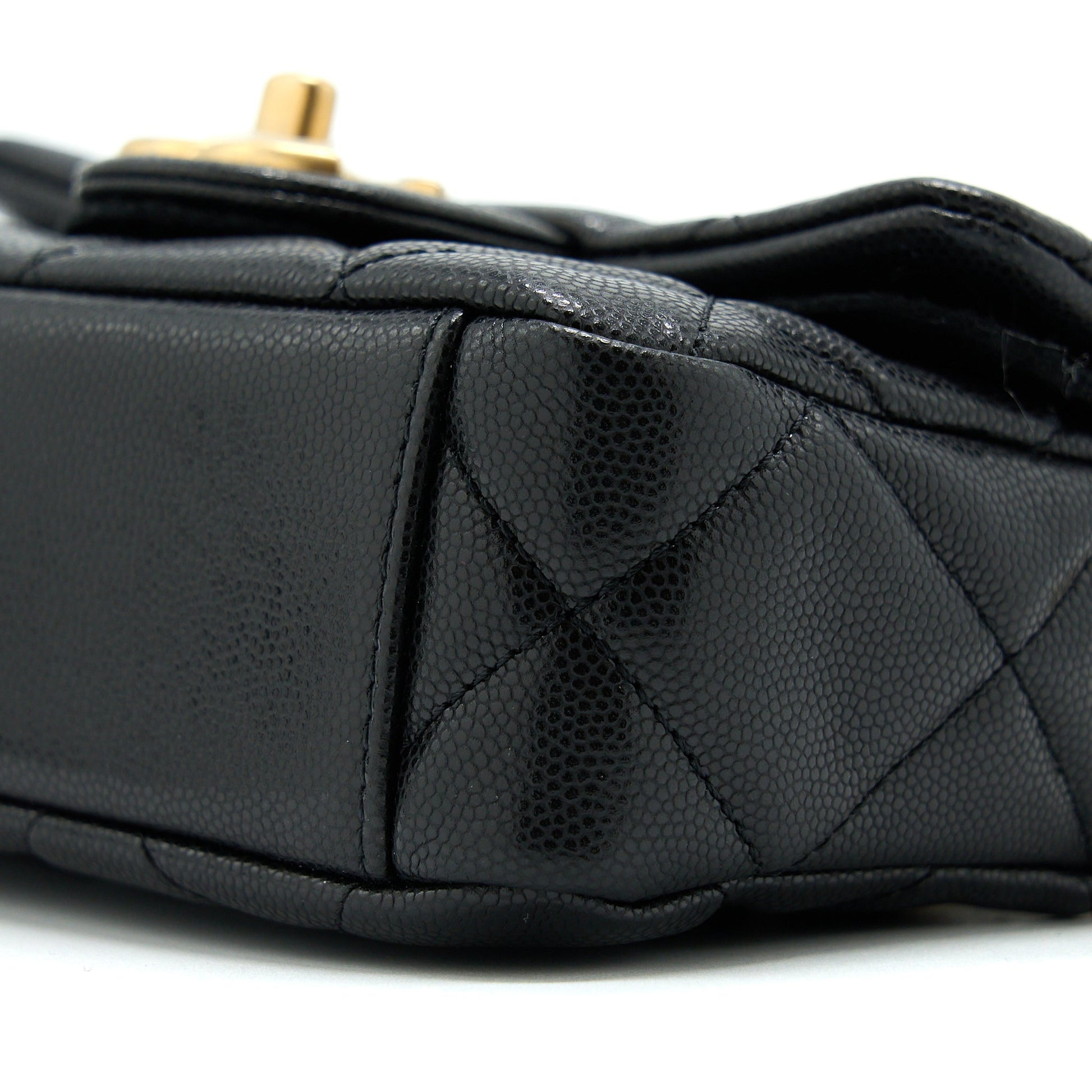 Chanel 22A Mini Square Flap Bag Caviar Black Brushed GHW (Microchip)