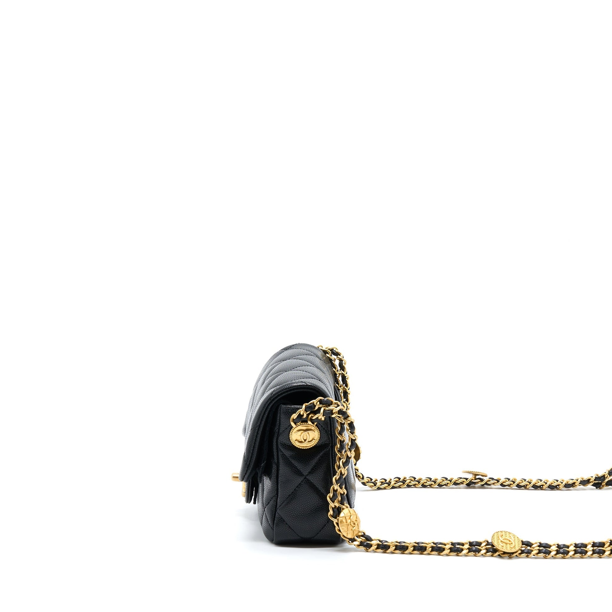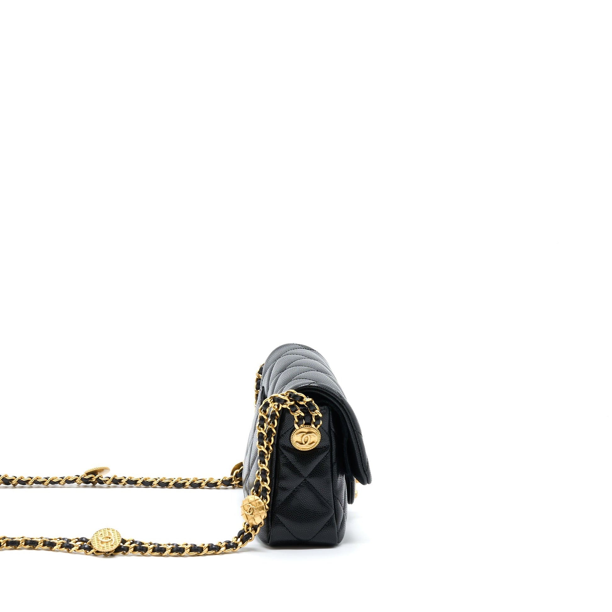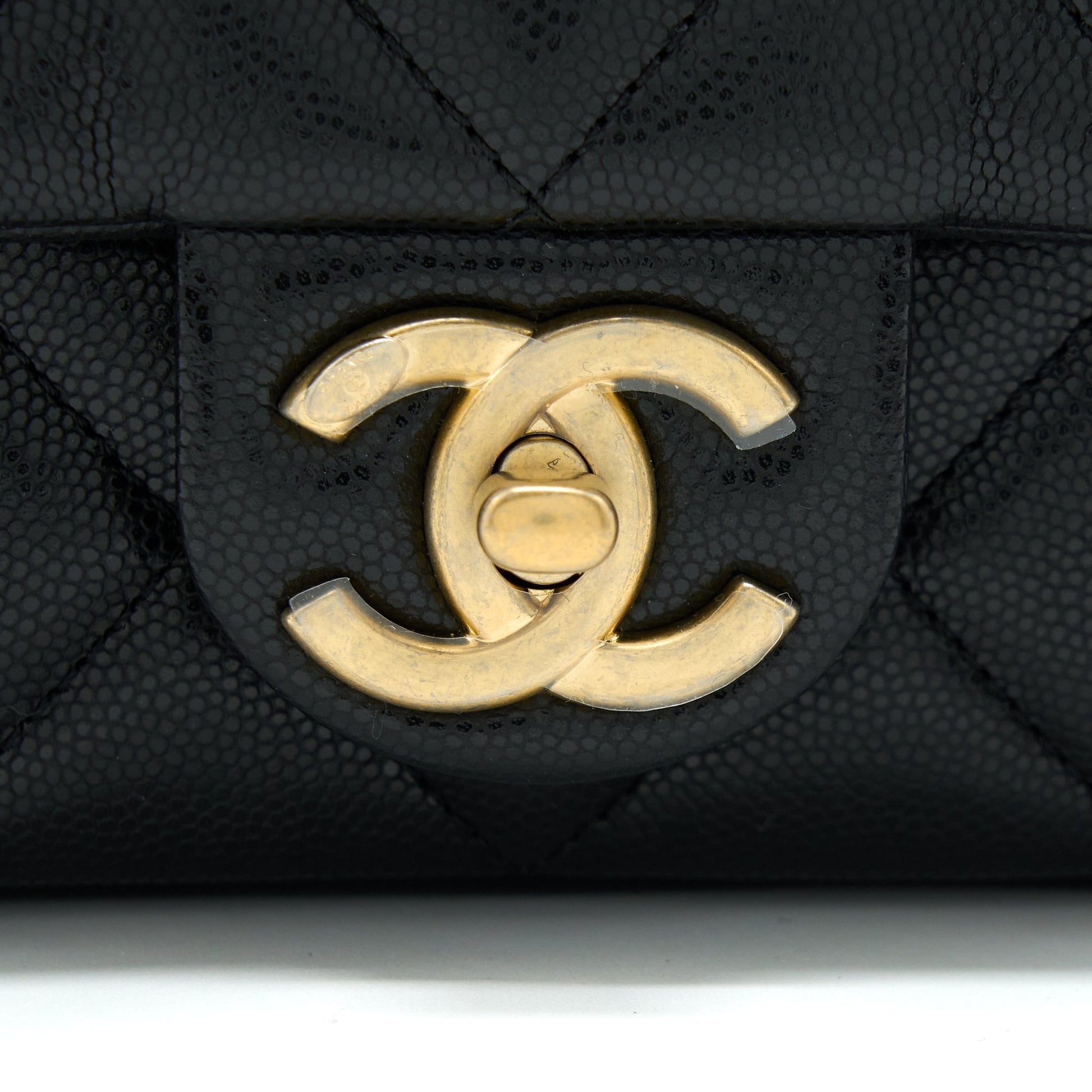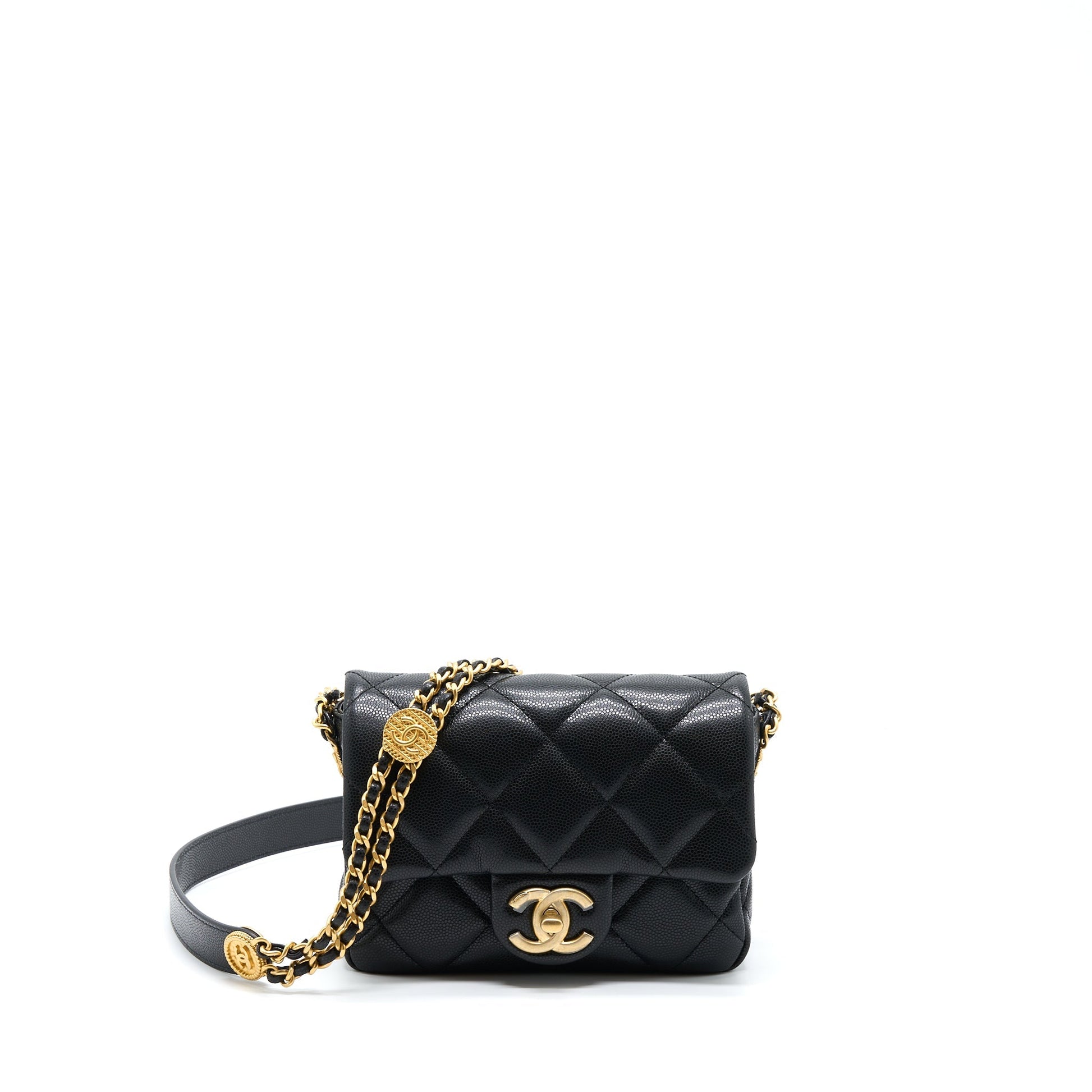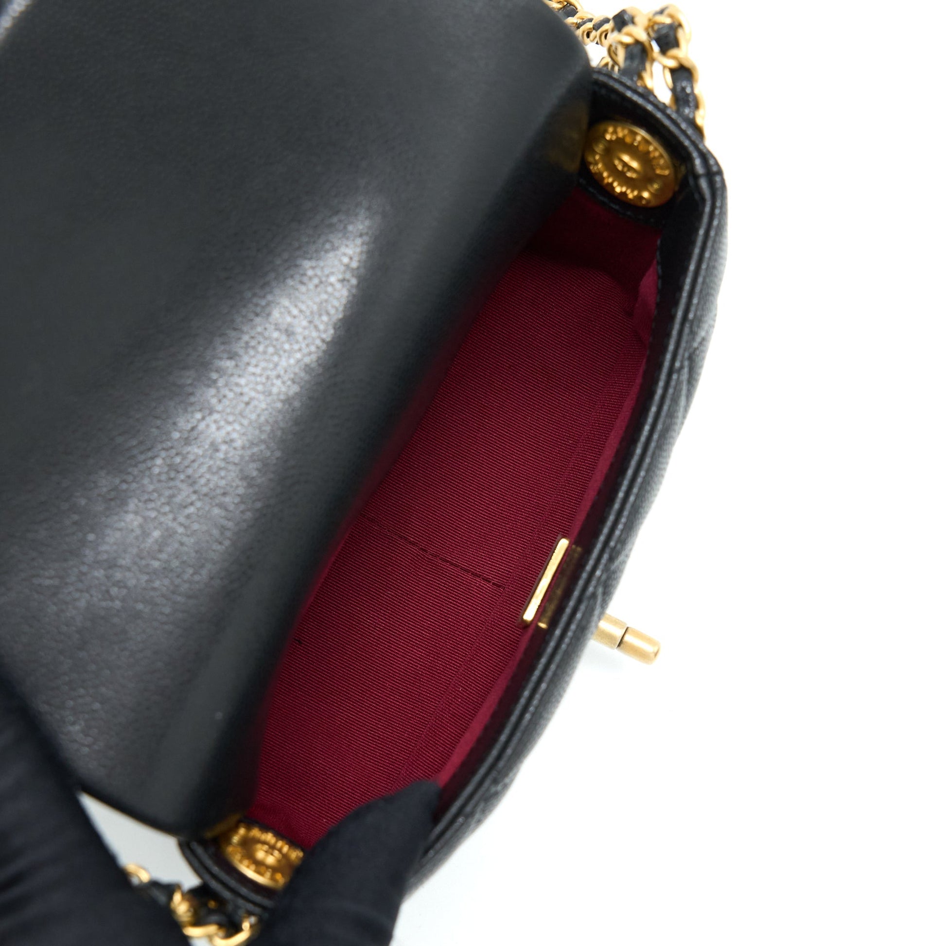Chanel 22A Mini Square Flap Bag Caviar Black Brushed GHW (Microchip)