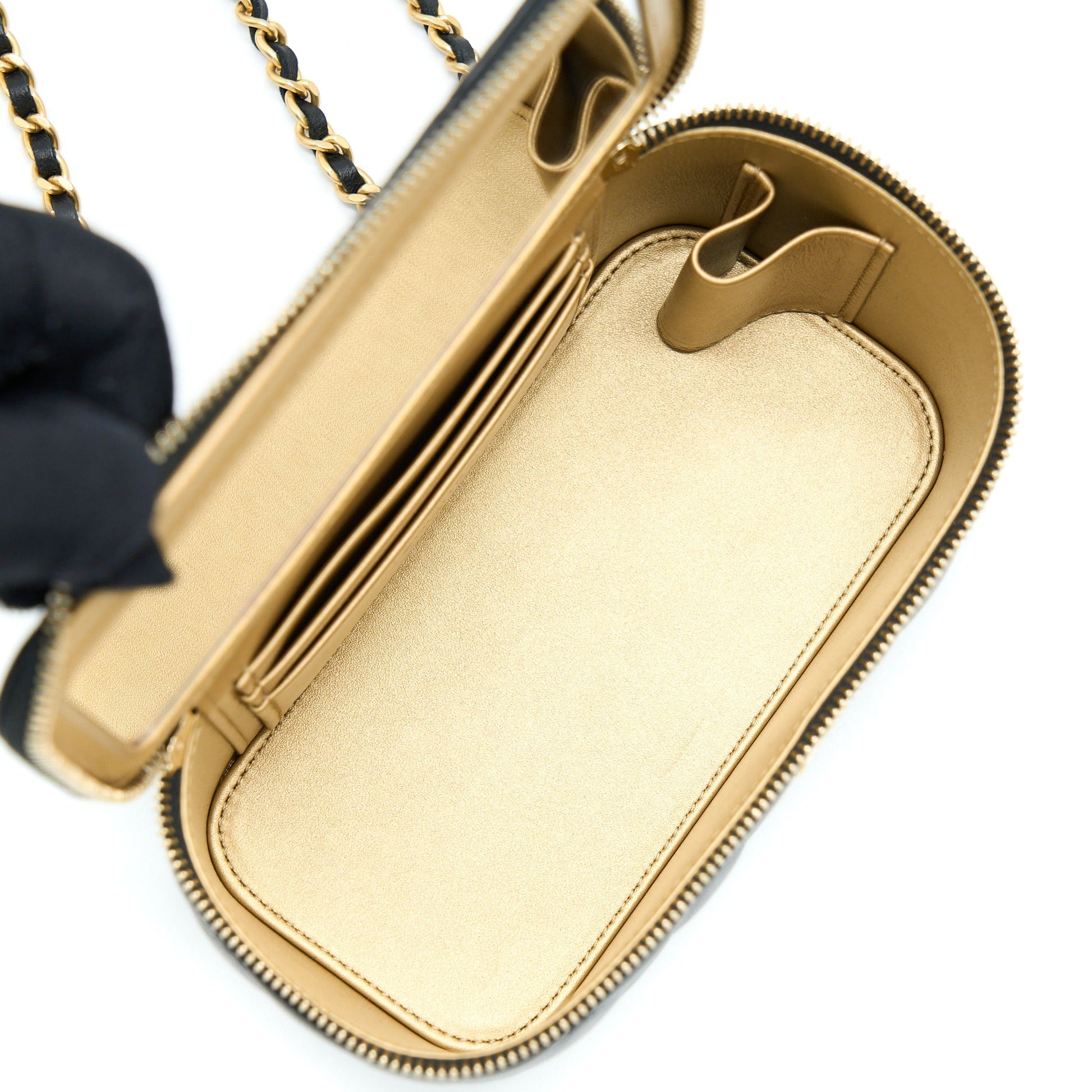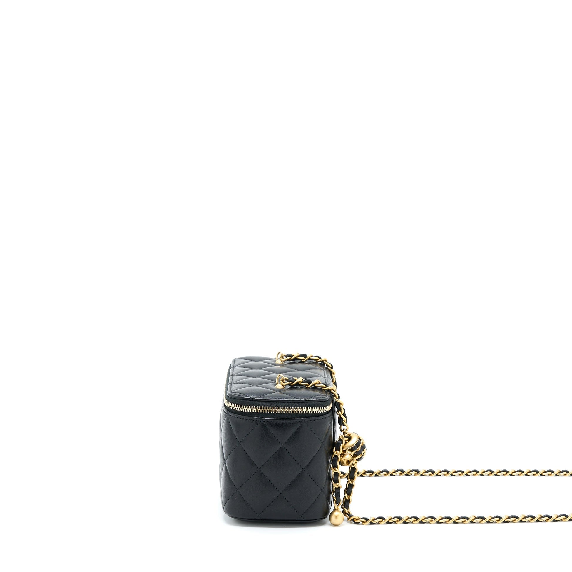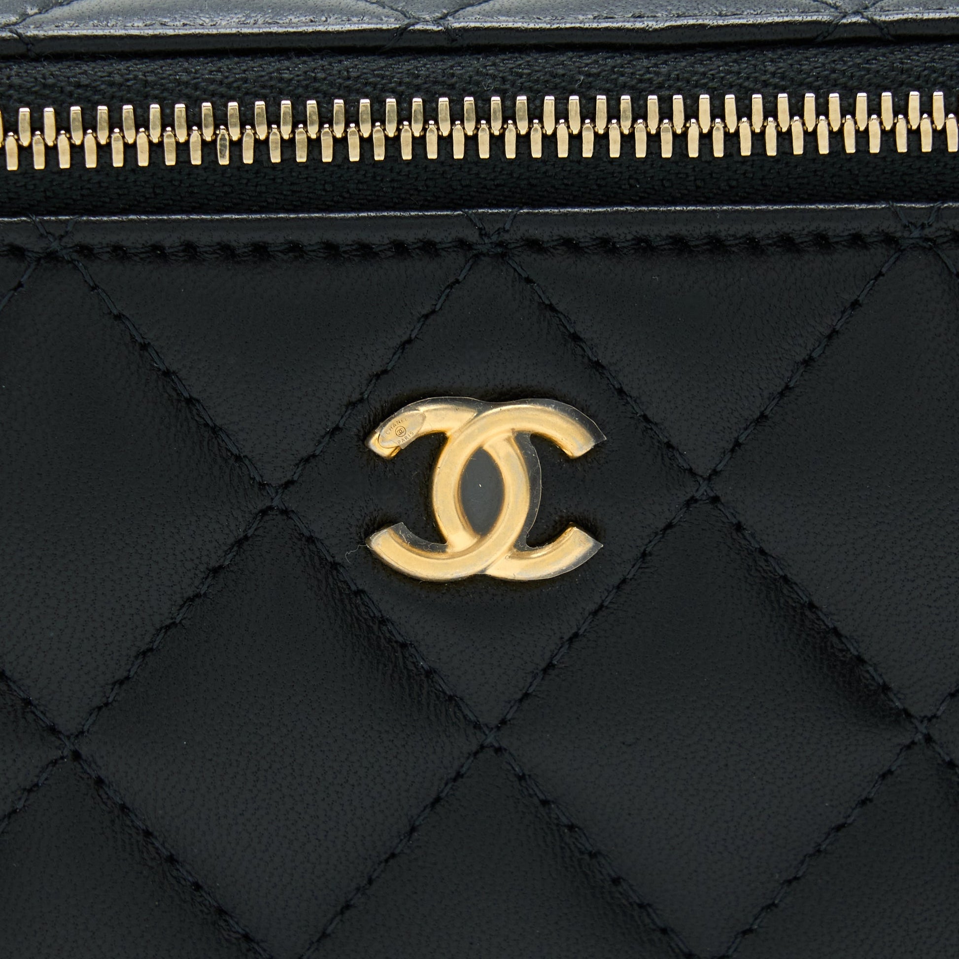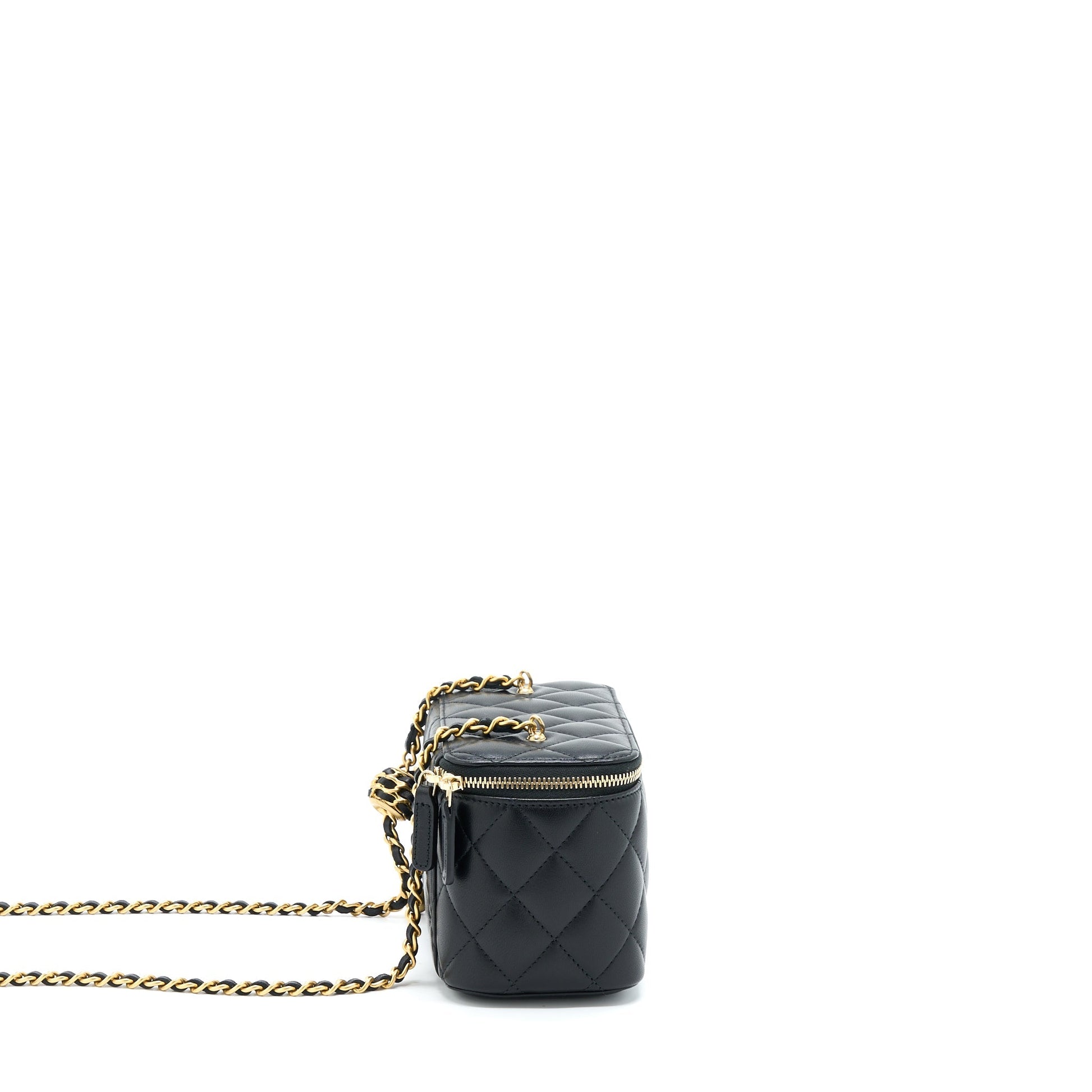 Chanel 22A Pearl Crush Long Vanity With Chain Lambskin Black GHW