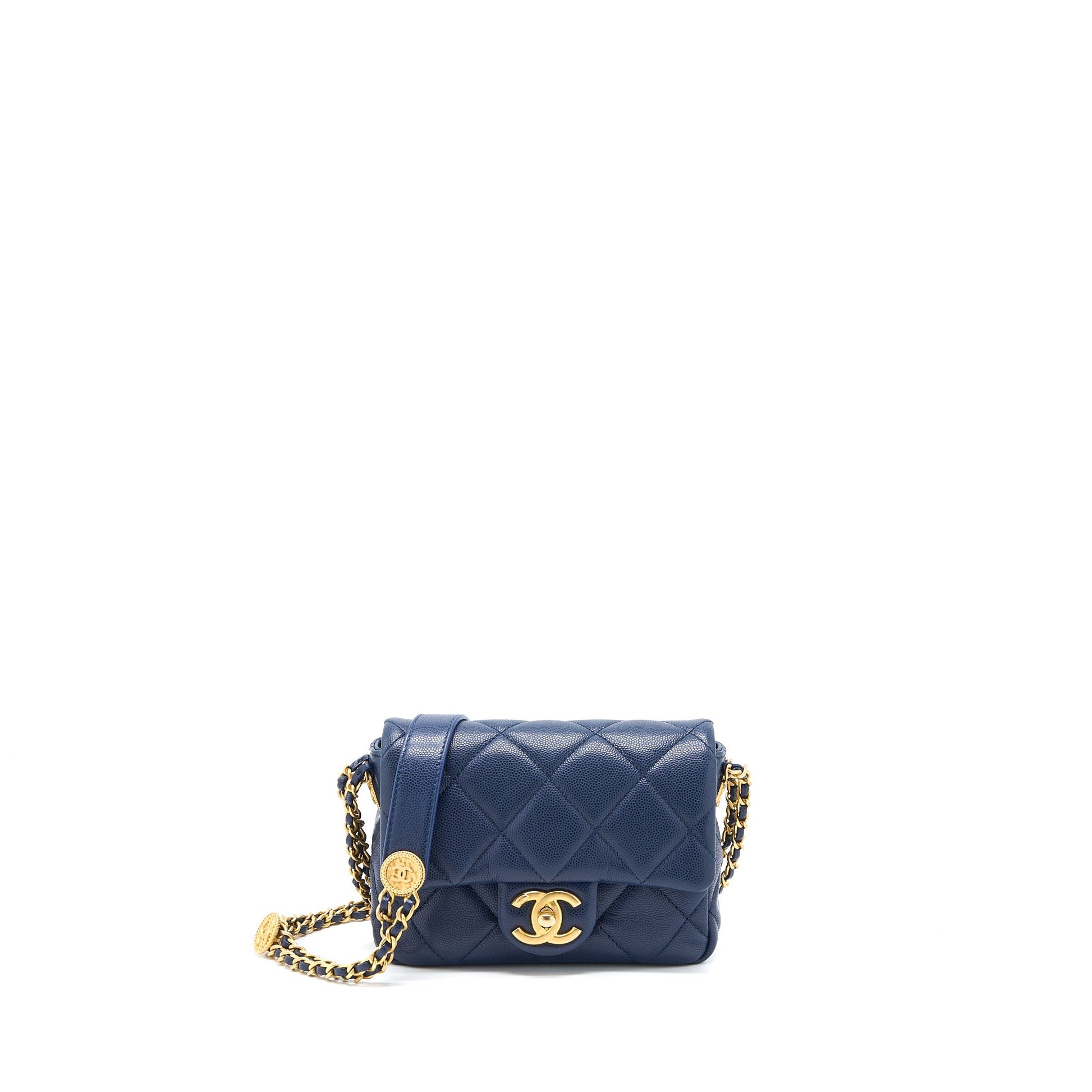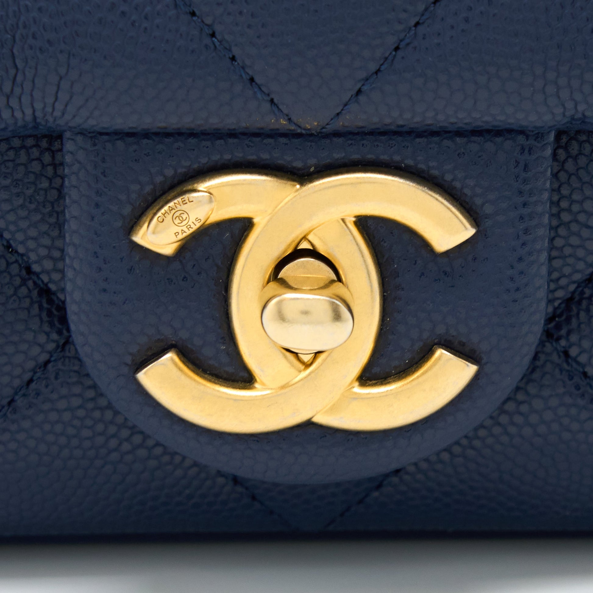 Chanel 22A Small Flap Bag Caviar Navy Brushed GHW (Microchip)