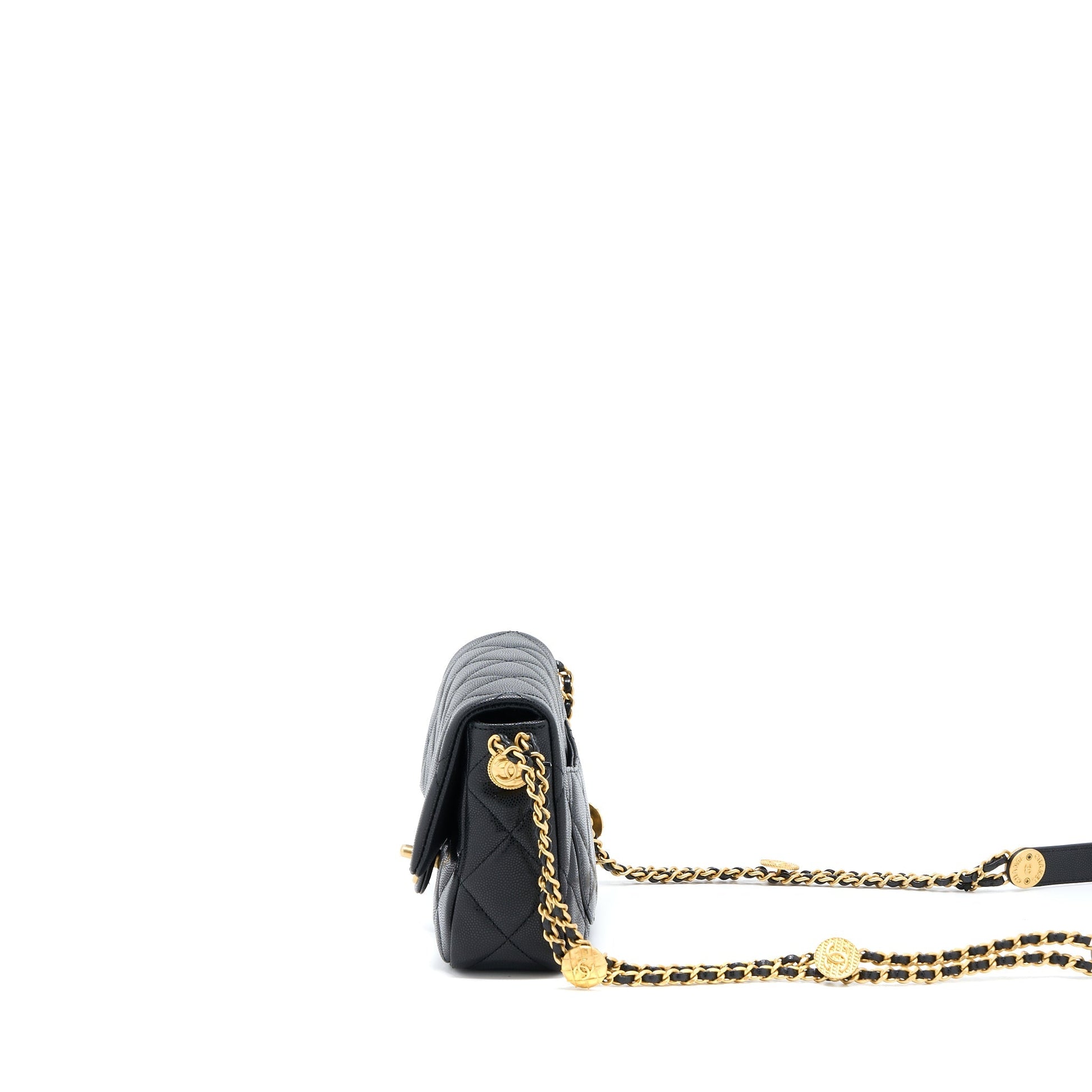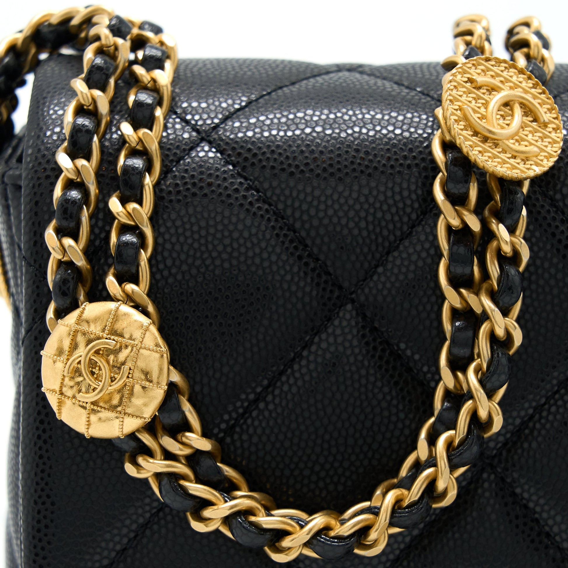Chanel 22A Small Flap Bag Grained Shiny Calfskin Black Brushed GHW(Microchip)