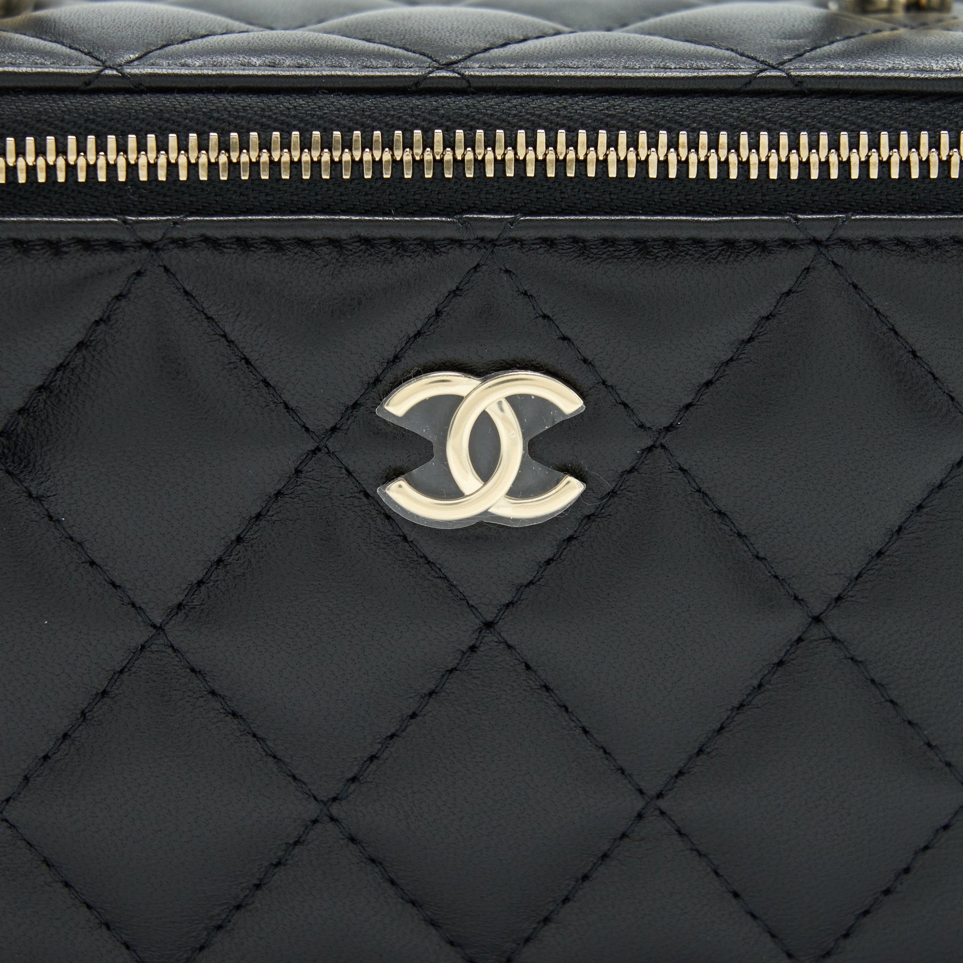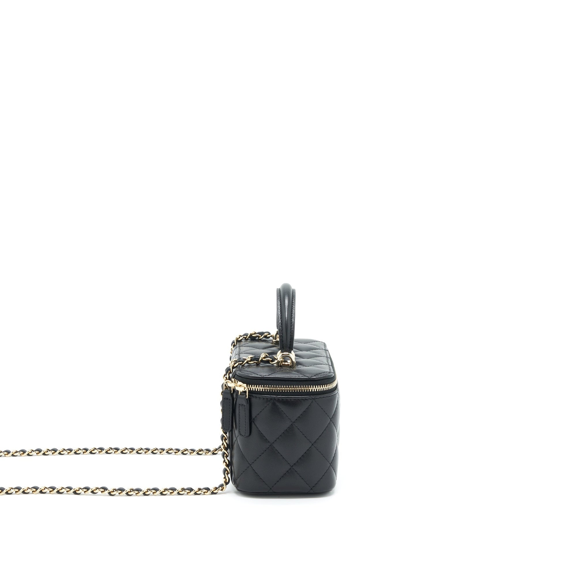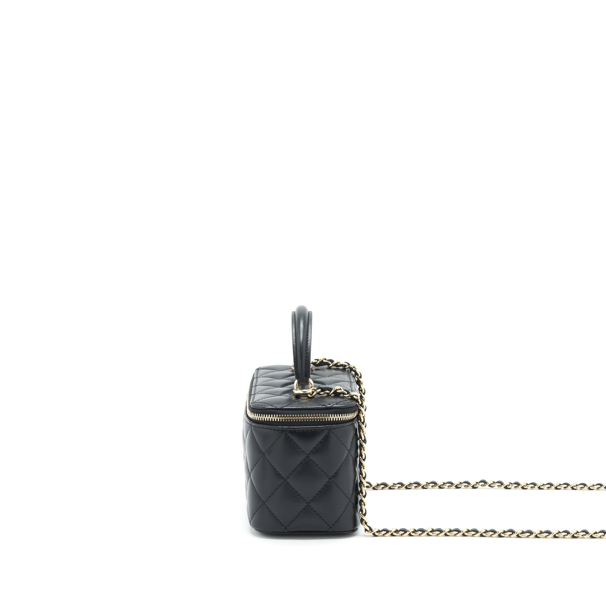Chanel 22A Top Handle Long Vanity With Chain Lambskin Black LGHW