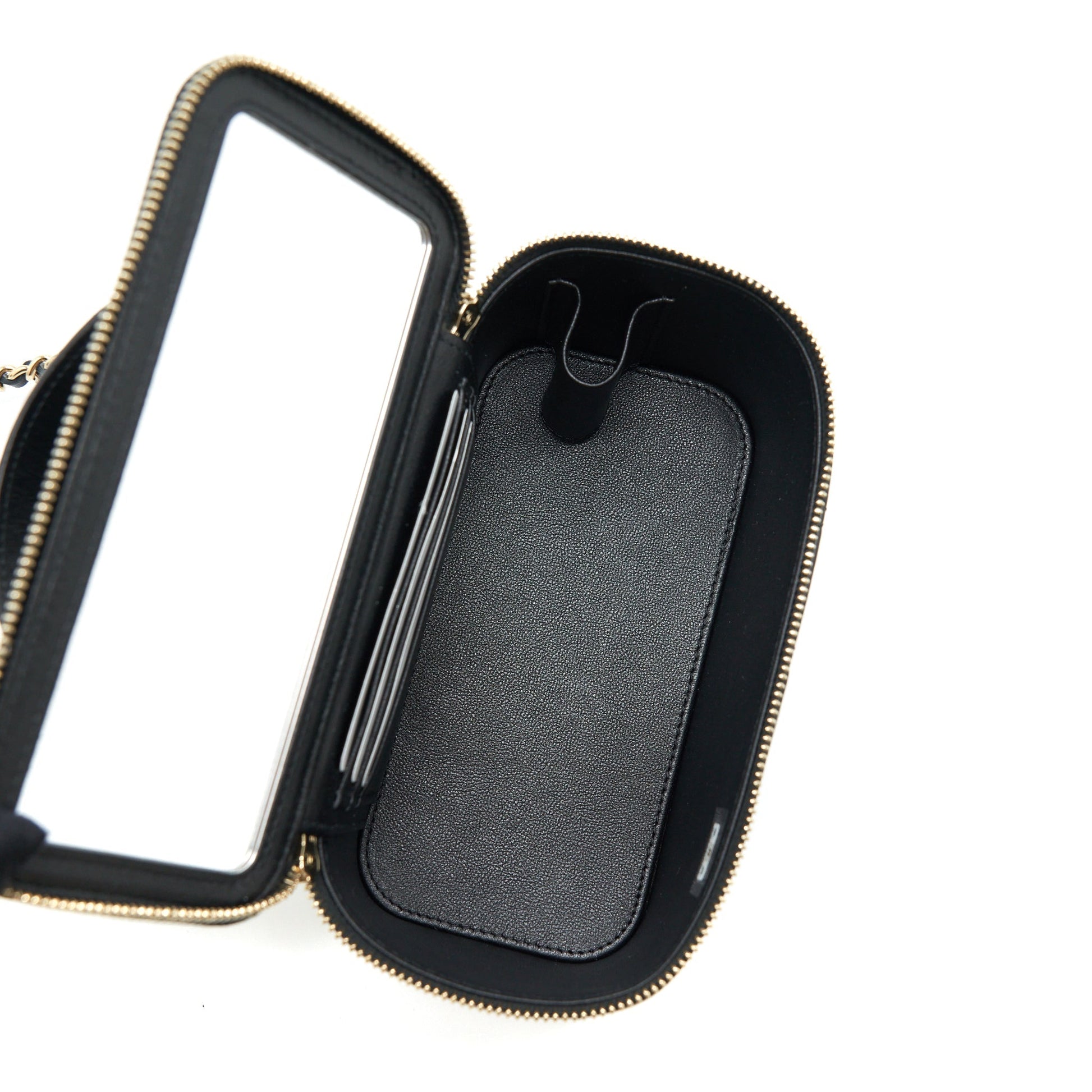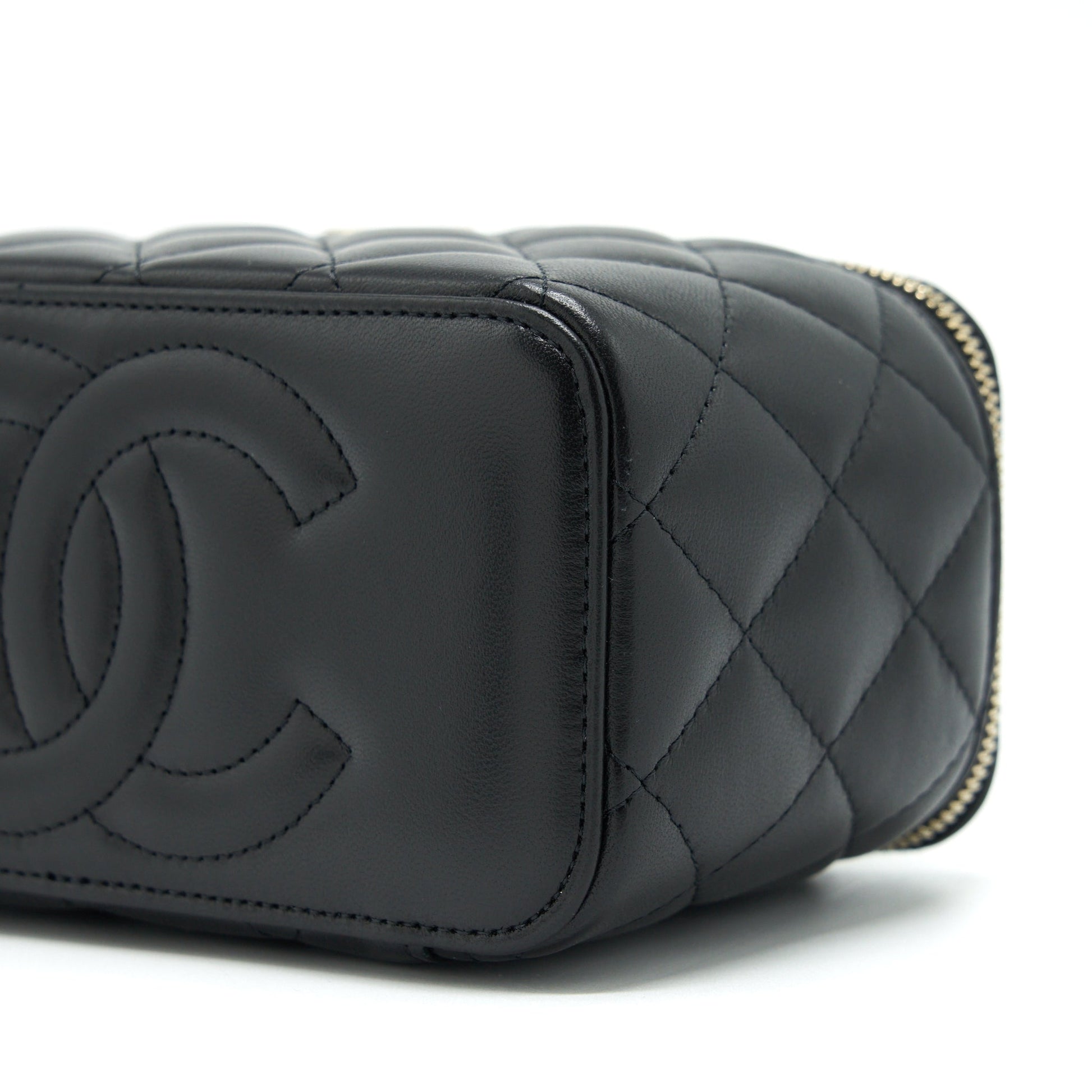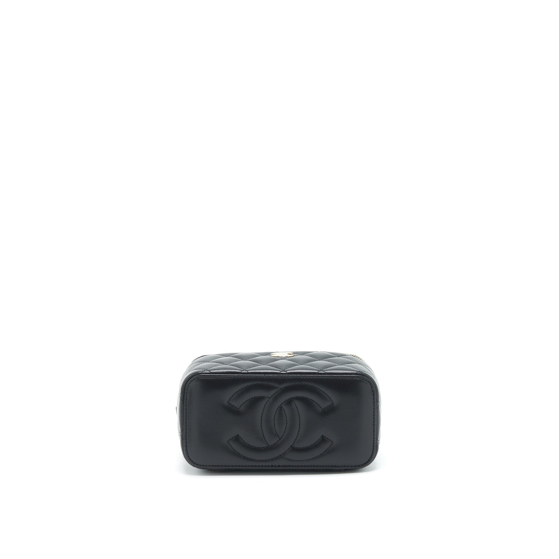 Chanel 22A Top Handle Long Vanity With Chain Lambskin Black LGHW