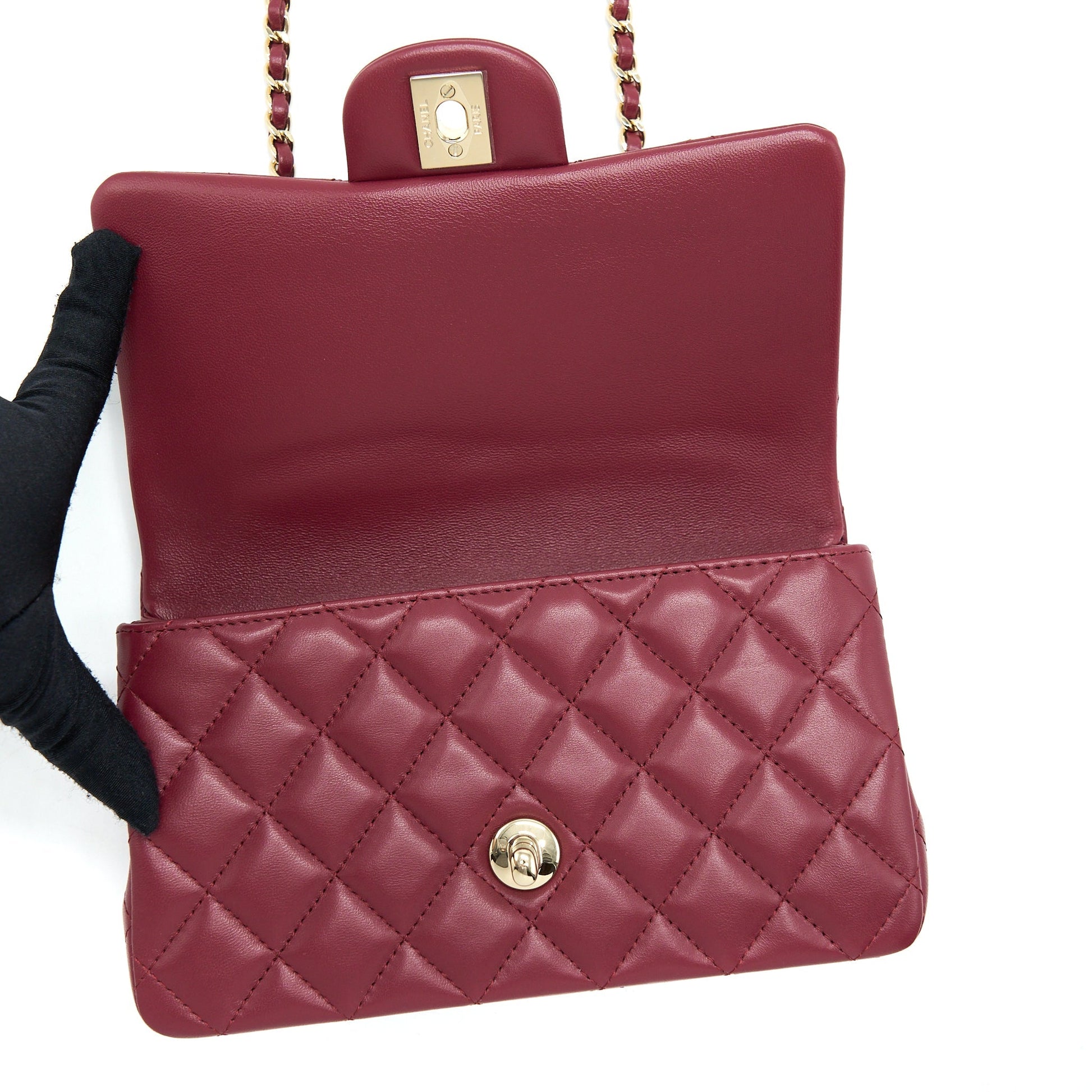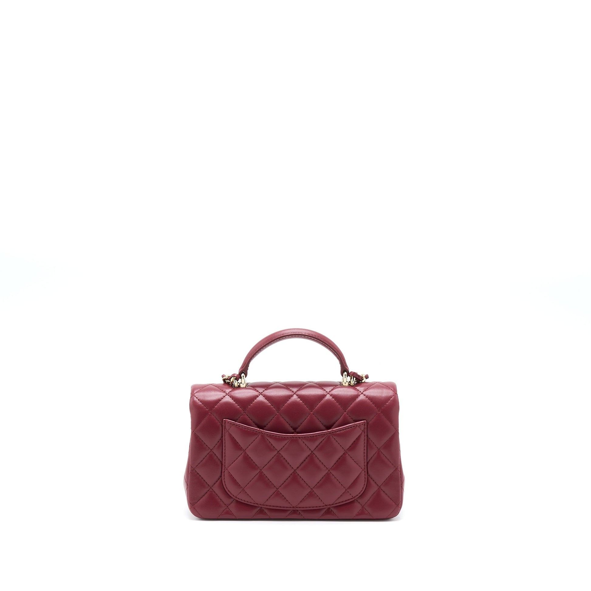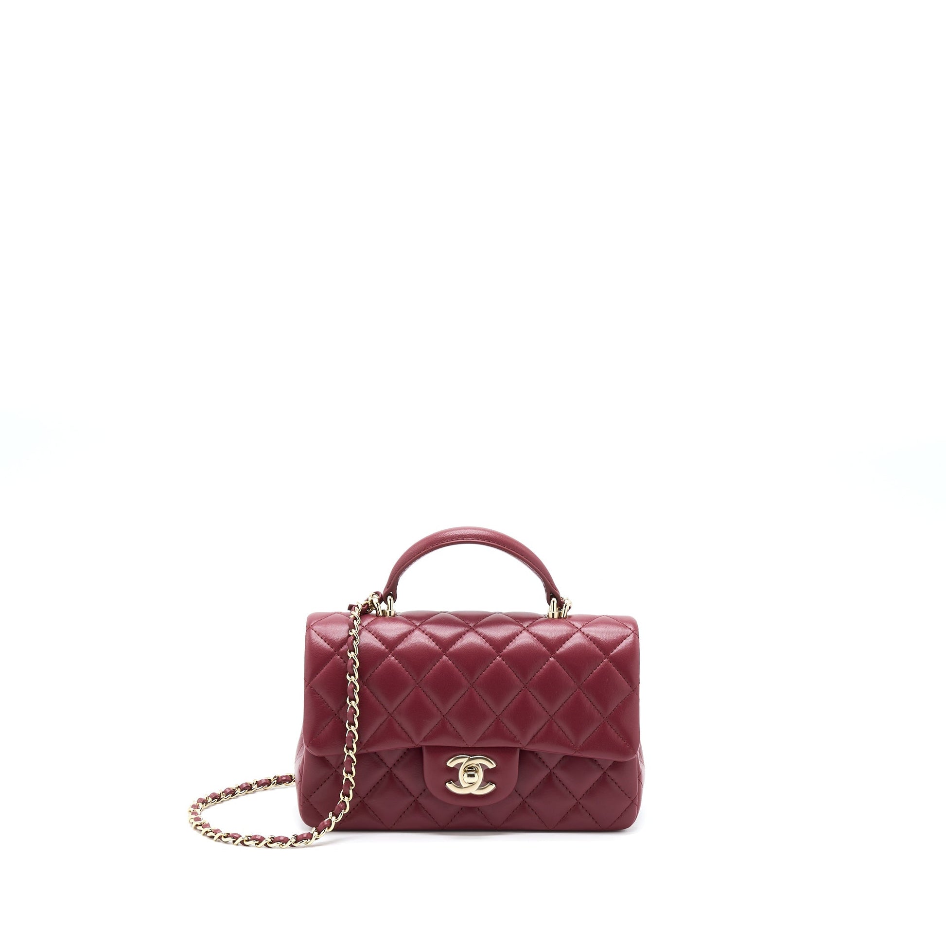 Chanel 22A Top Handle Mini Rectangular Flap Bag Lambskin Burgundy LGHW