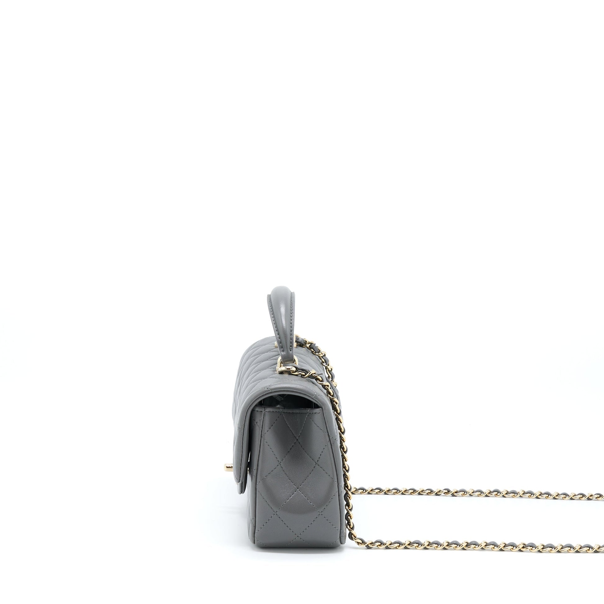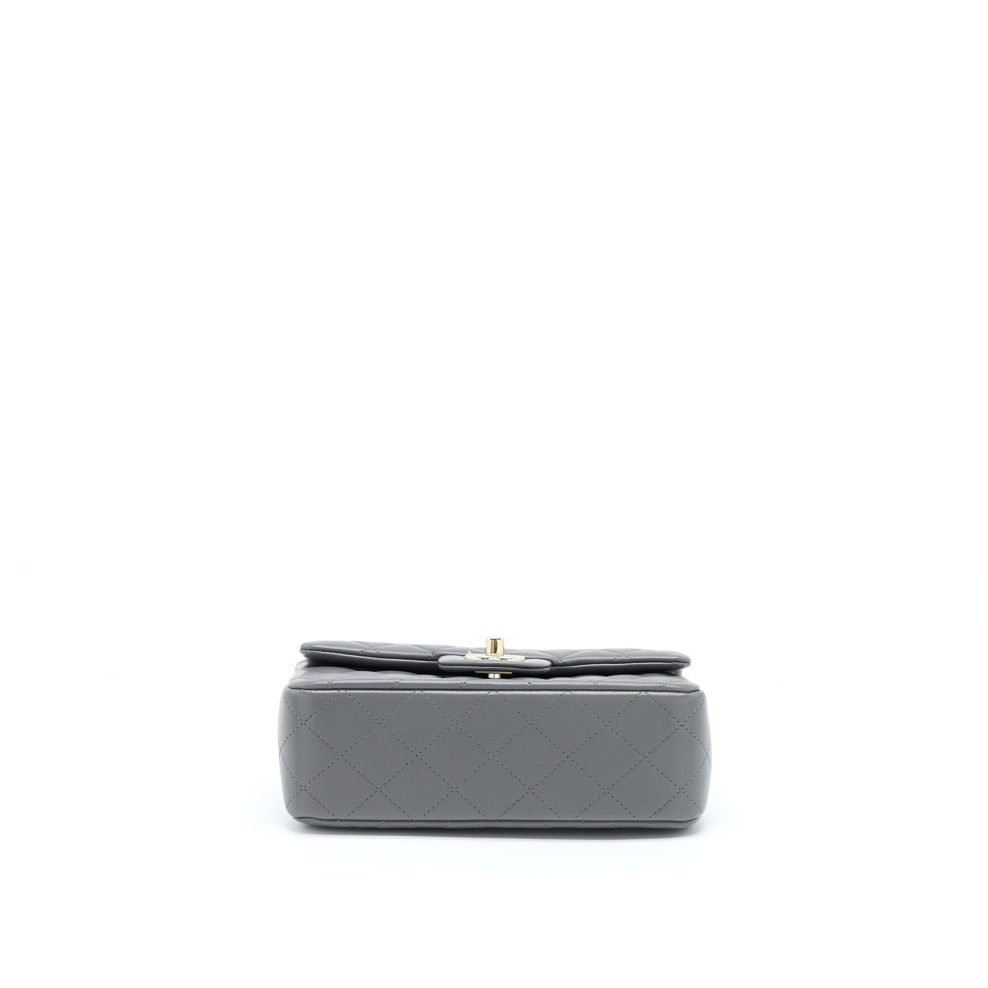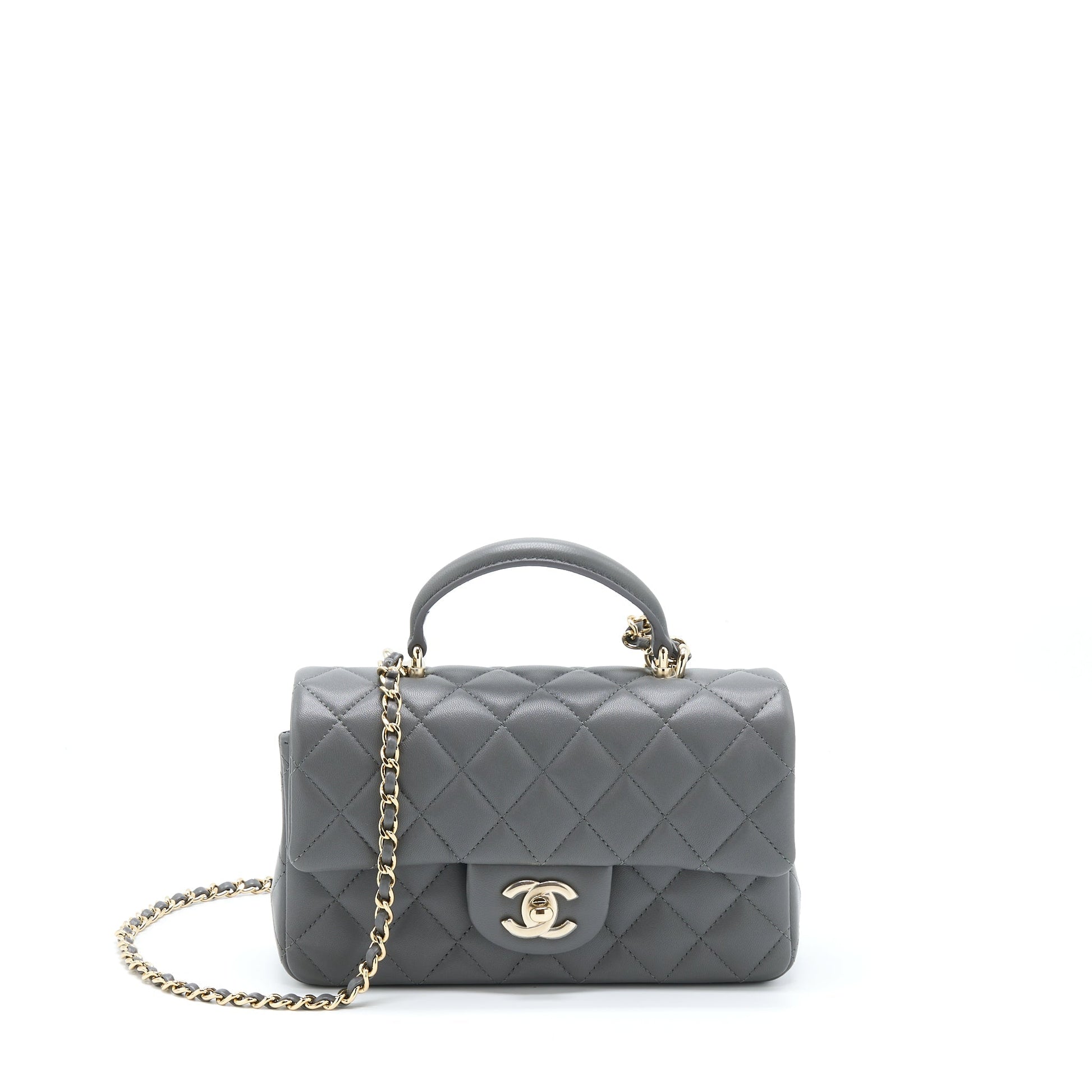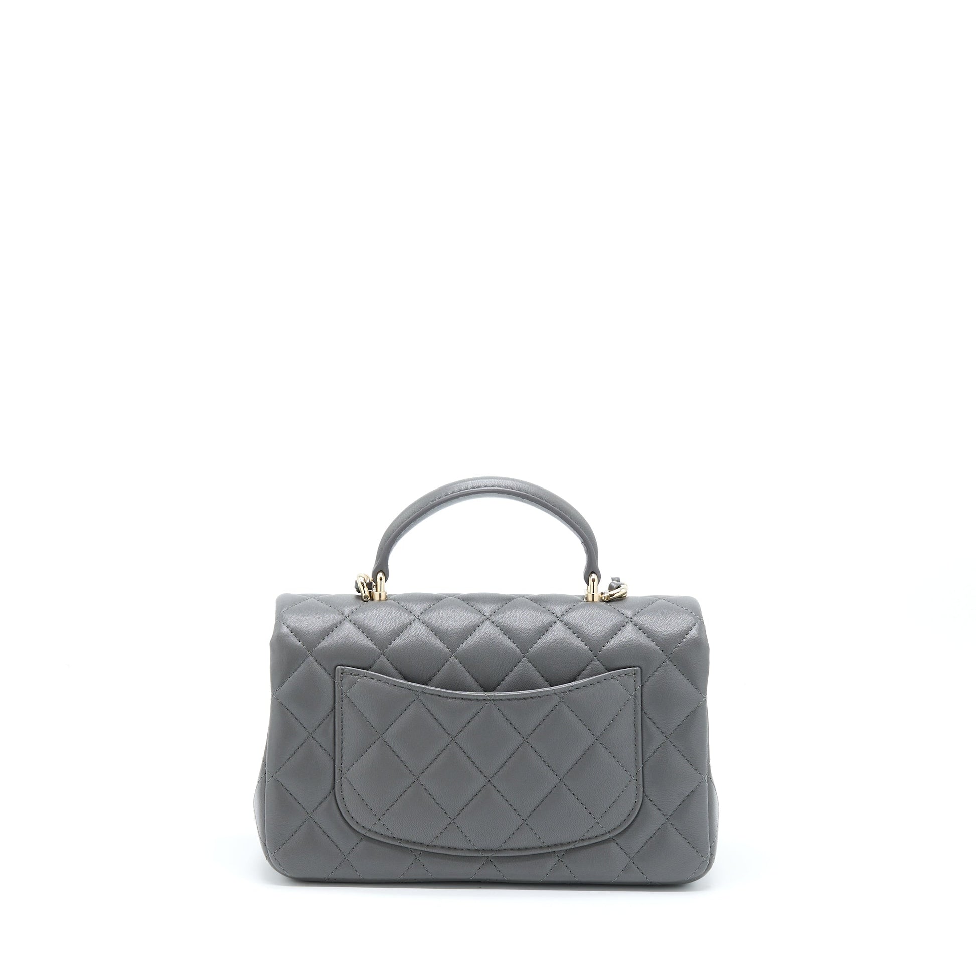 Chanel 22A Top Handle Mini Rectangular Flap Bag Lambskin Grey LGHW (Microchip)