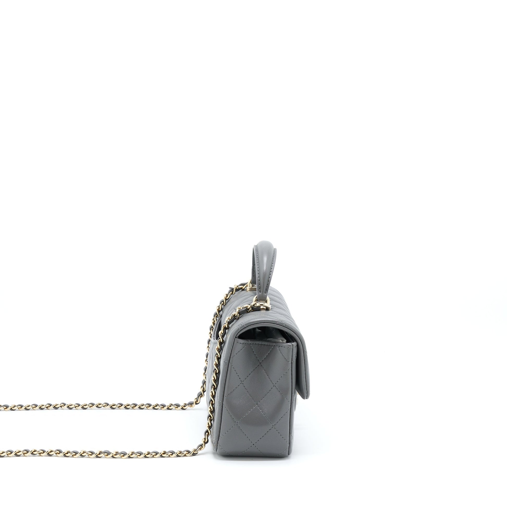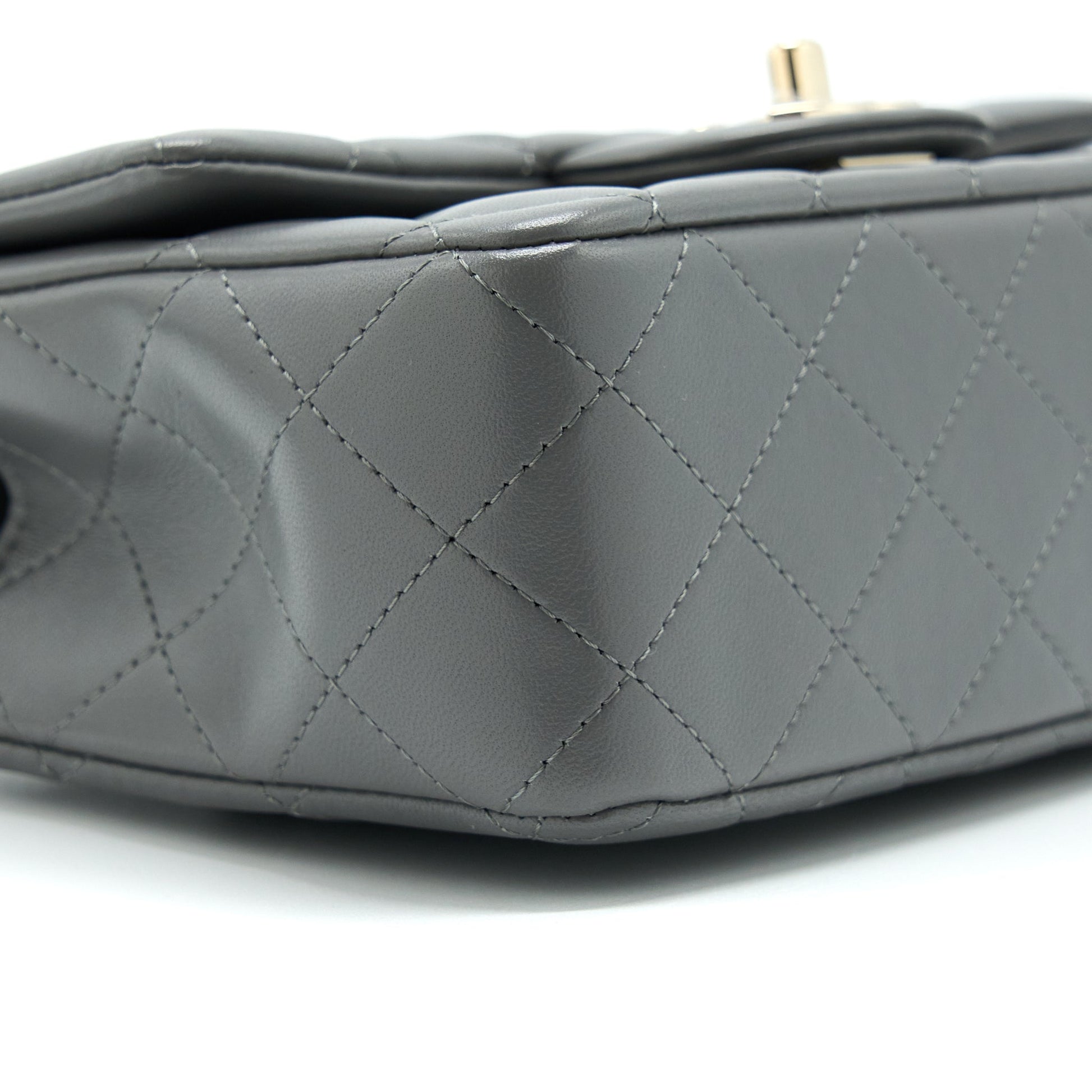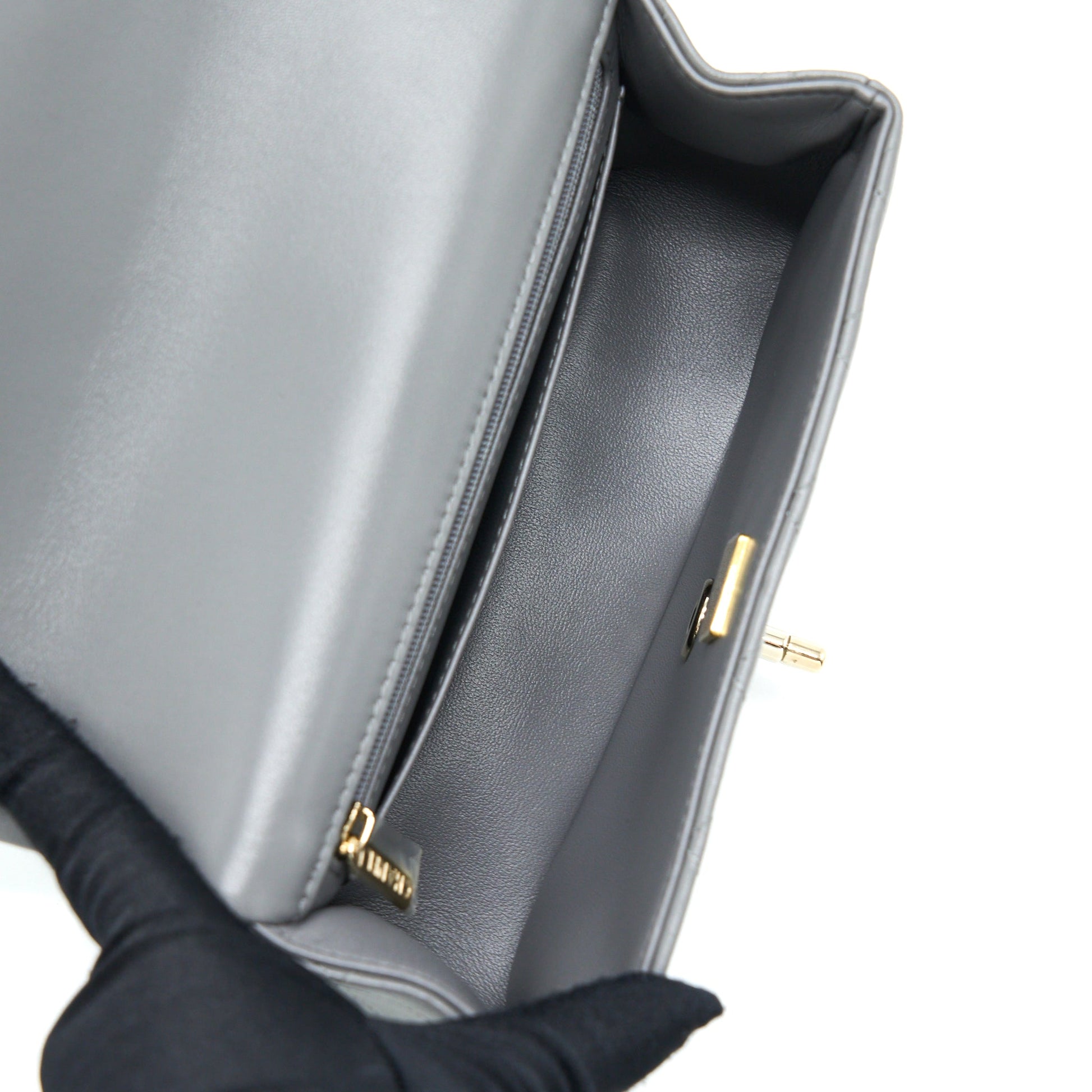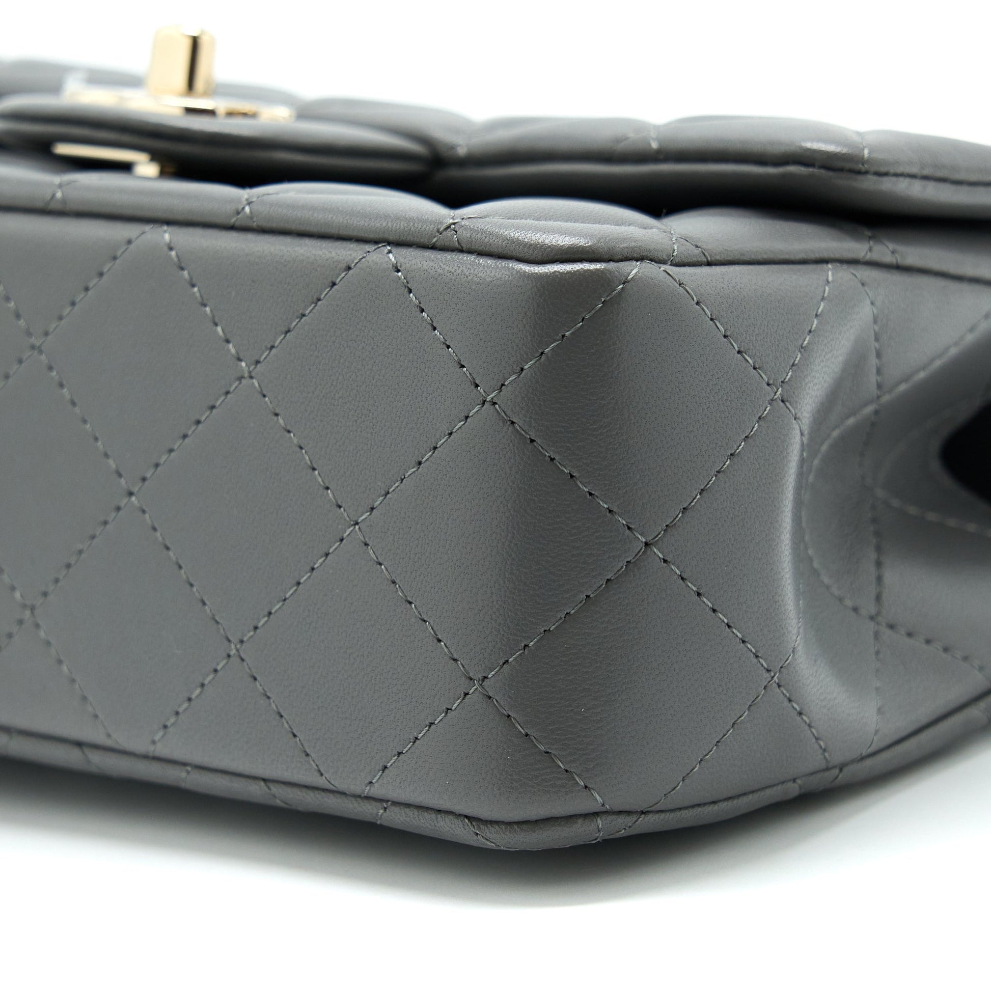 Chanel 22A Top Handle Mini Rectangular Flap Bag Lambskin Grey LGHW (Microchip)