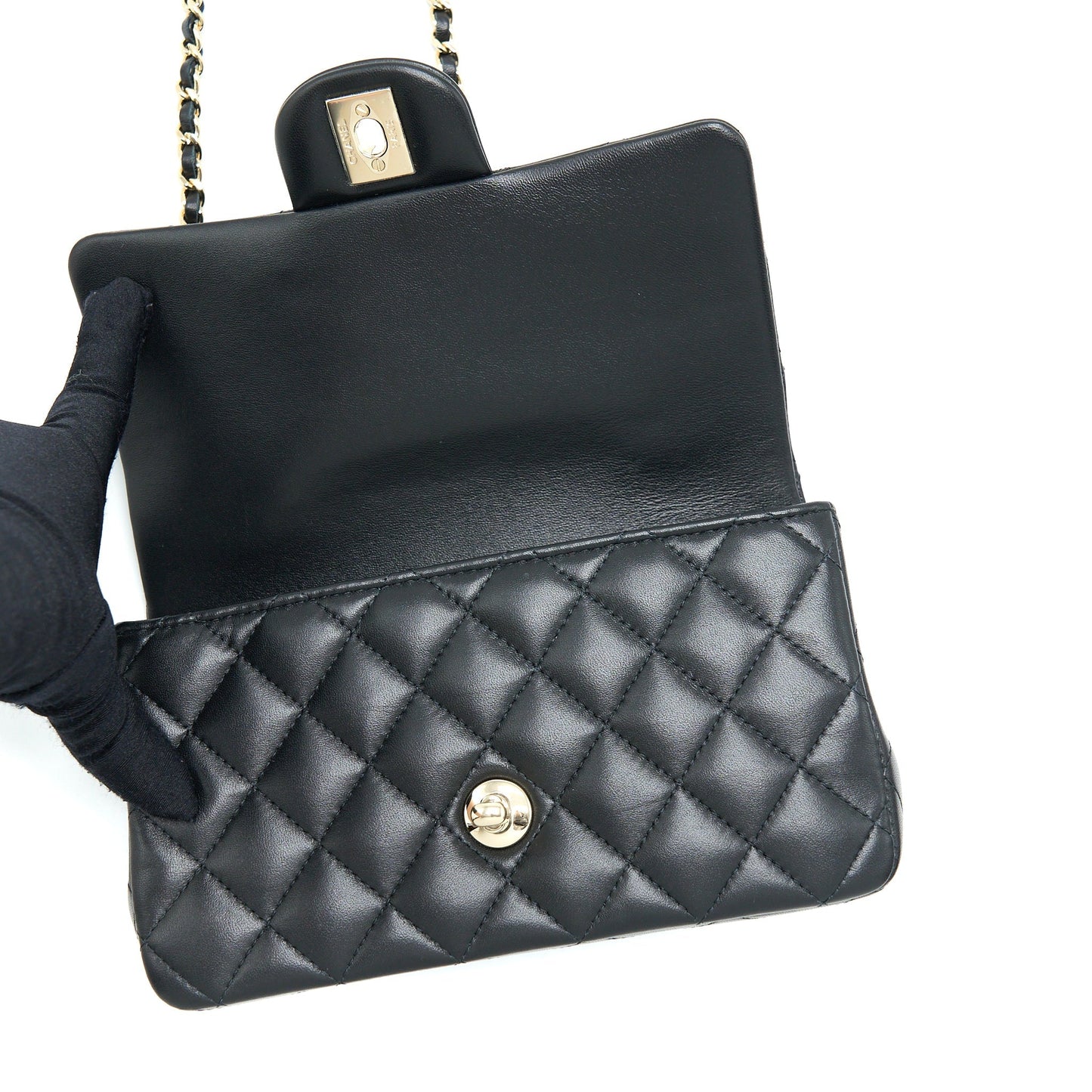 Chanel 22A Top Handle Mini Rectangular Flap Bag Lambskin Black GHW (Microchip)