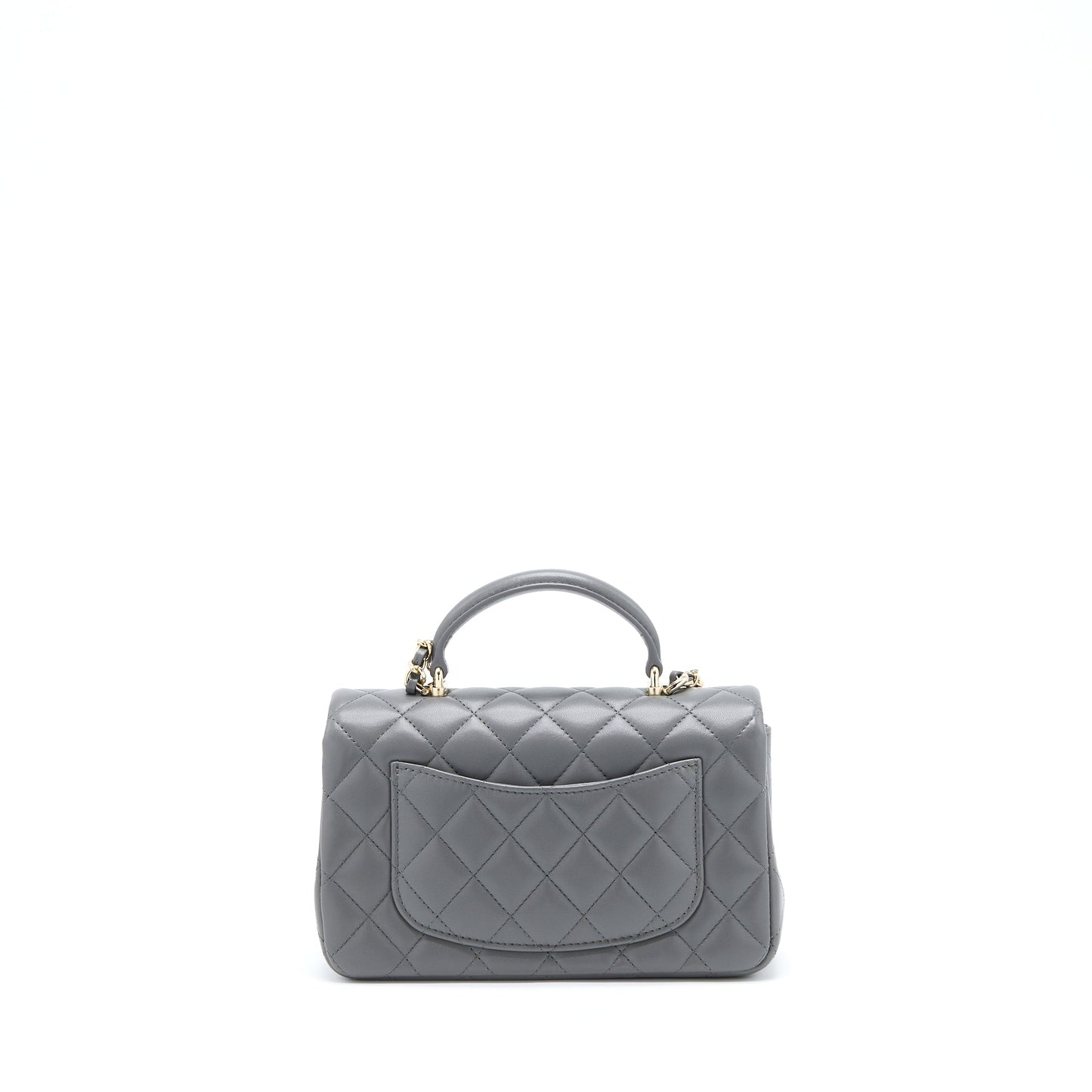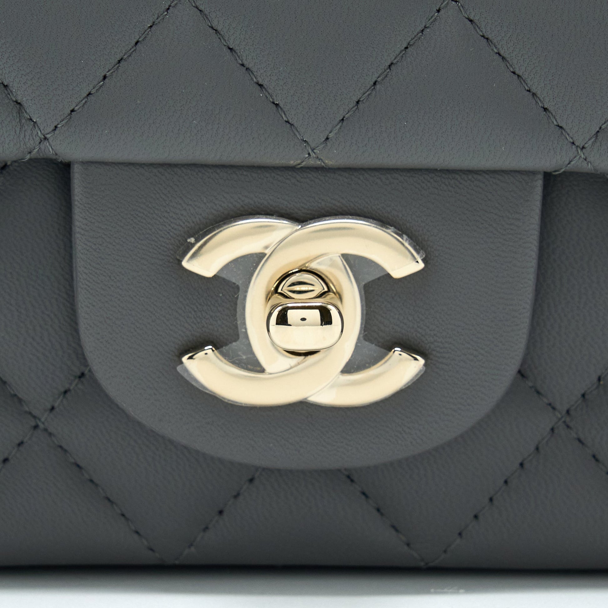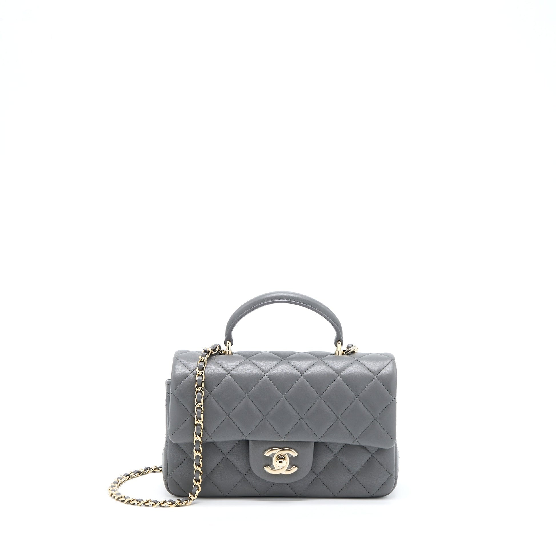 Chanel 22A Top Handle Mini Rectangular Flap Bag Lambskin Grey LGHW(Microchip)