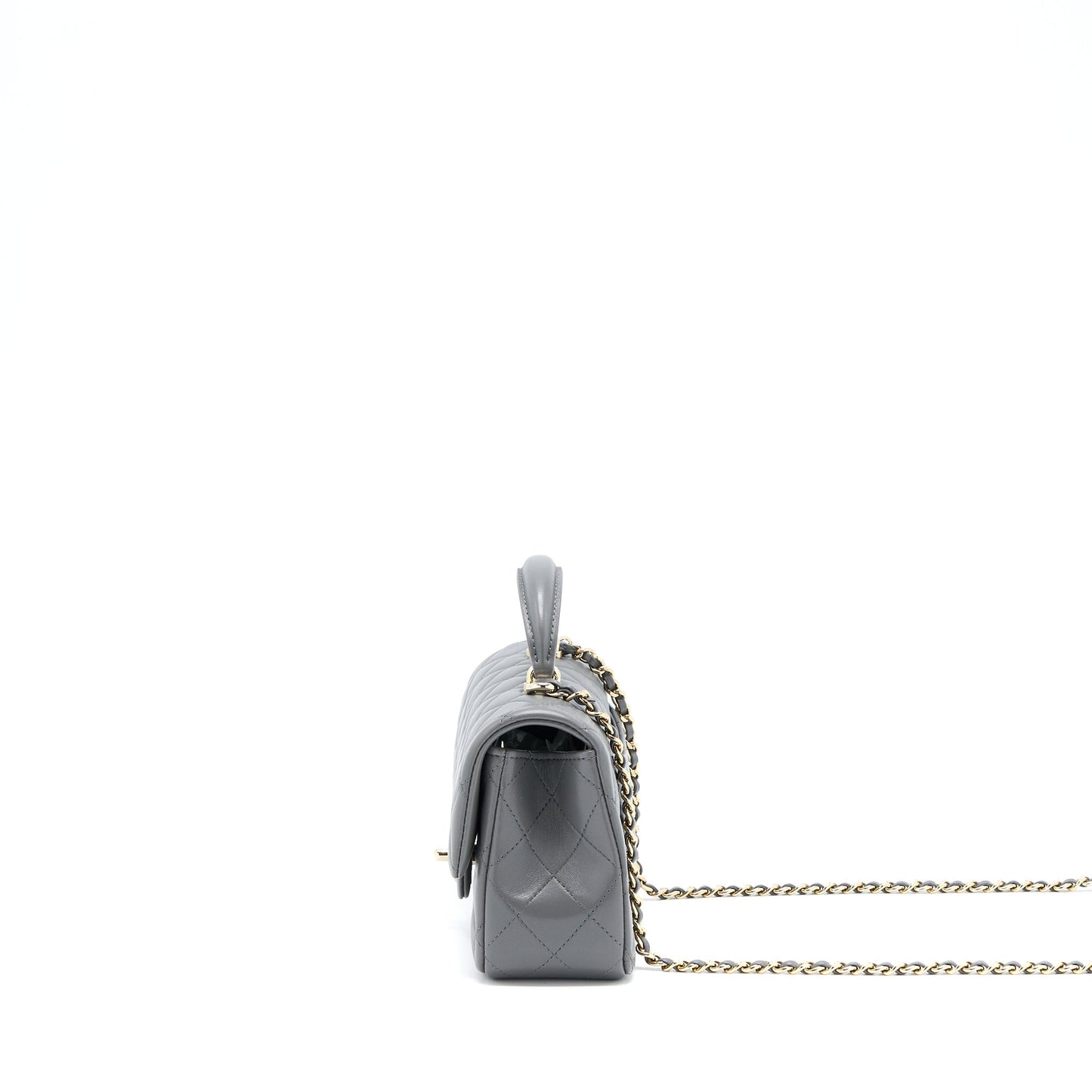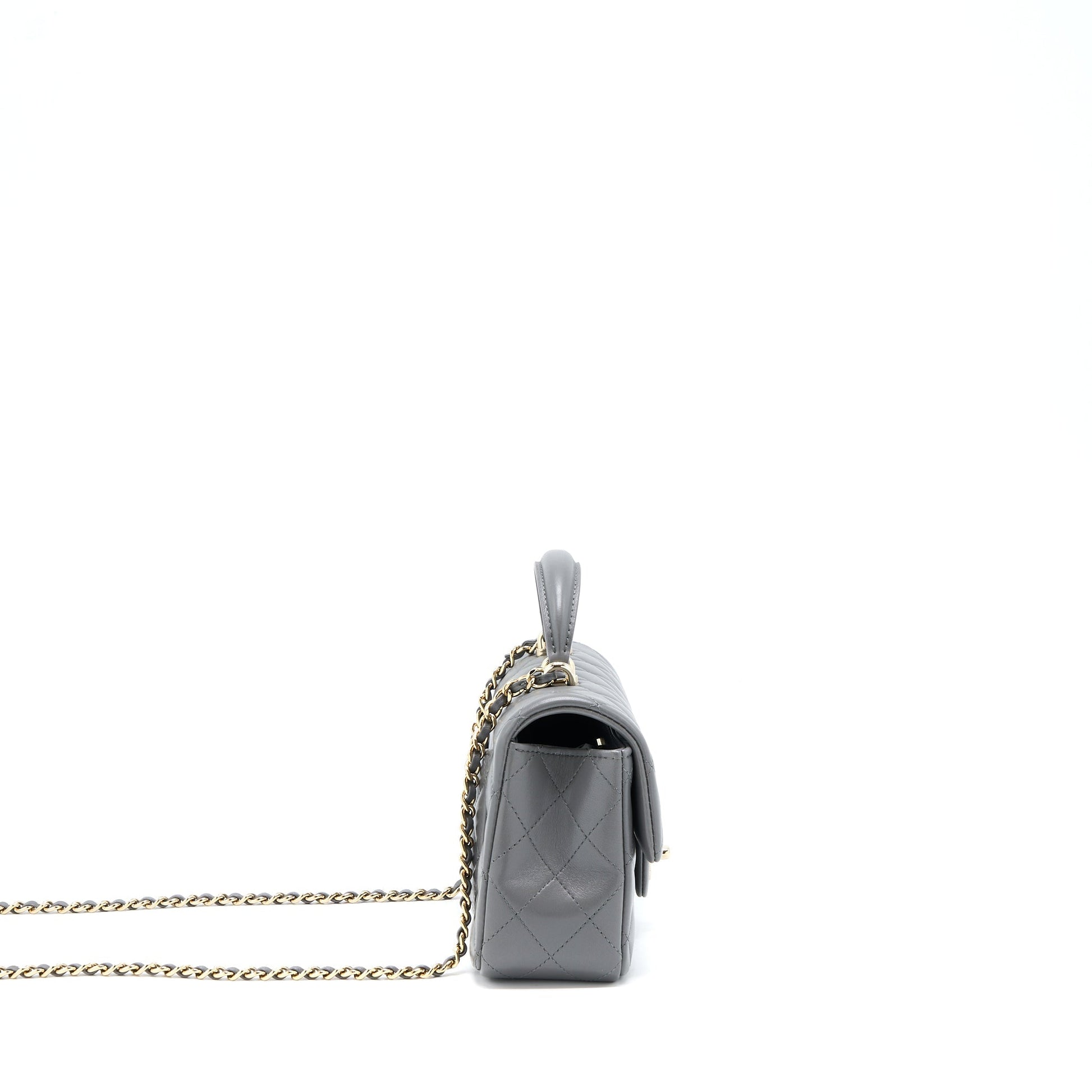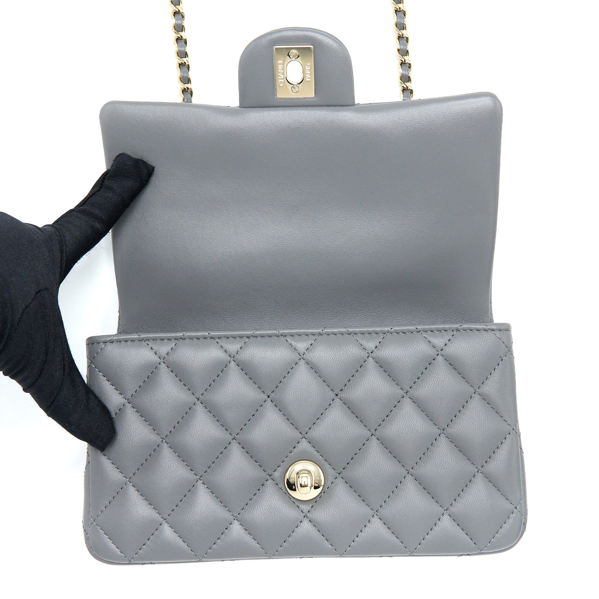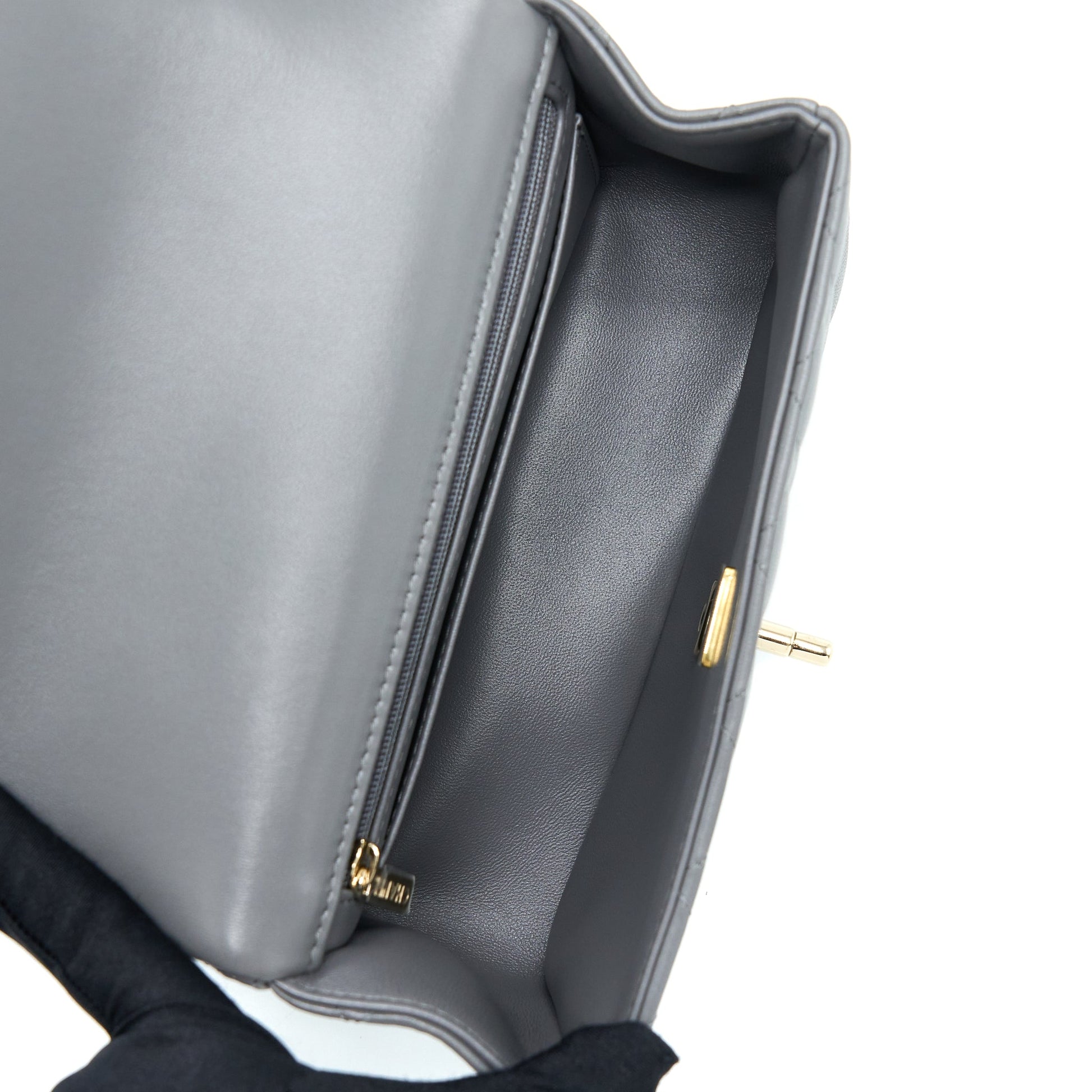 Chanel 22A Top Handle Mini Rectangular Flap Bag Lambskin Grey LGHW(Microchip)
