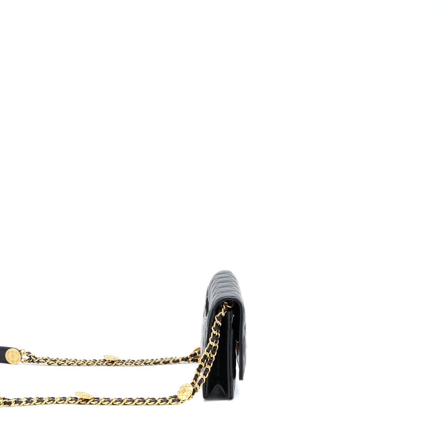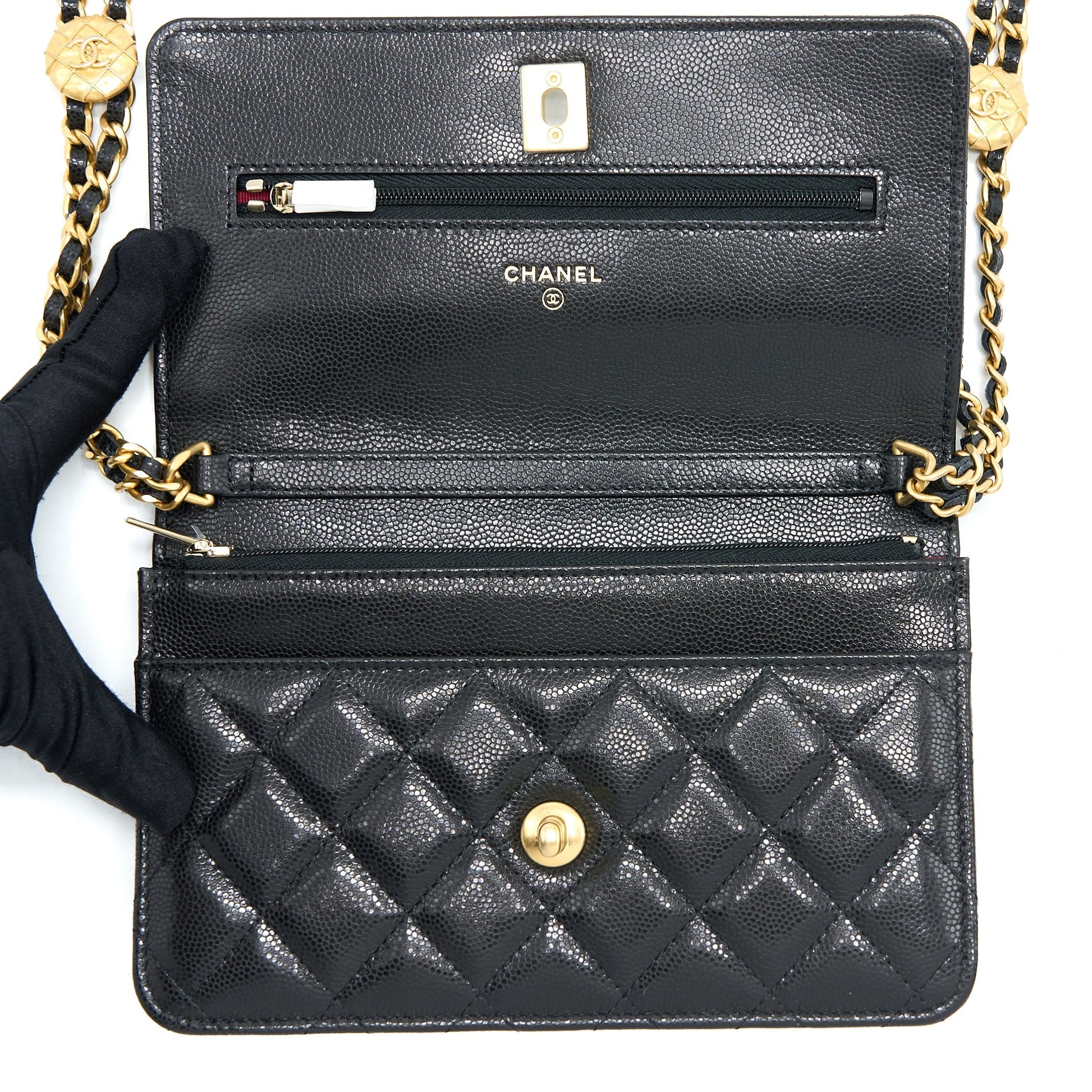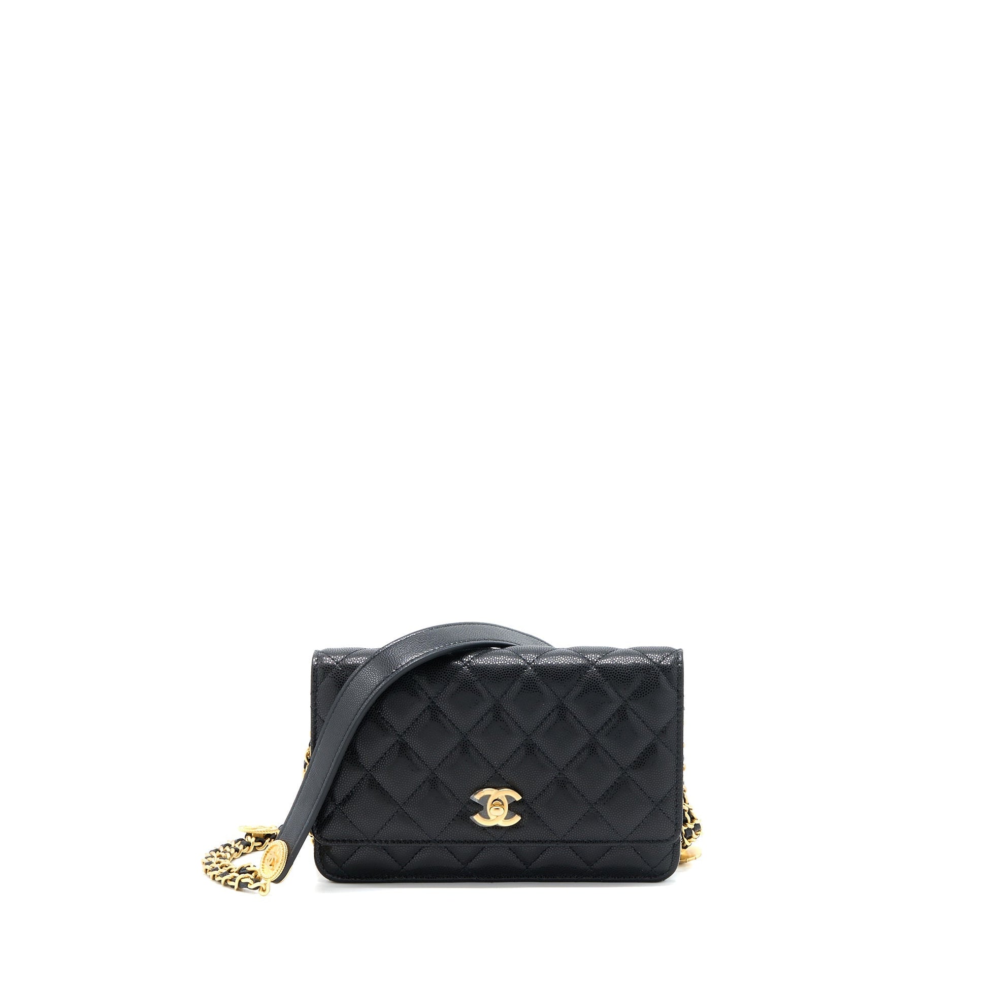 Chanel 22A Twist your button Wallet On Chain Caviar Black GHW (Microchip)