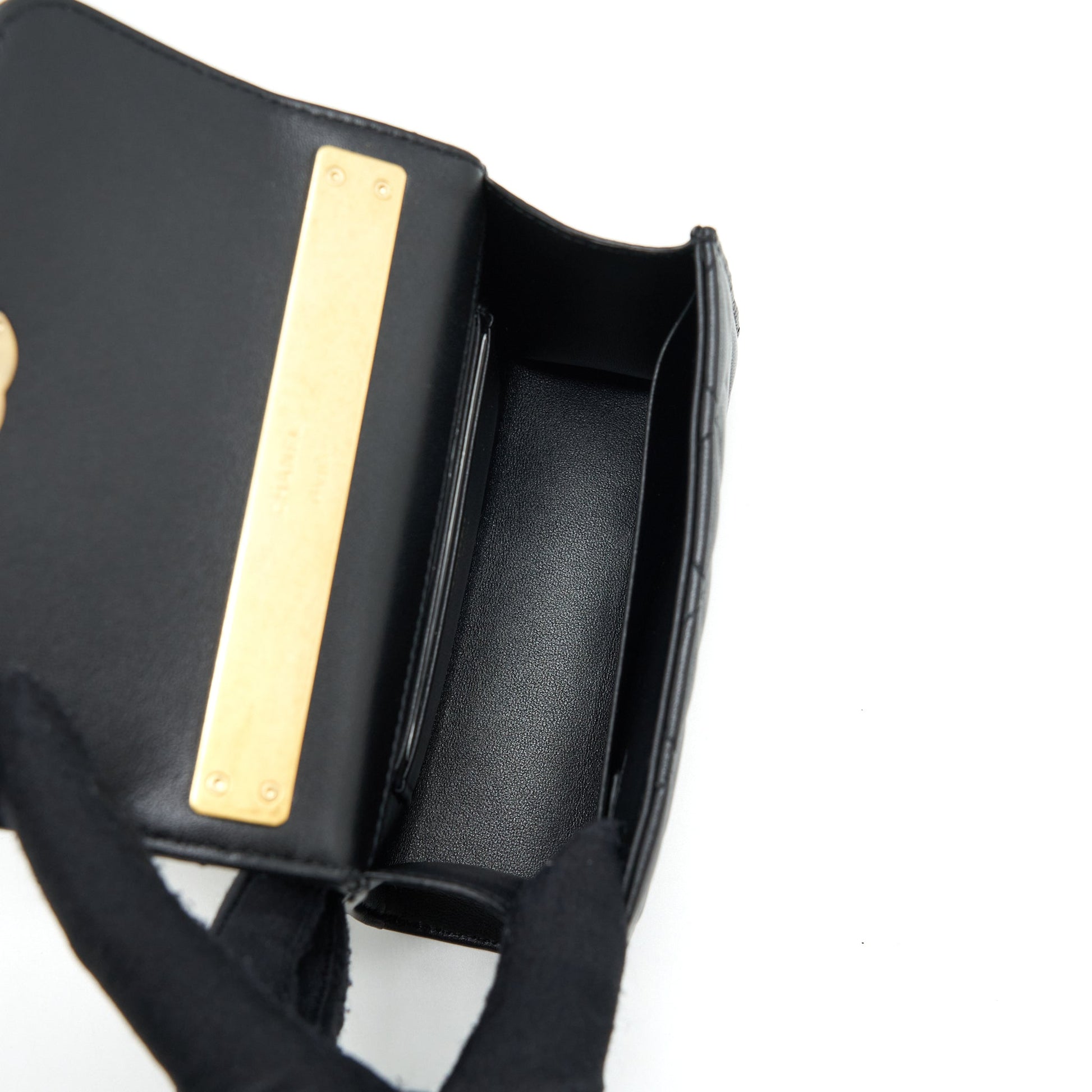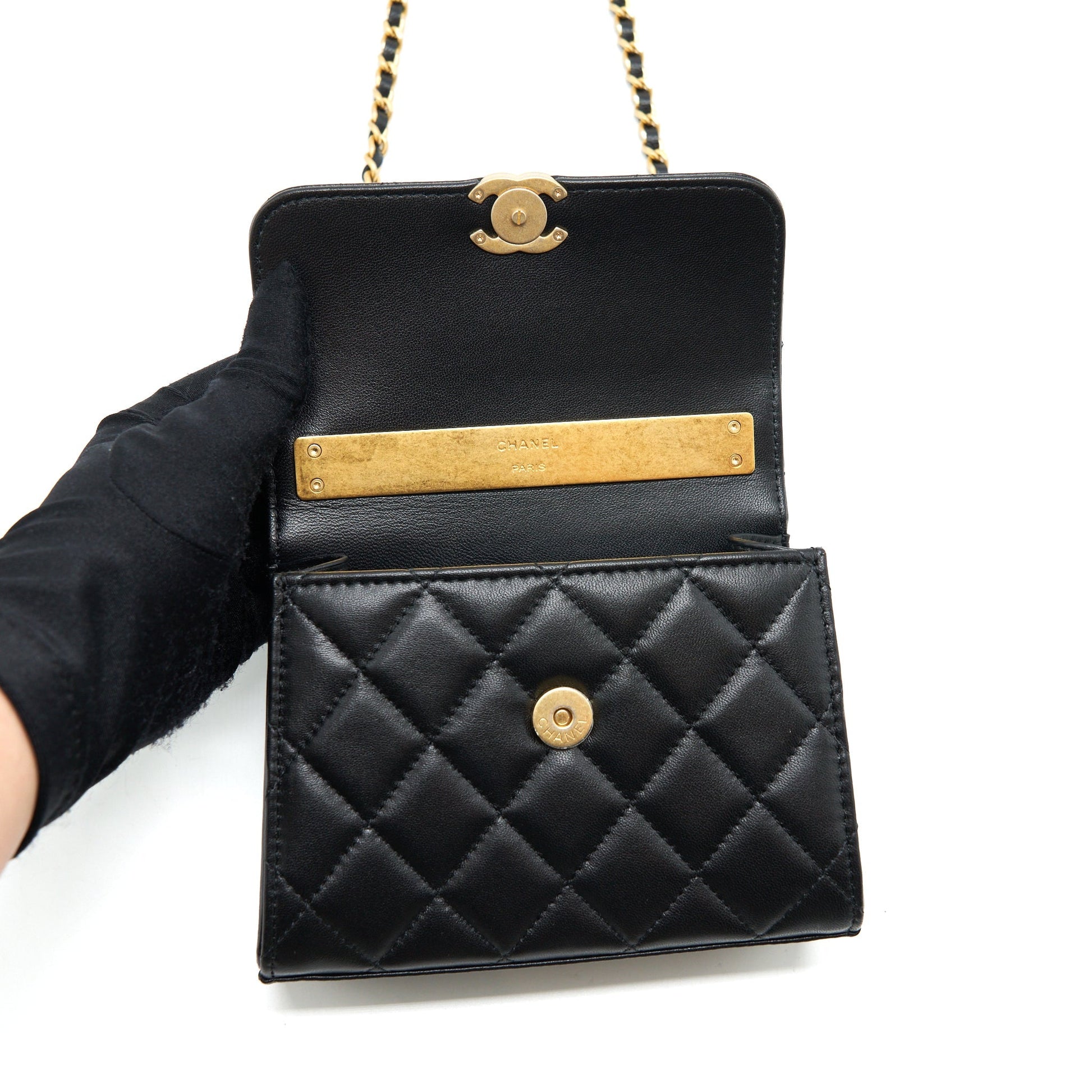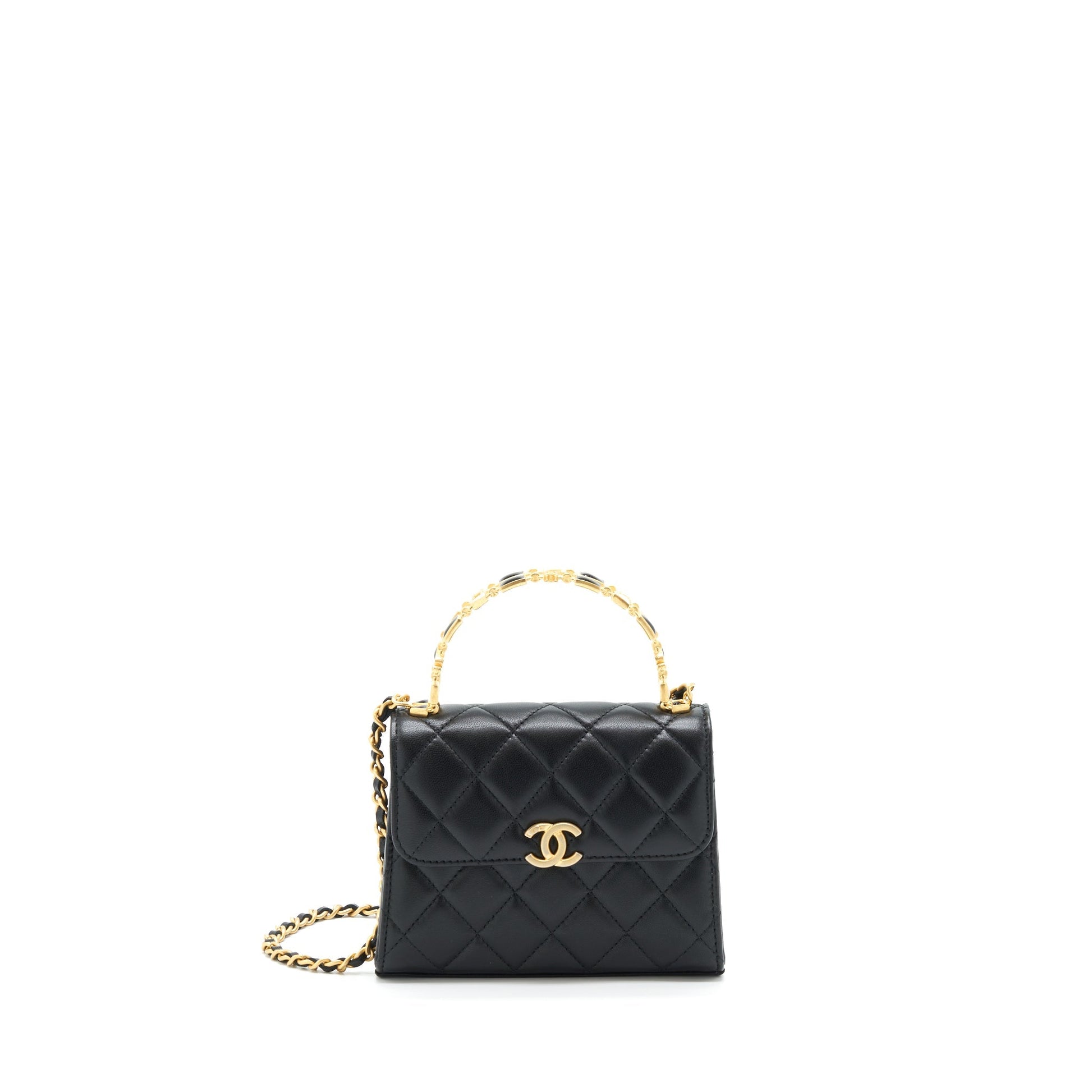 Chanel 22B Flap Bag With Enamel/CC Logo Top Handle Lambskin Black Brushed GHW
