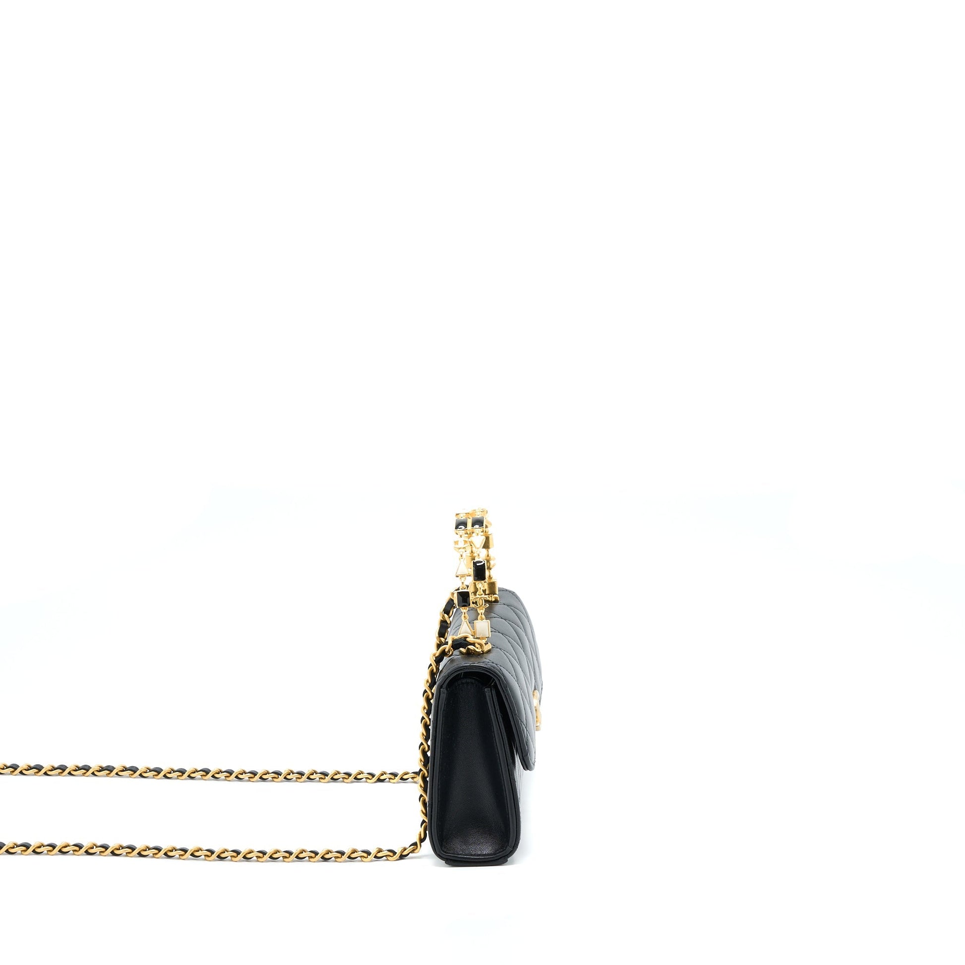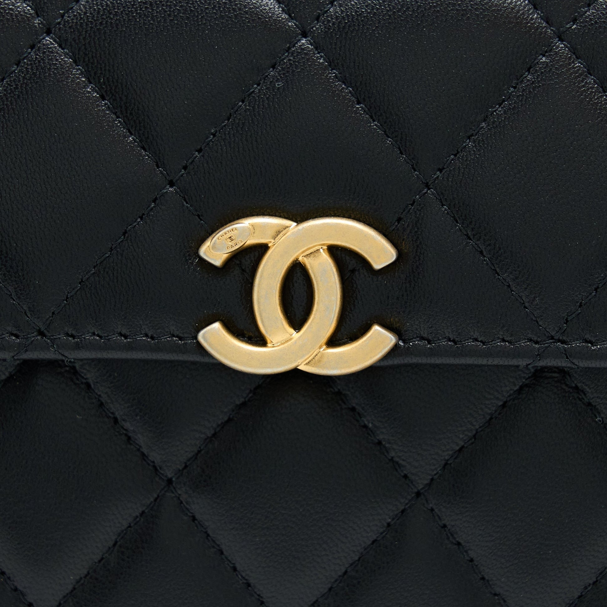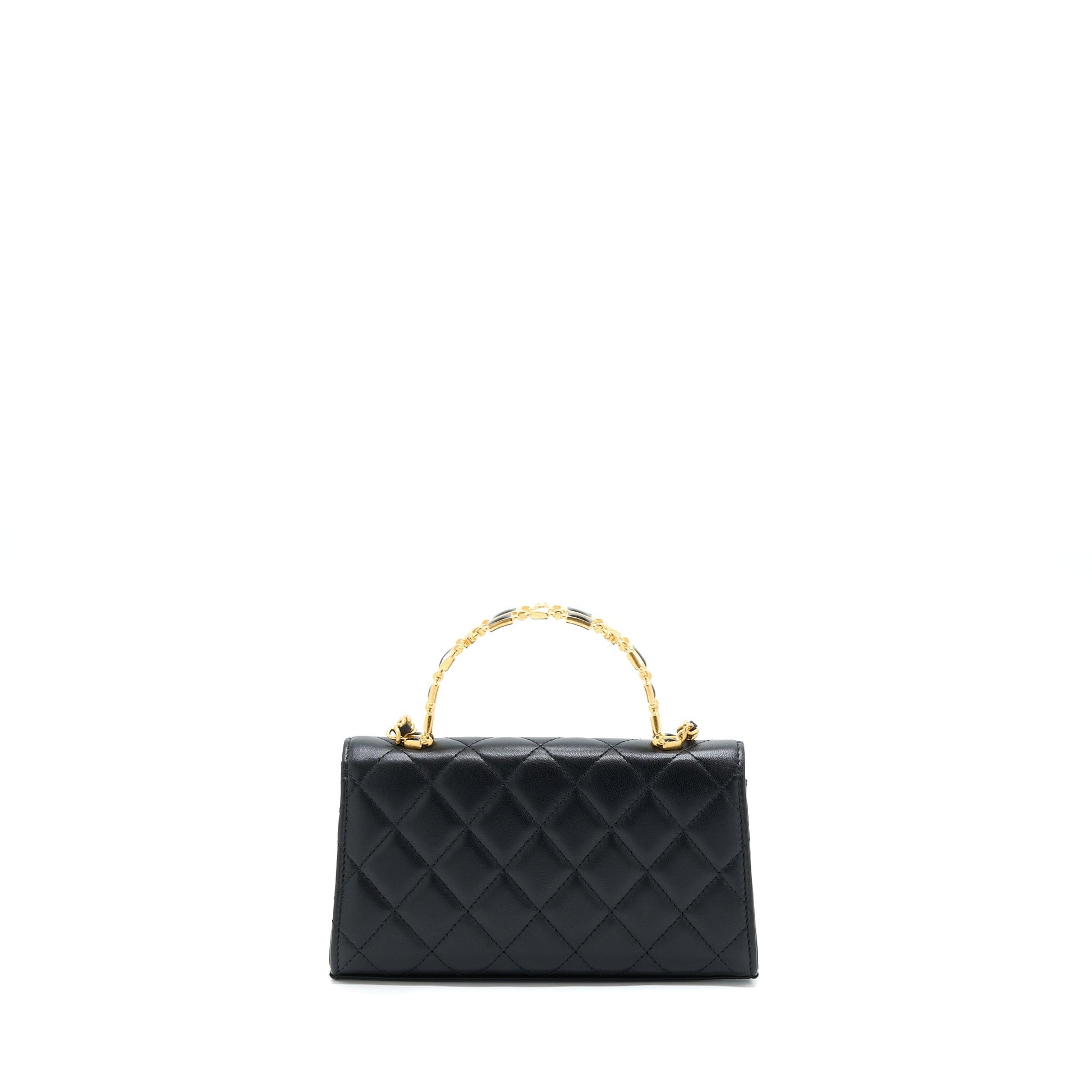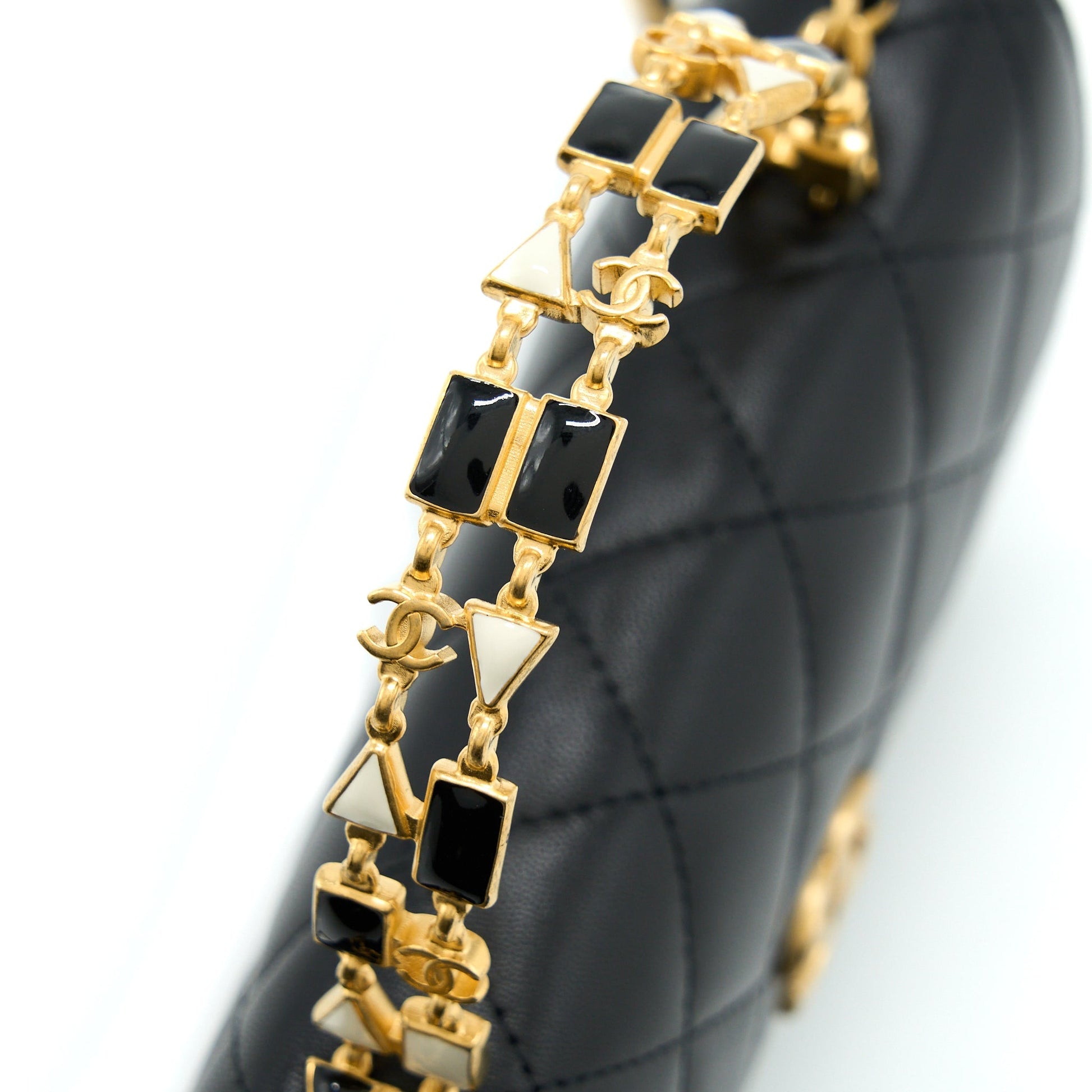 Chanel 22B Flap Bag With Enamel/CC Logo Top Handle Lambskin Black Brushed GHW