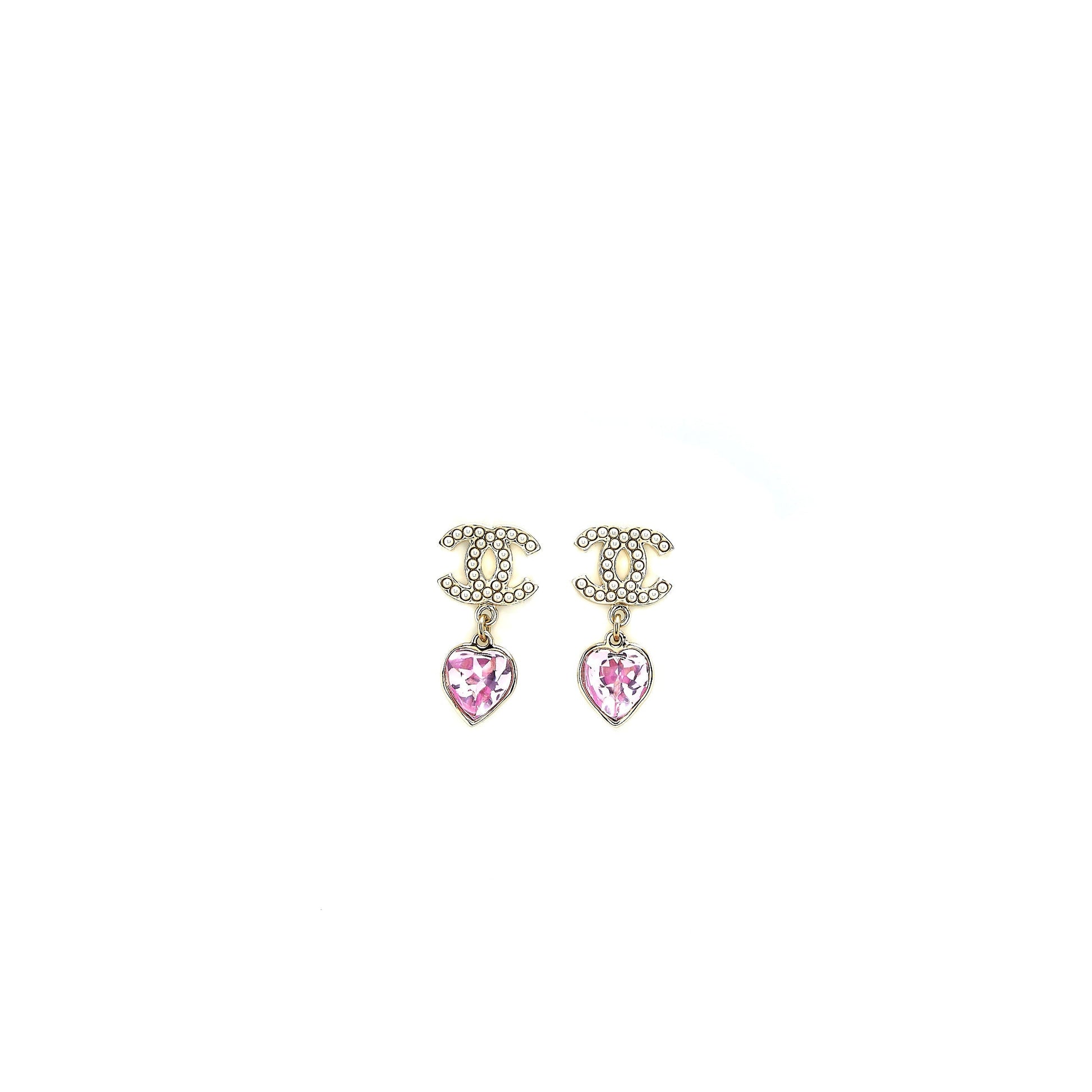 Chanel 22B Heart Drop/Pearl Earrings Light Gold Tone