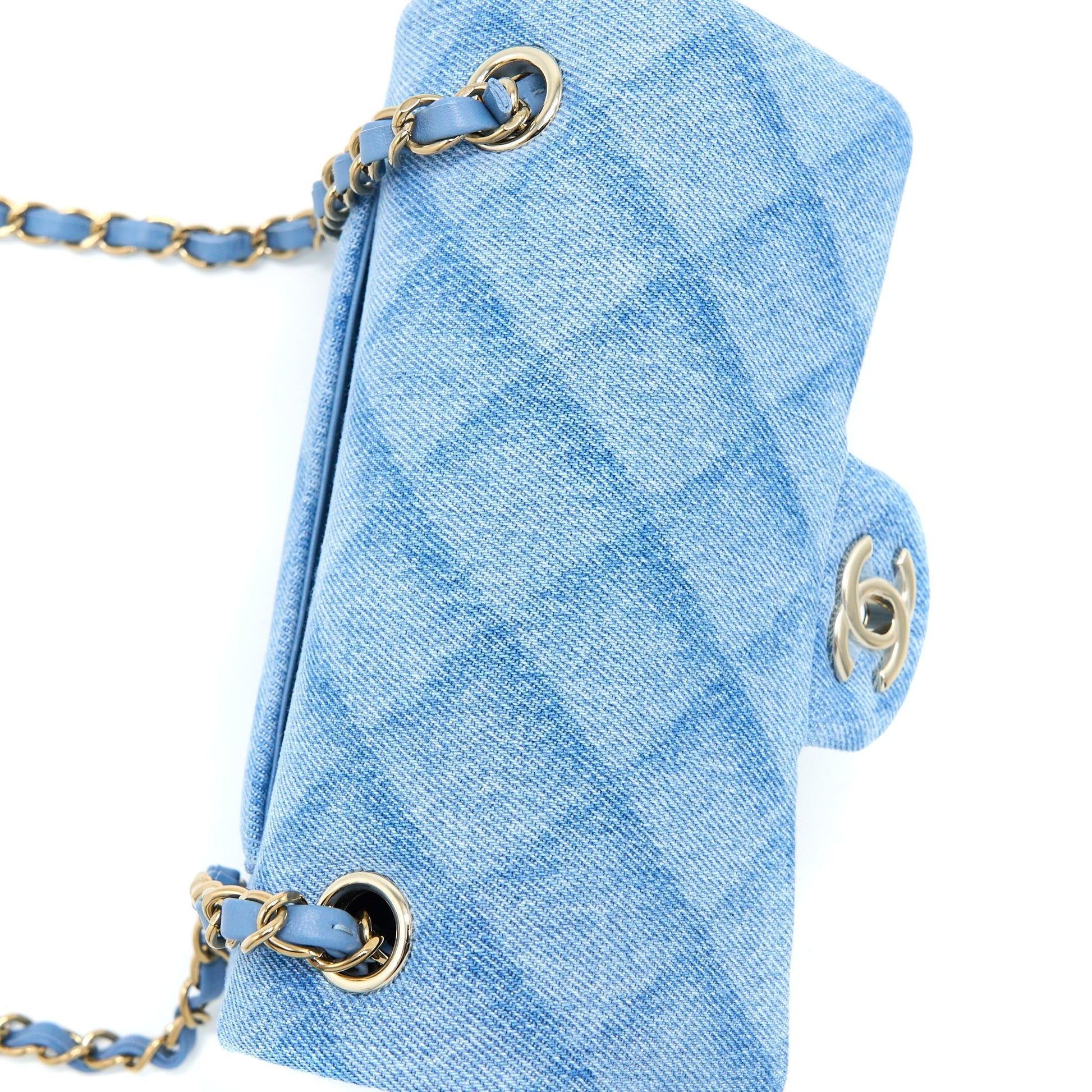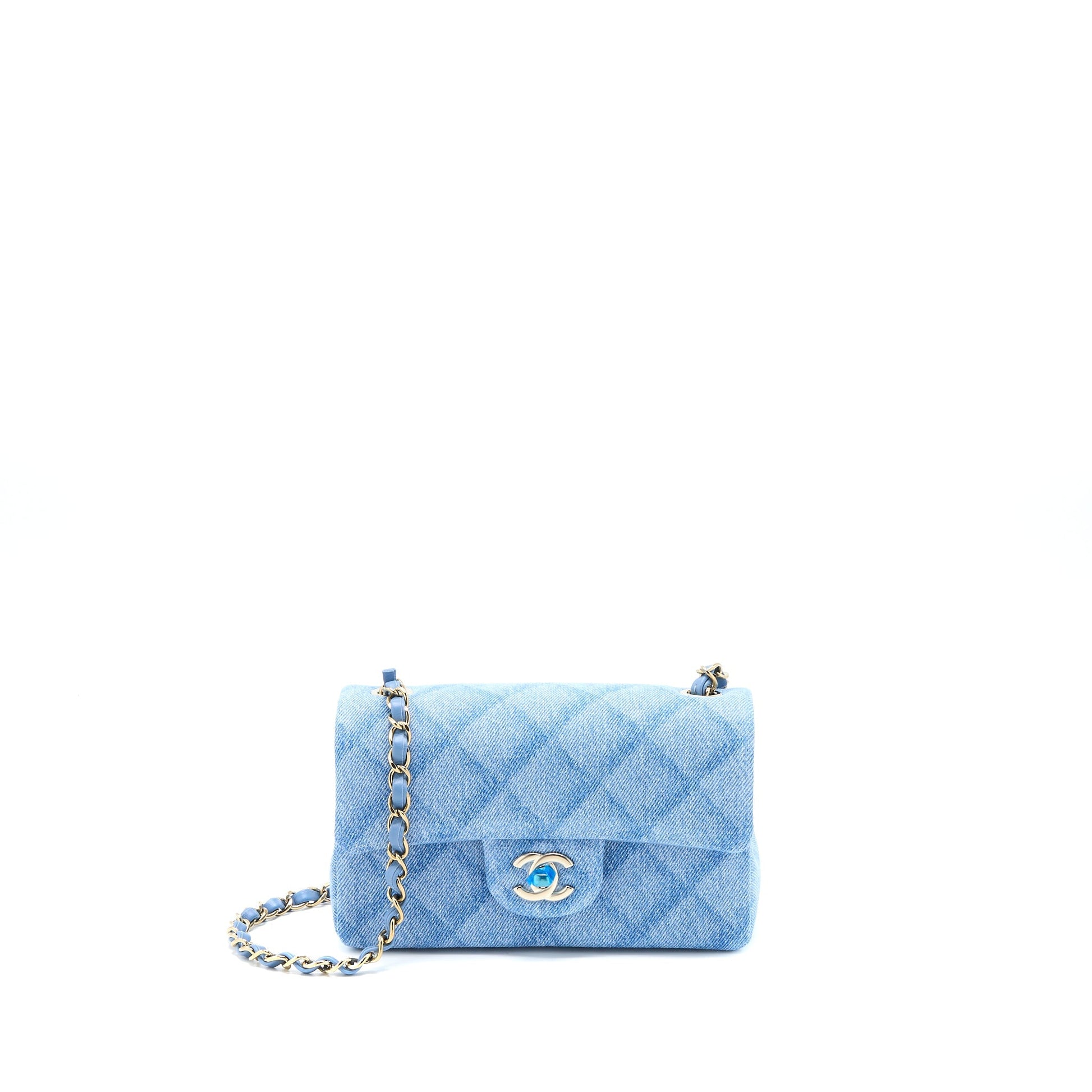Chanel 22B Mini Rectangular Denim Light Blue LGHW (Microchip)
