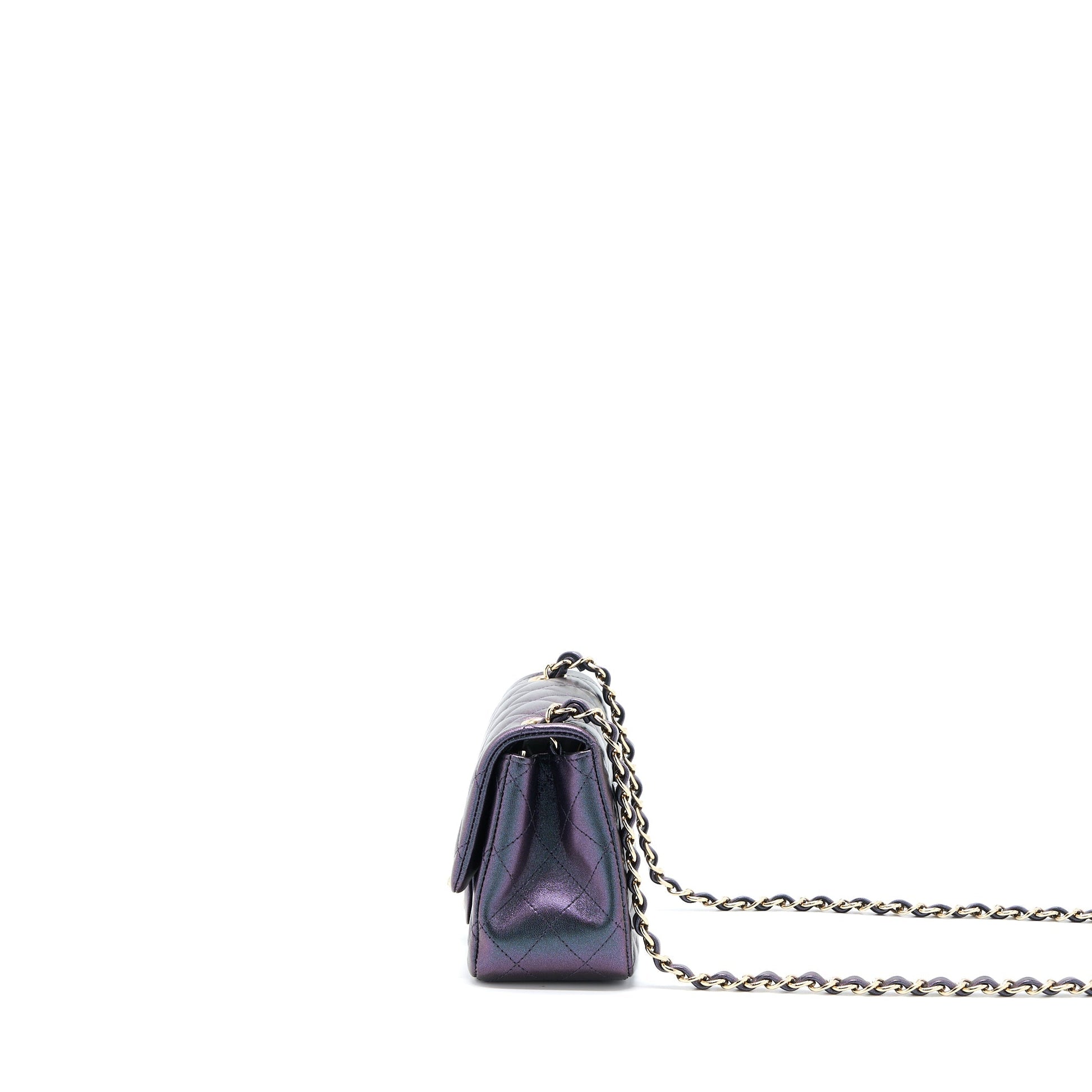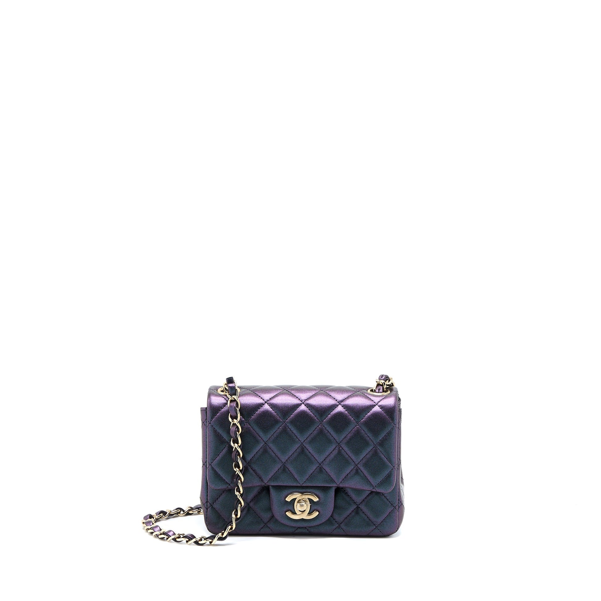 Chanel 22B Mini Square Pearly Lambskin Black LGHW (Microchip)