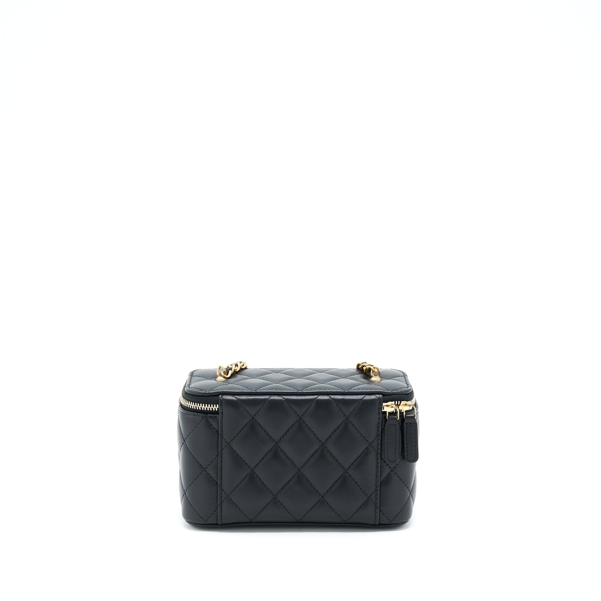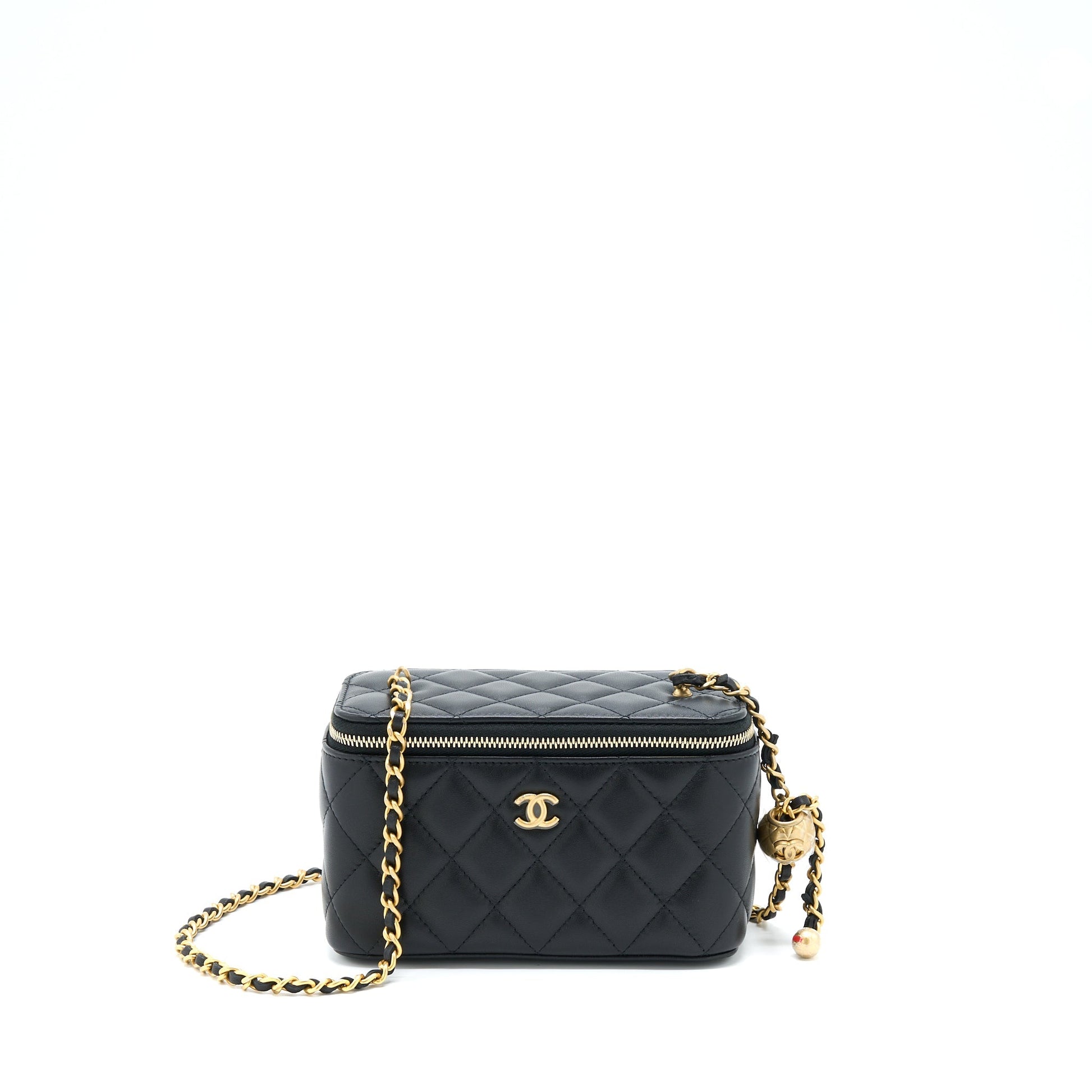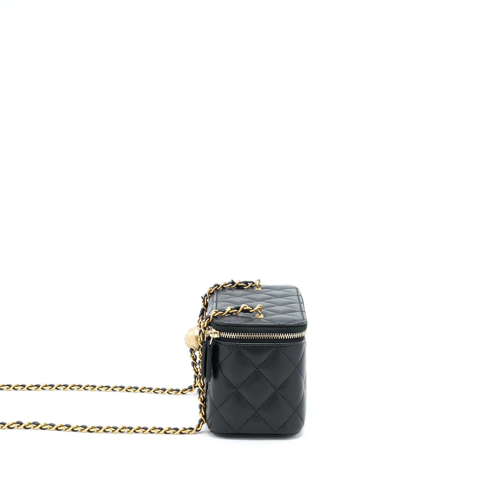 Chanel 22B Pearl Crush Long Vanity With Chain Lambskin Black GHW