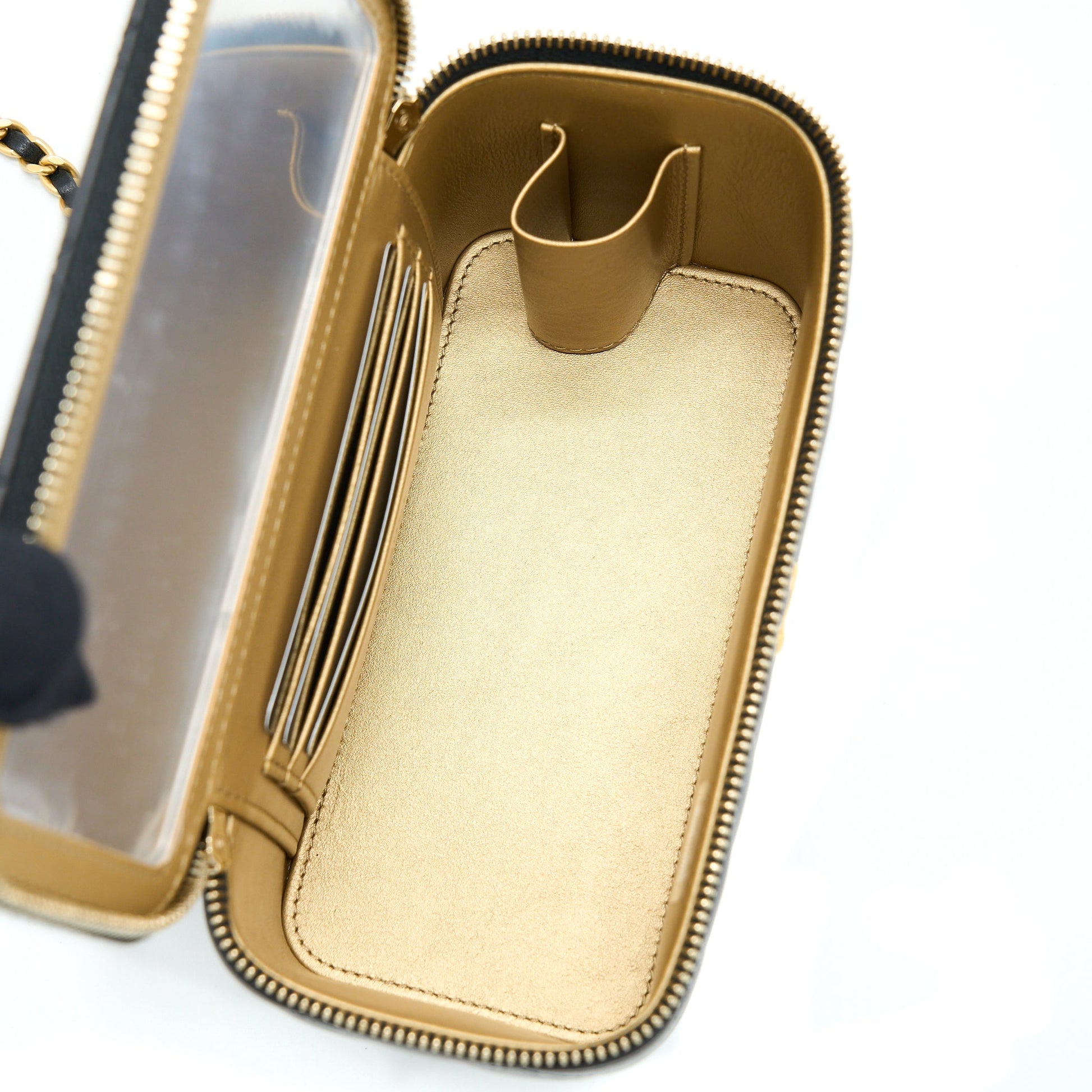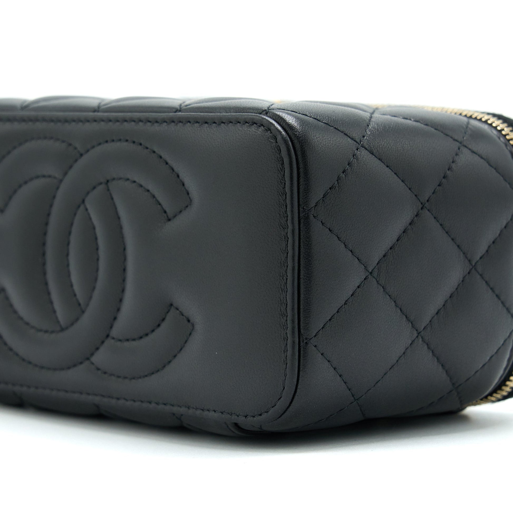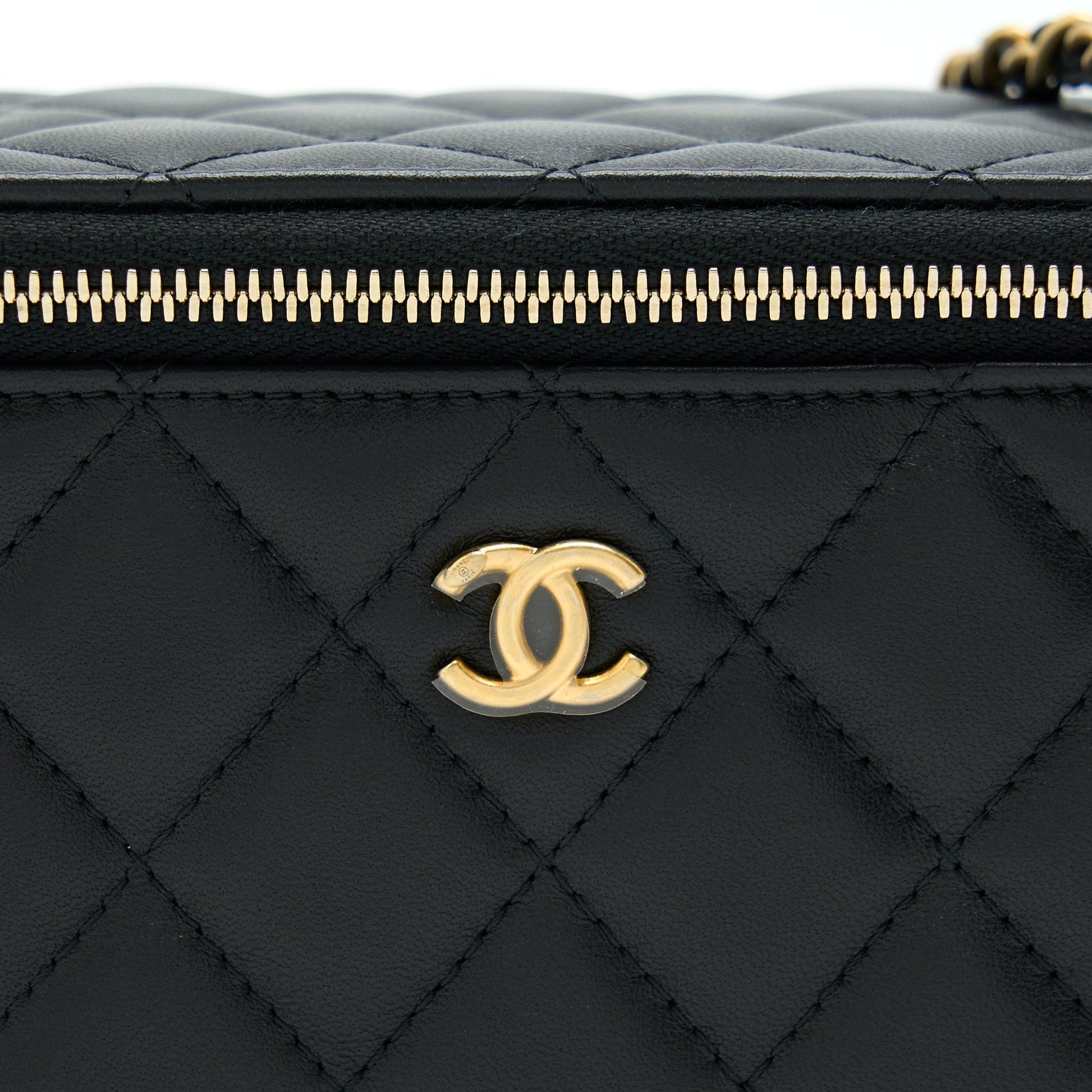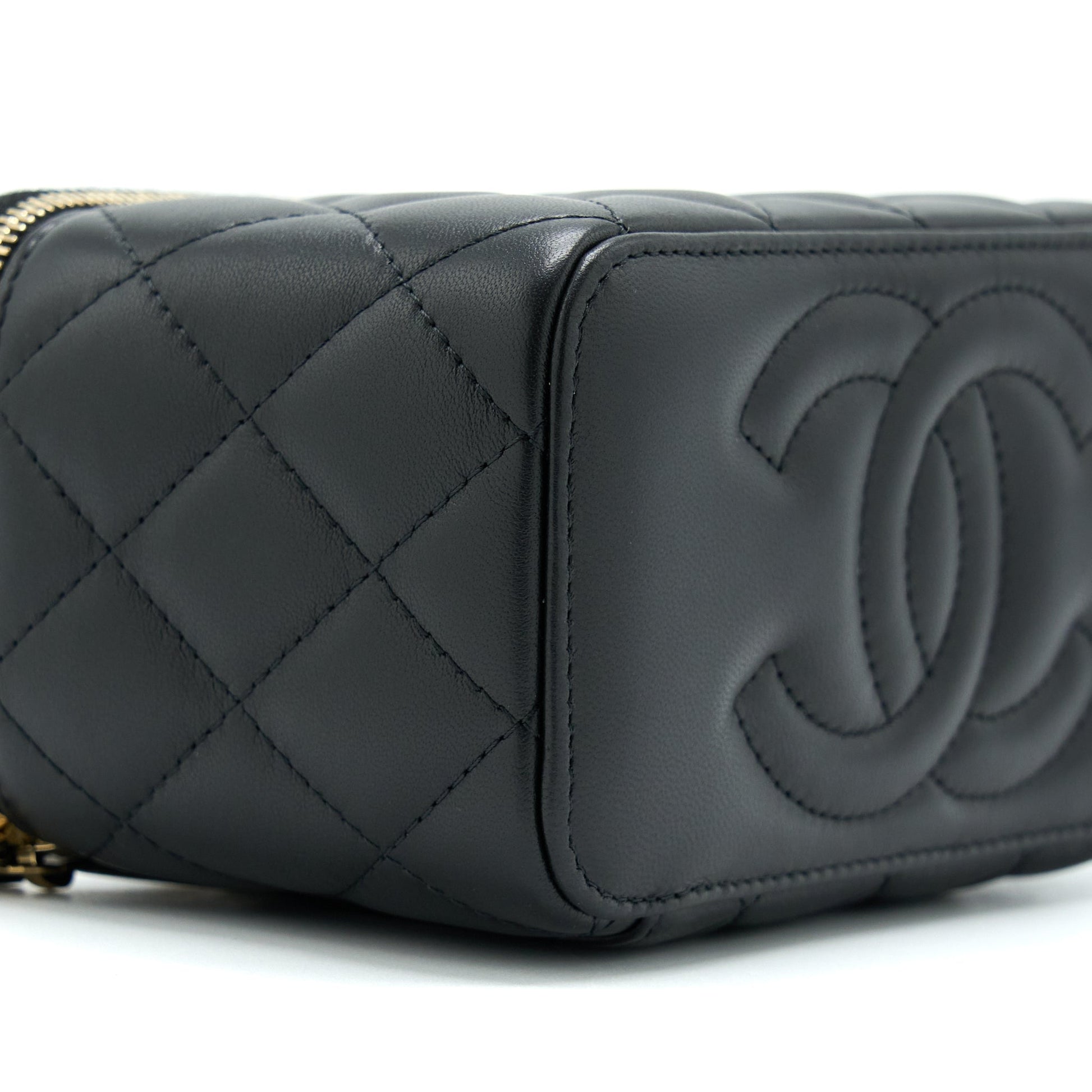 Chanel 22B Pearl Crush Long Vanity With Chain Lambskin Black GHW